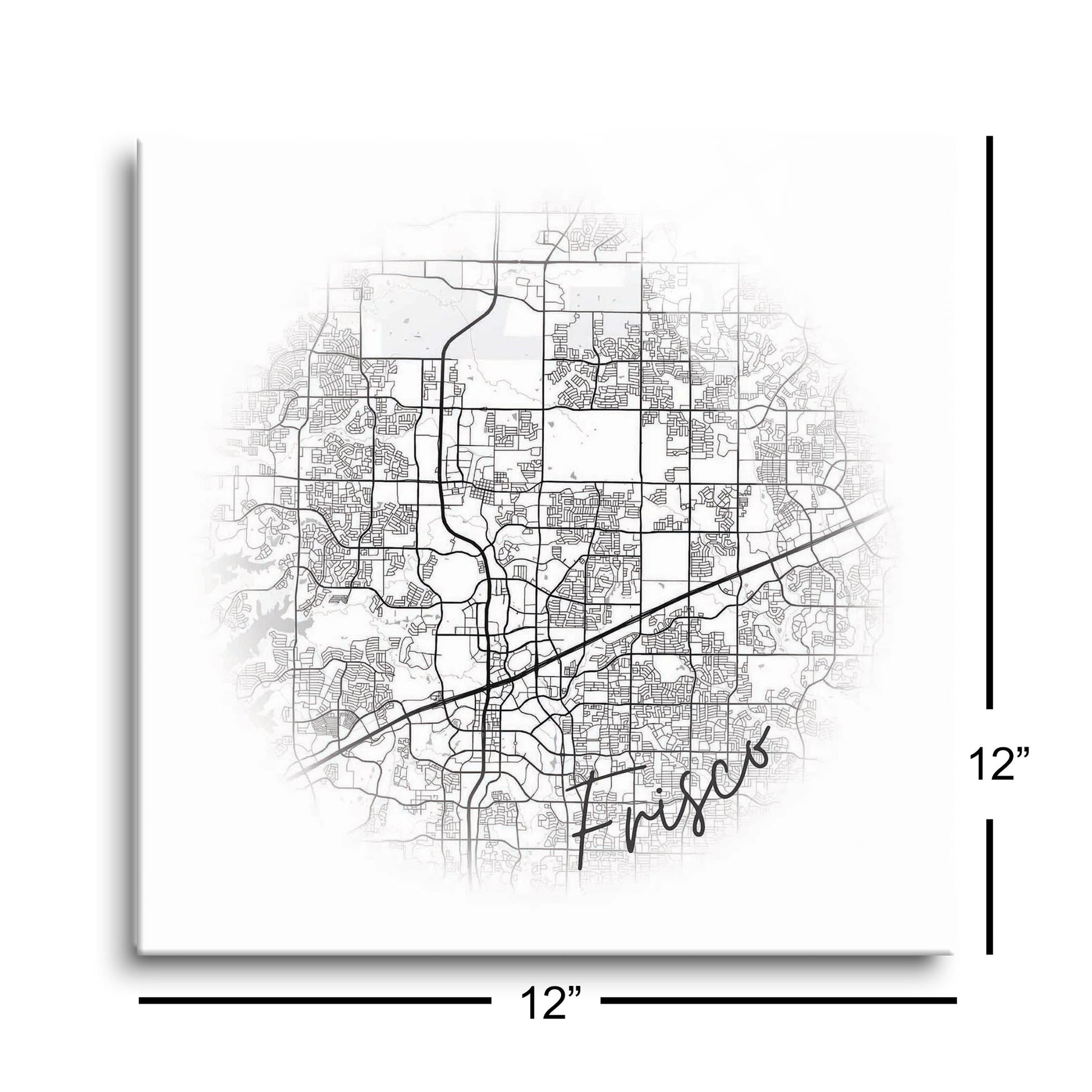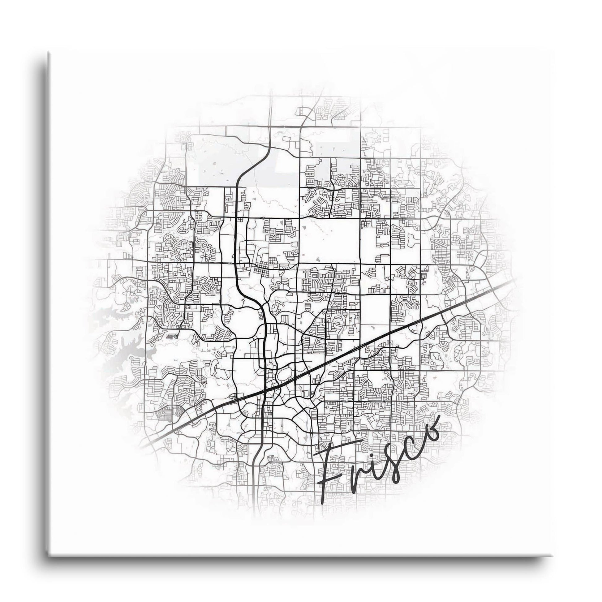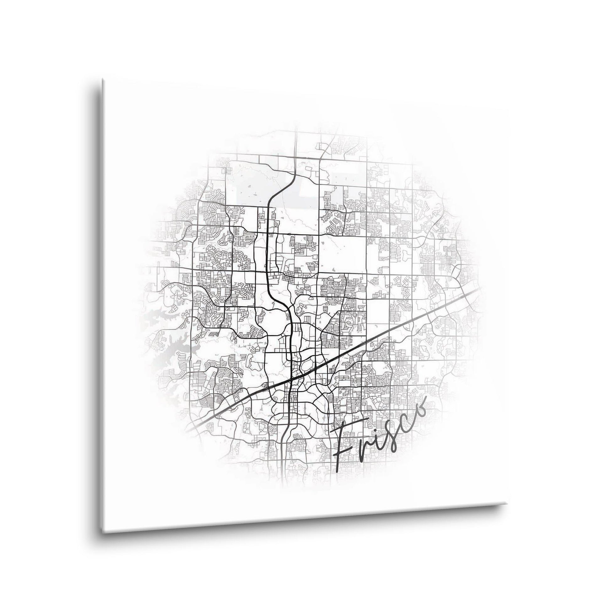 Minimalistic B&W Texas Frisco Circle Map | Hi-Def Glass Art | Eaches | Min 1