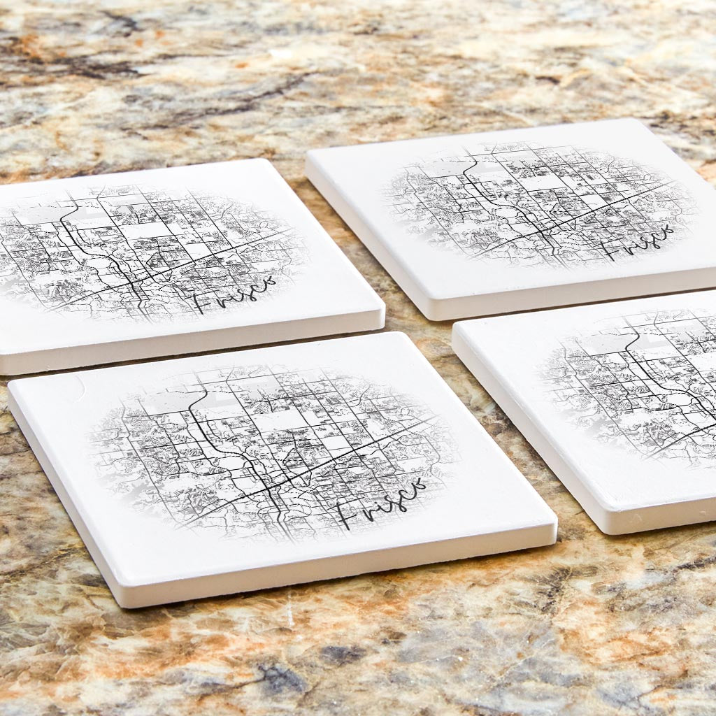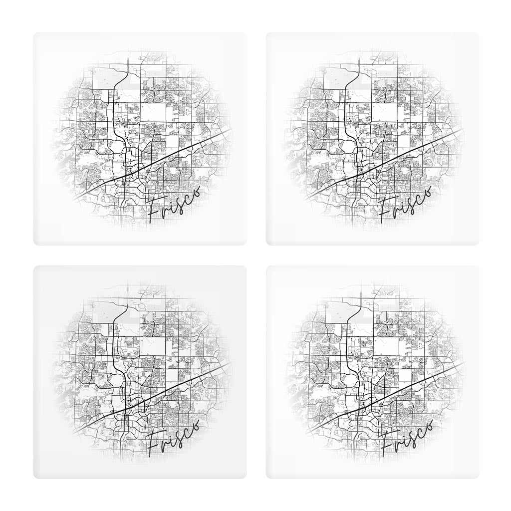 Minimalistic B&W Texas Frisco Circle Map | Absorbent Coasters | Set of 4 | Min 2