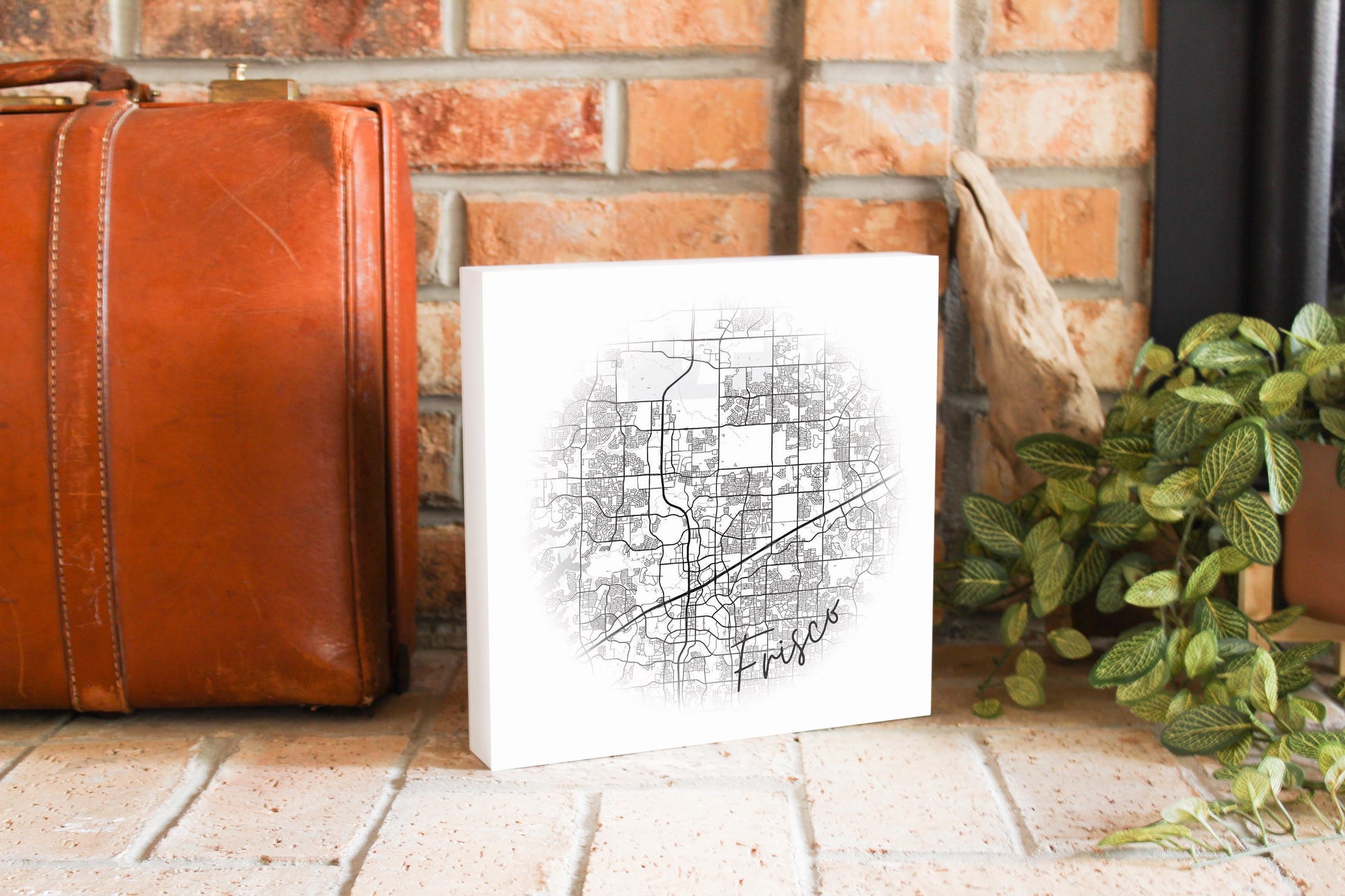 Minimalistic B&W Texas Frisco Circle Map | Wood Block | Eaches | Min 2