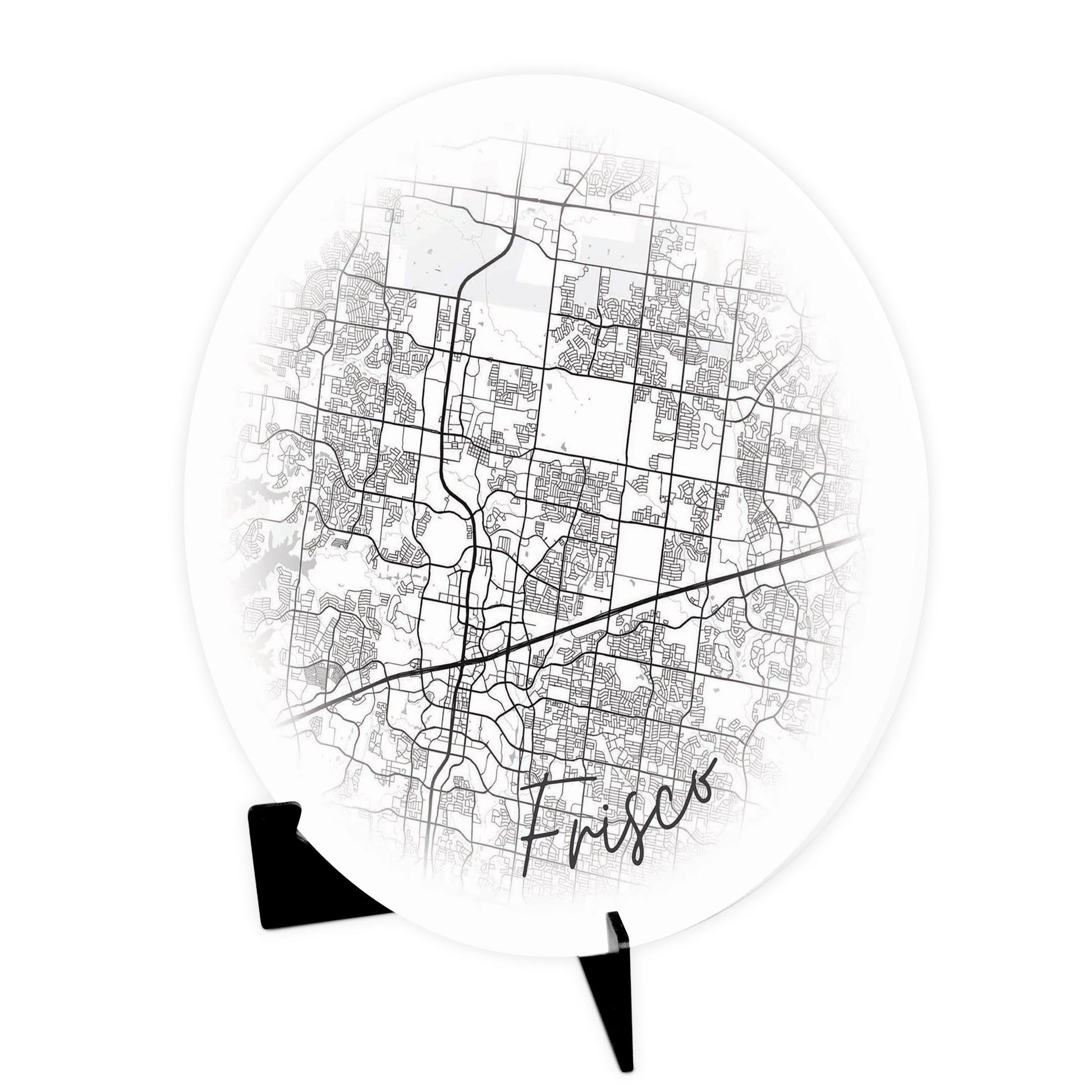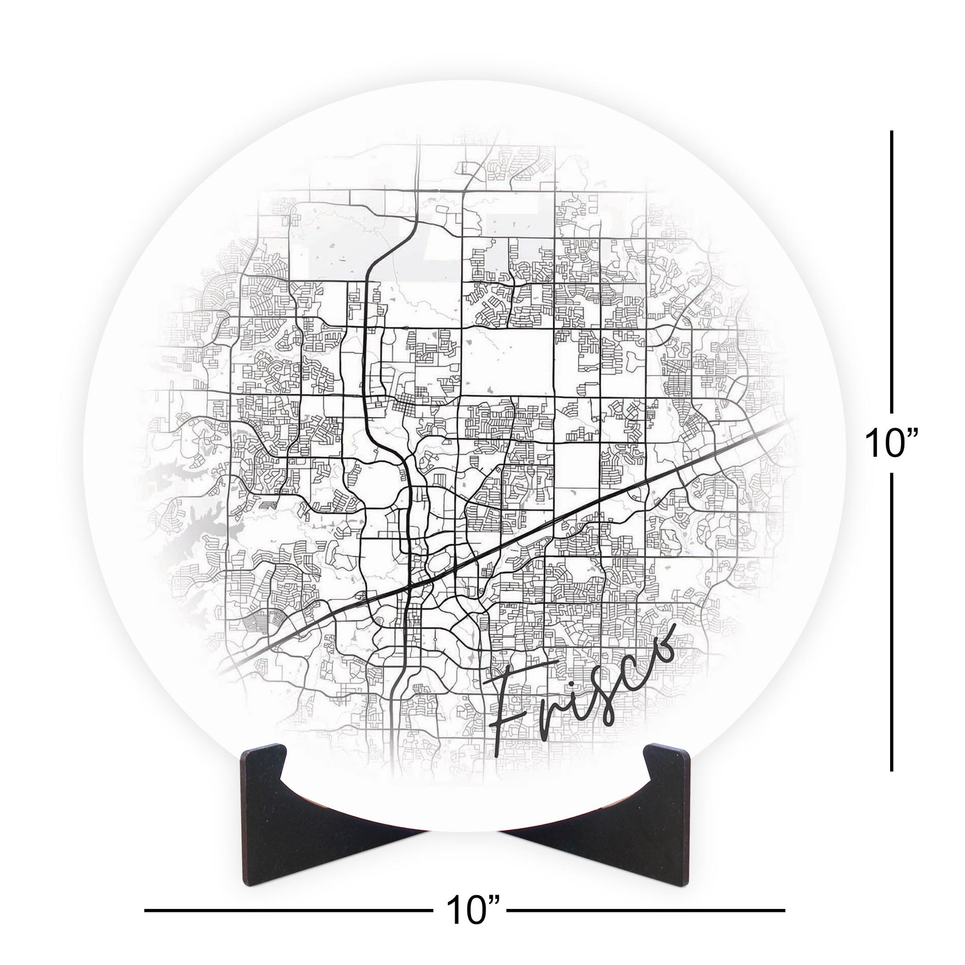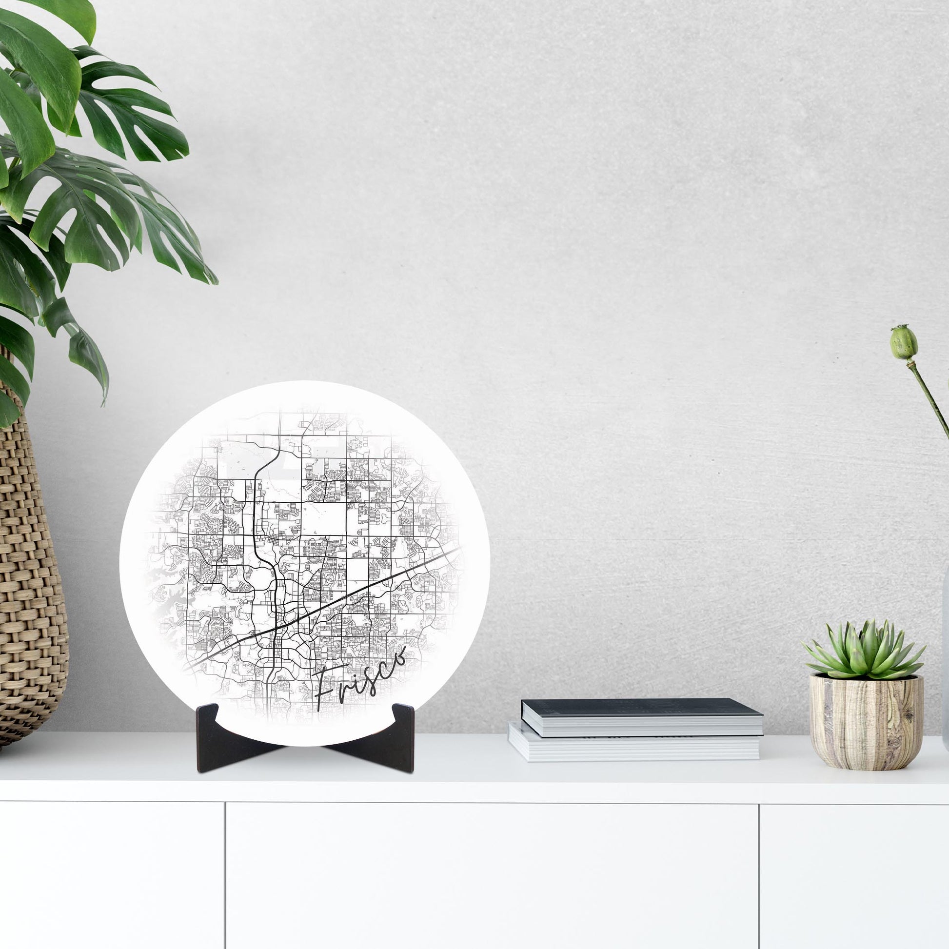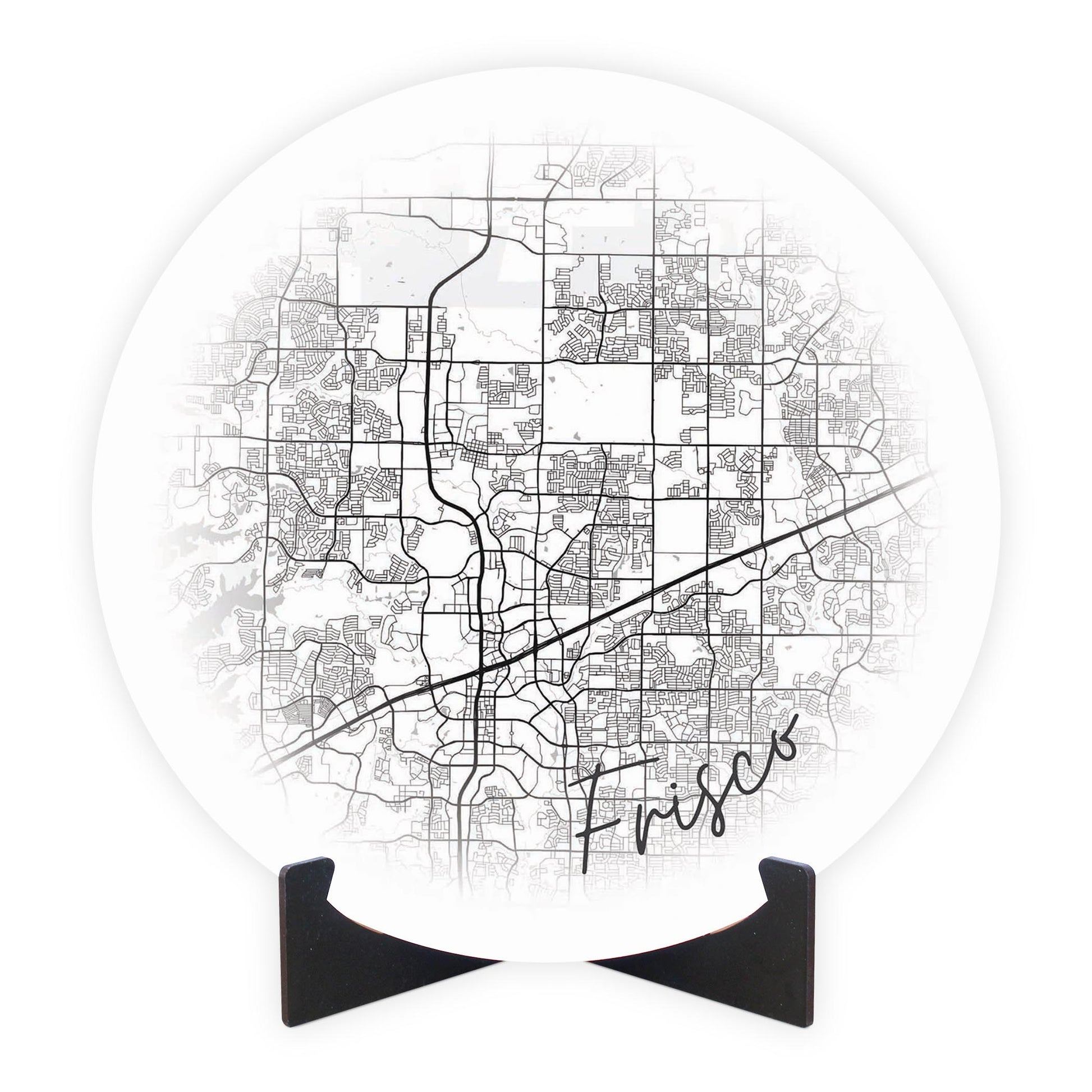 Minimalistic B&W Texas Frisco Circle Map | Wood Sign | Eaches | Min 1