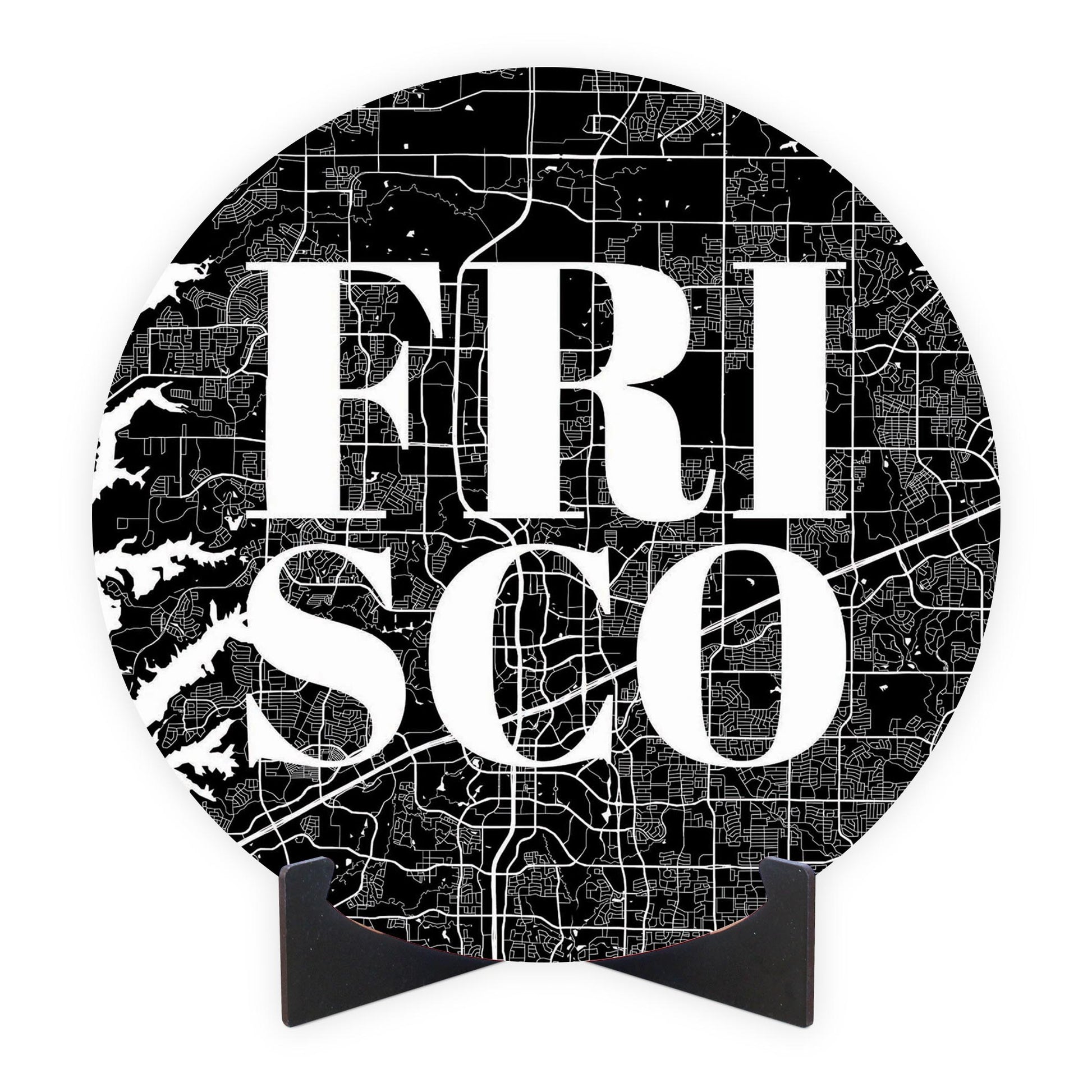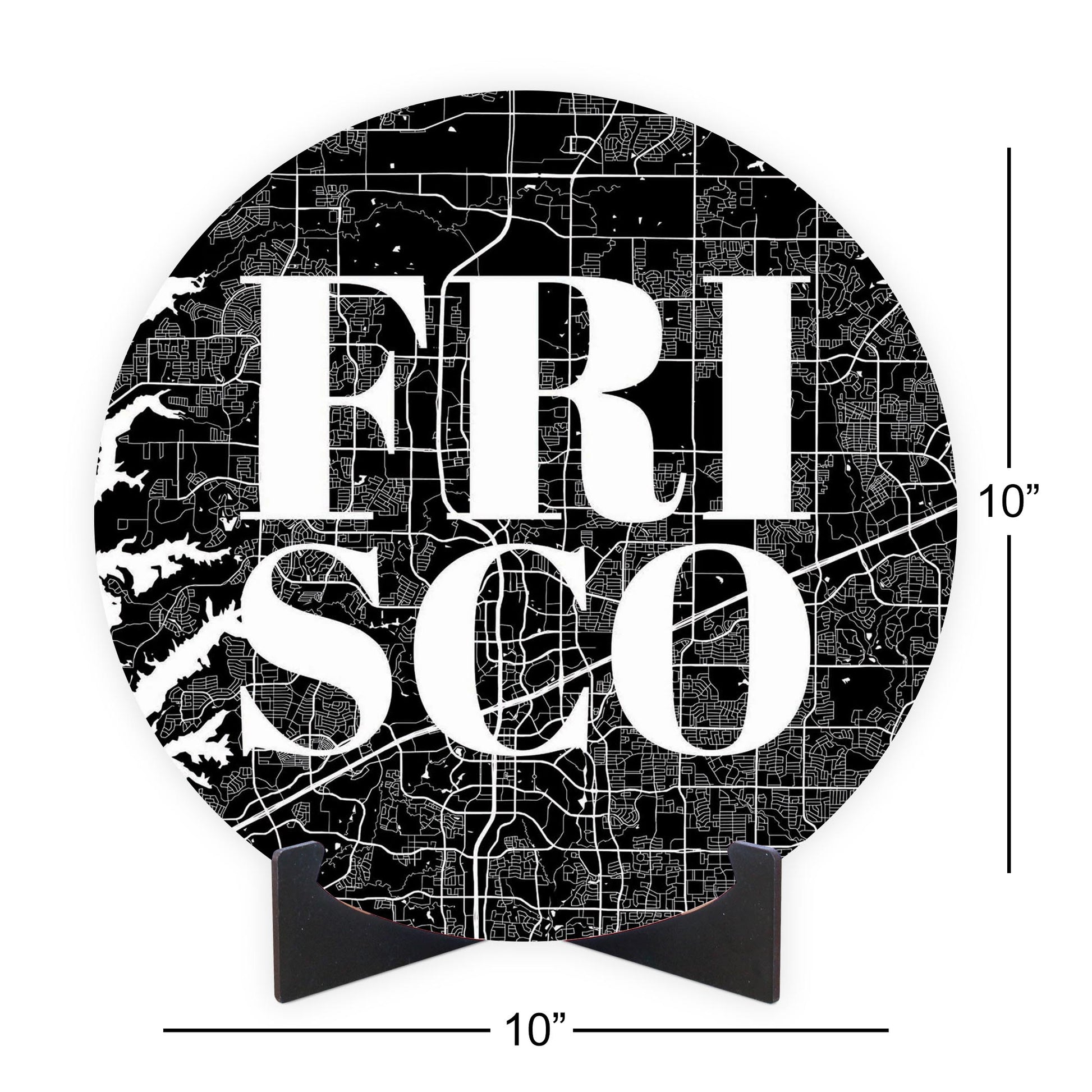 Minimalistic B&W Texas Frisco Map | Wood Sign | Eaches | Min 1
