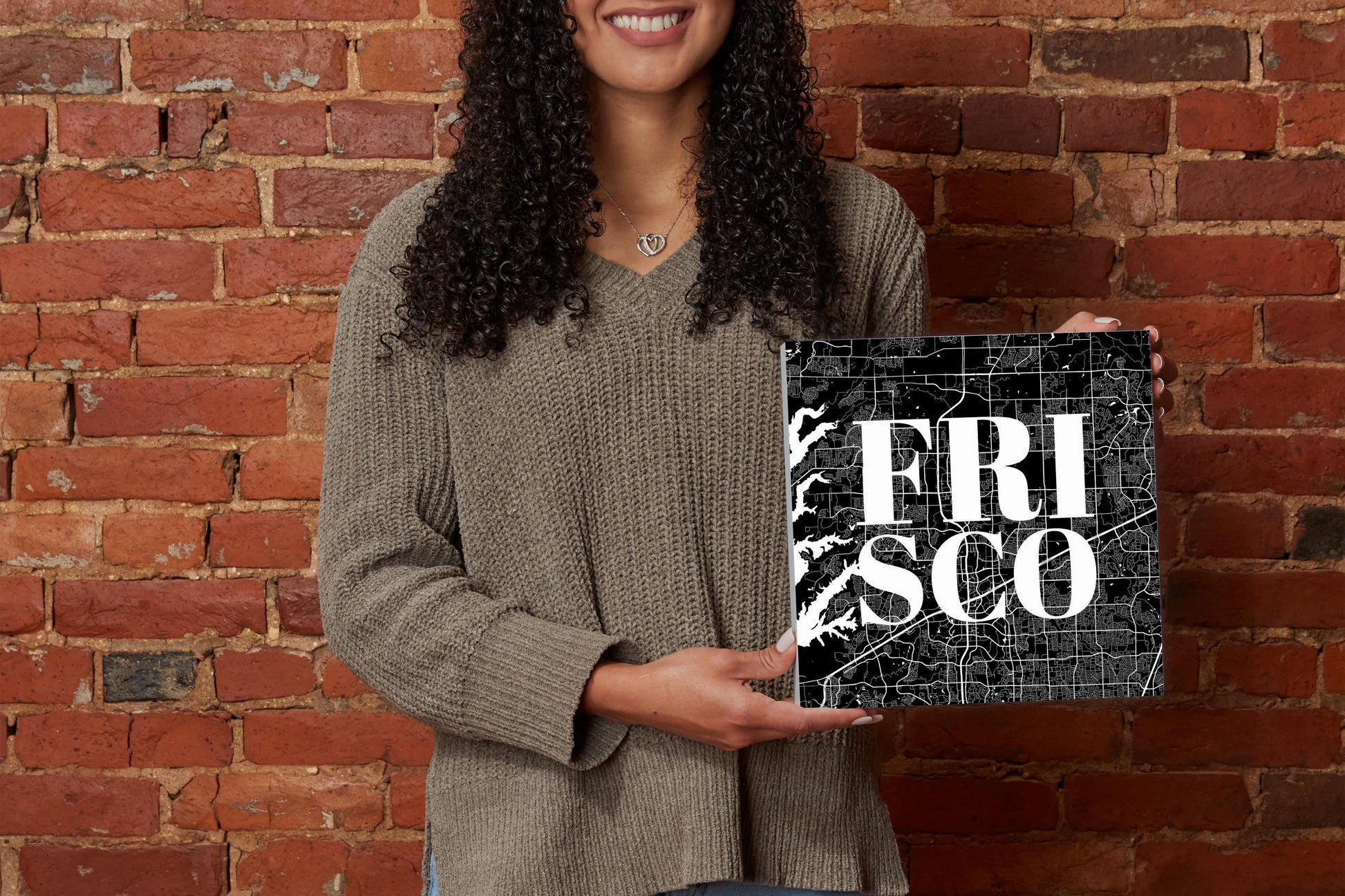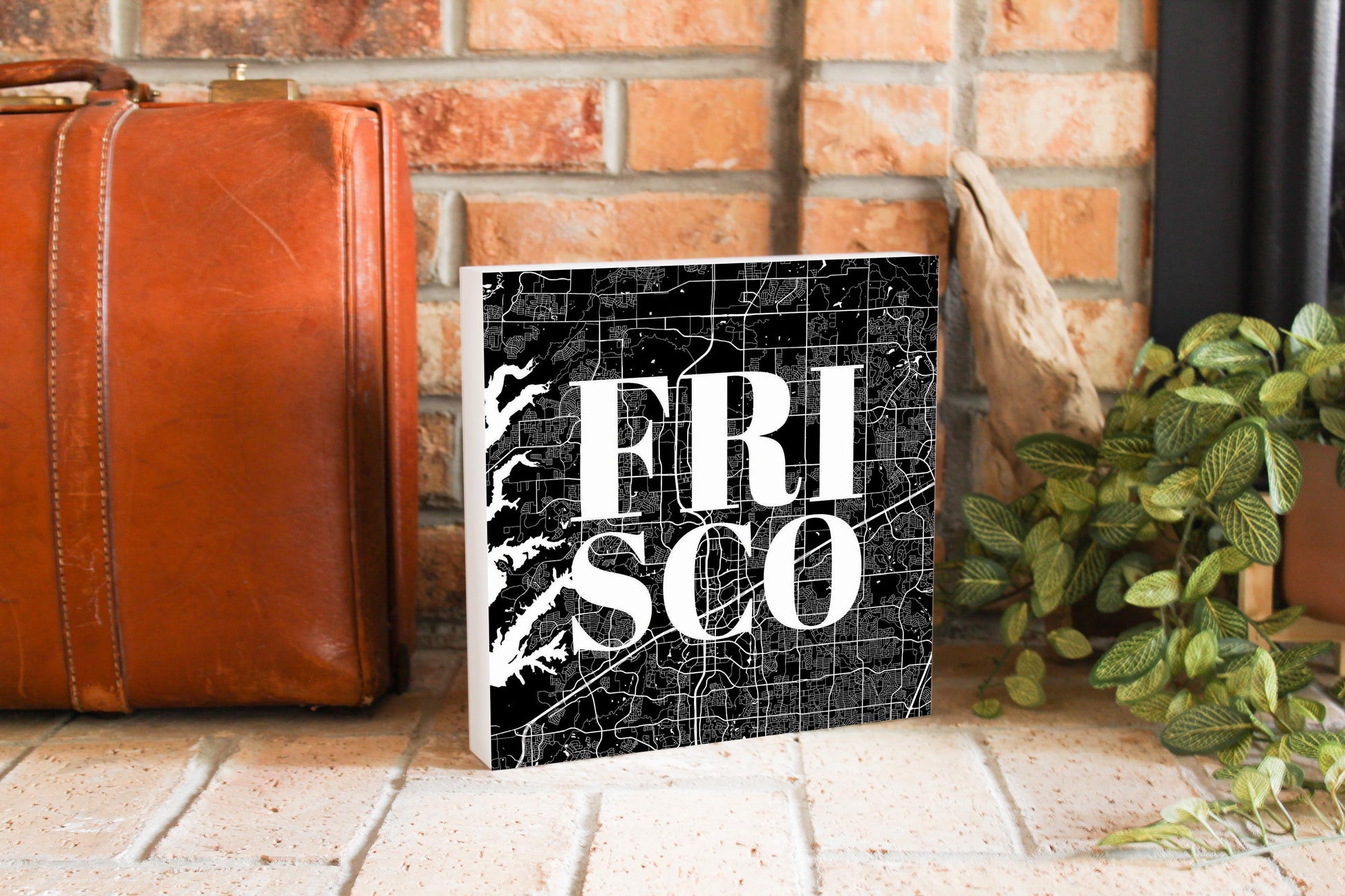 Minimalistic B&W Texas Frisco Map | Wood Block | Eaches | Min 2