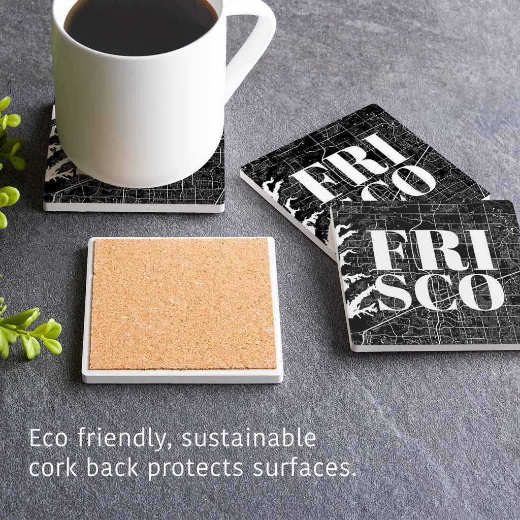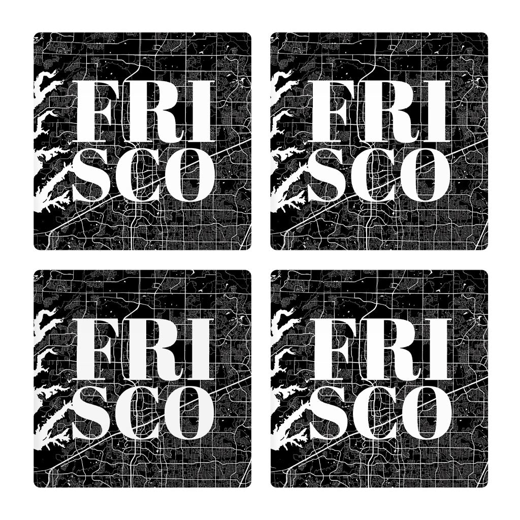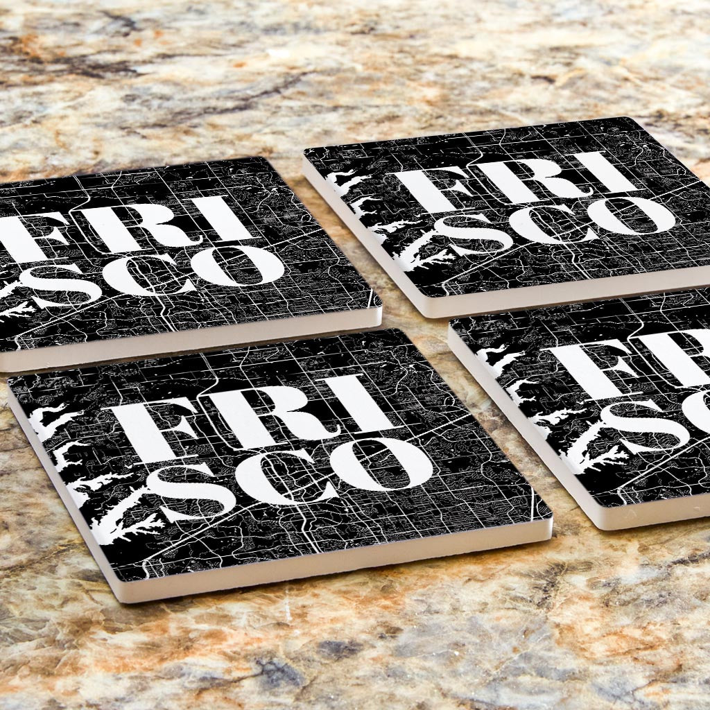 Minimalistic B&W Texas Frisco Map | Absorbent Coasters | Set of 4 | Min 2