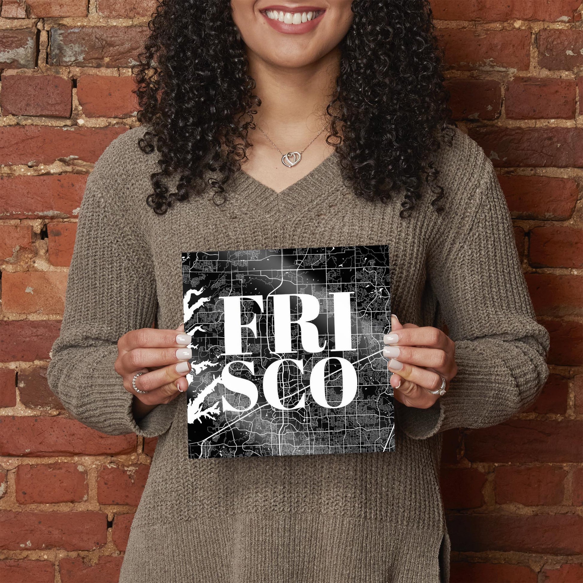Minimalistic B&W Texas Frisco Map | Hi-Def Glass Art | Eaches | Min 2