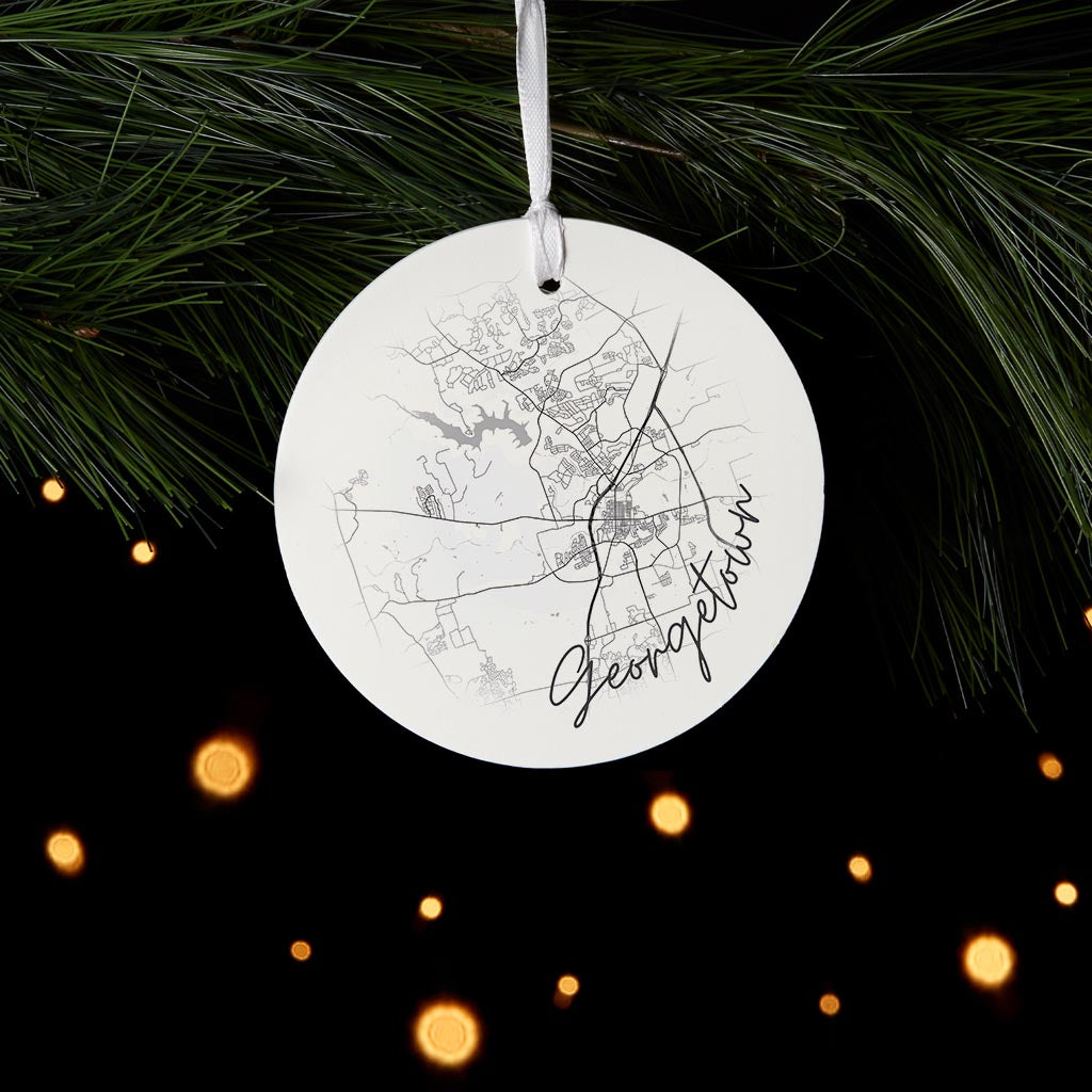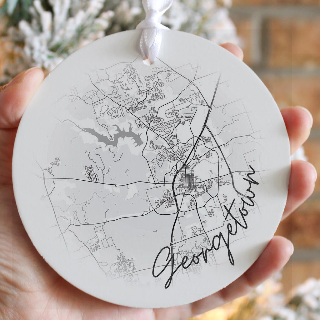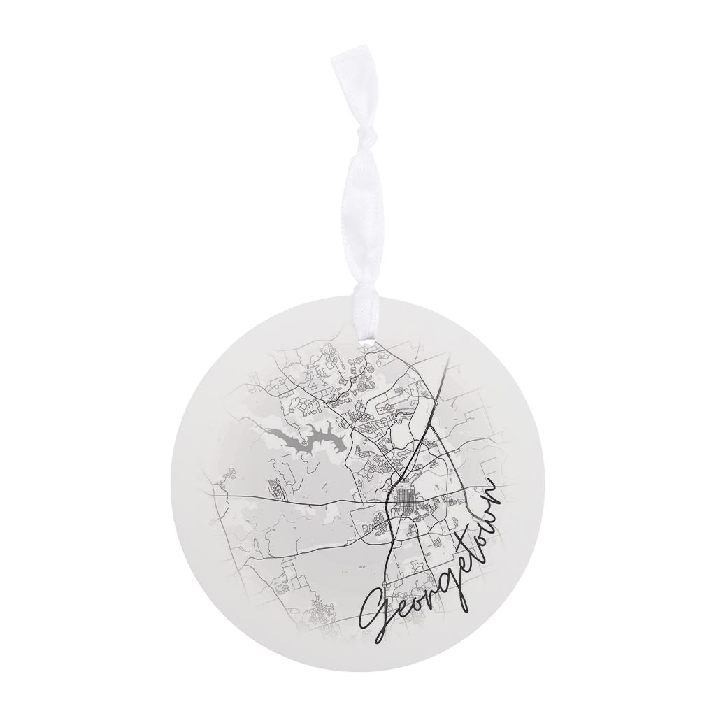 Minimalistic B&W Texas Georgetown Circle Map | Wood Ornament | Eaches | Min 6