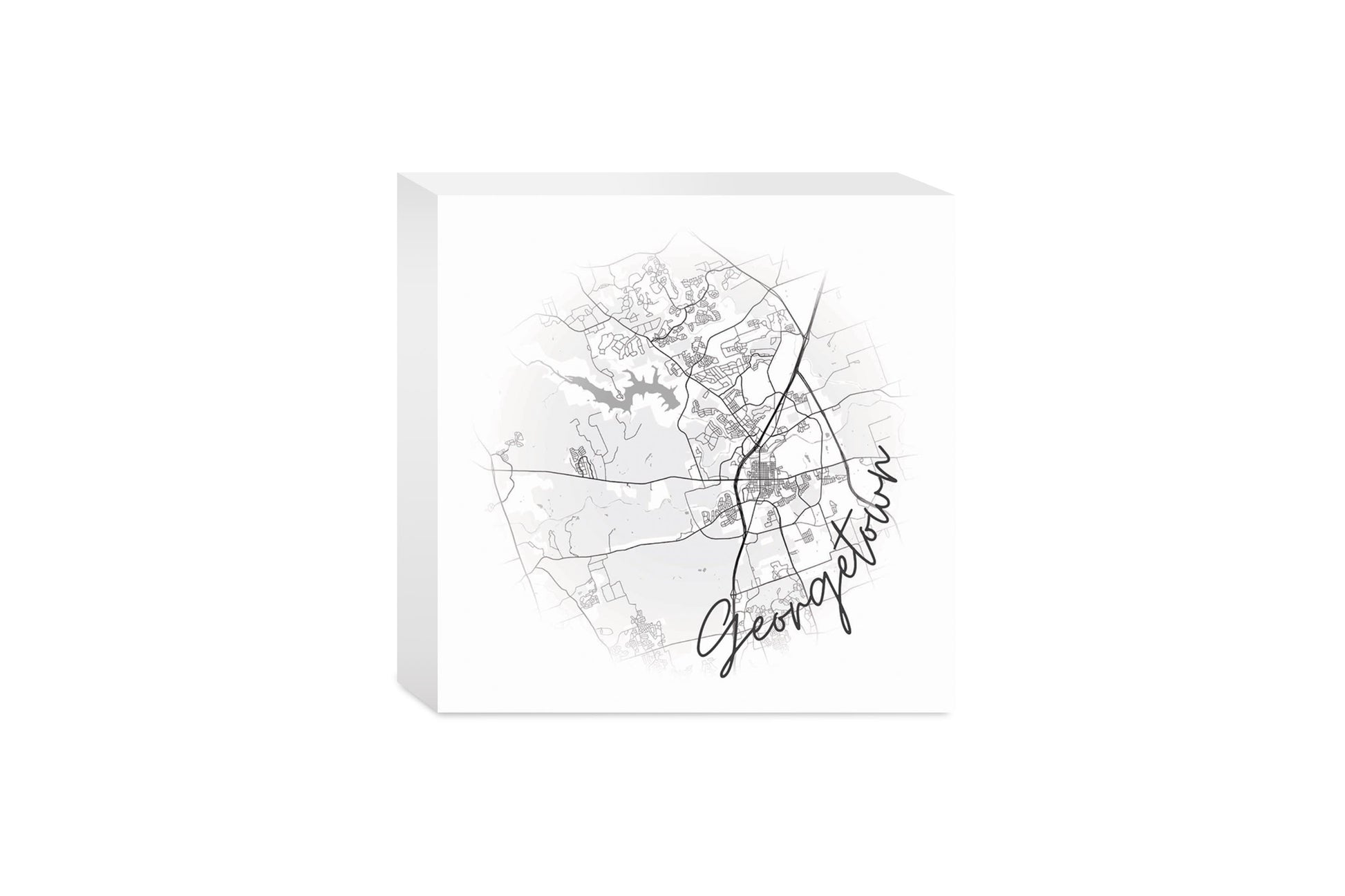 Minimalistic B&W Texas Georgetown Circle Map | Wood Block | Eaches | Min 4