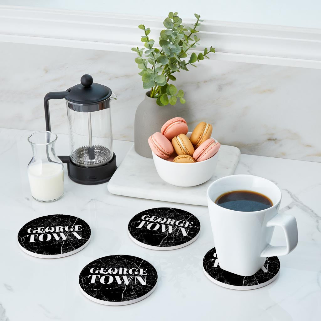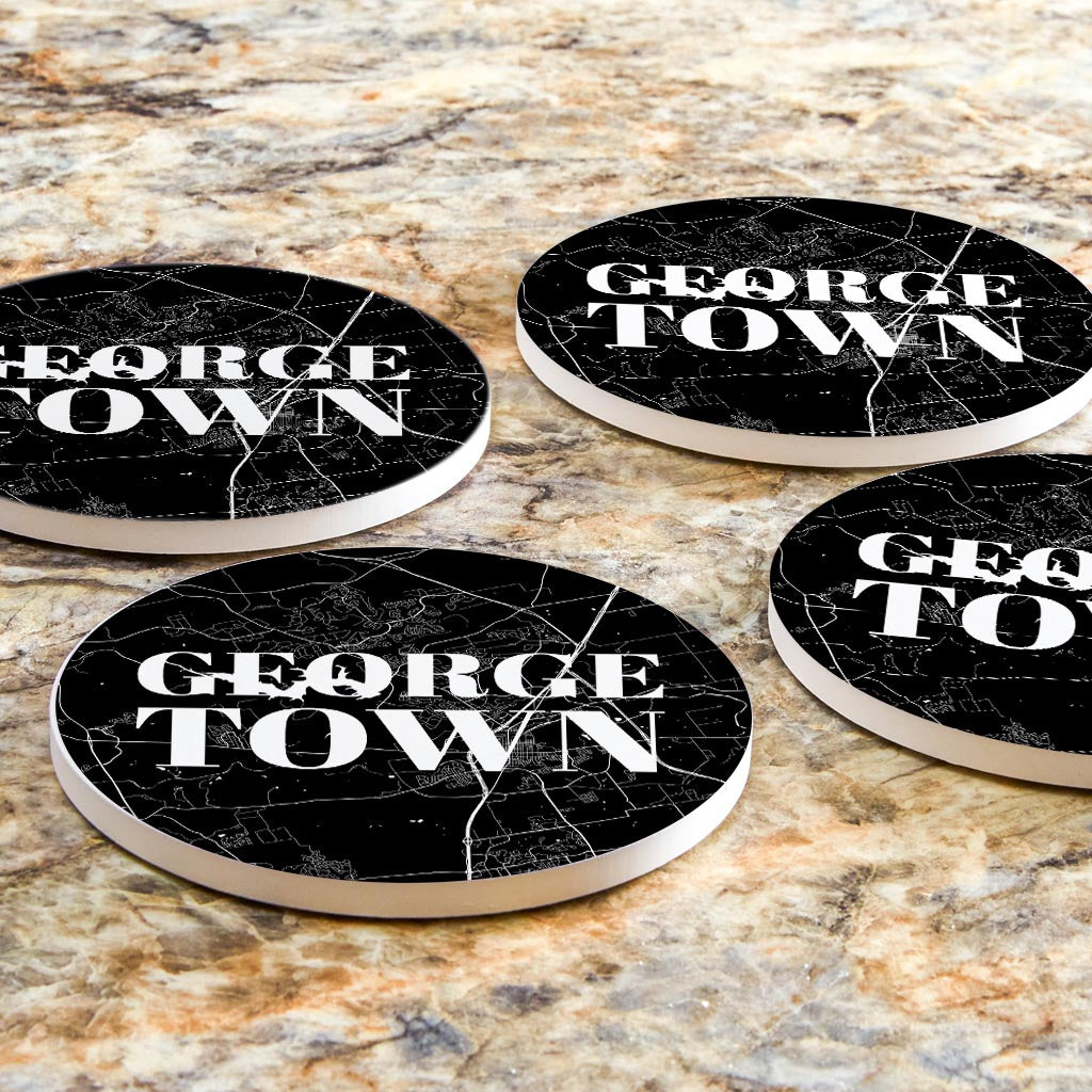 Minimalistic B&W Texas Georgetown Map | Absorbent Coasters | Set of 4 | Min 2