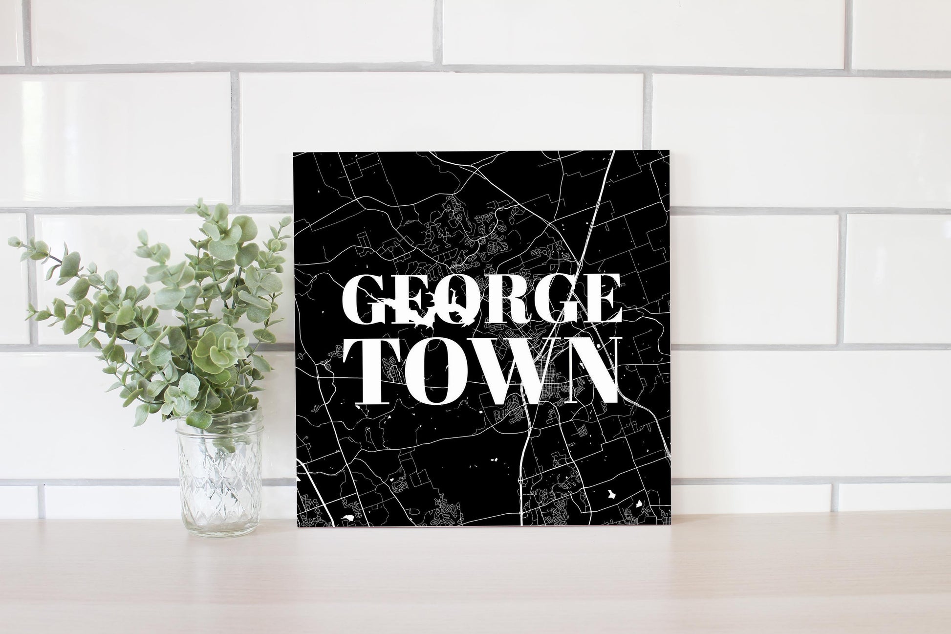 Minimalistic B&W Texas Georgetown Map | Wood Sign | Eaches | Min 2