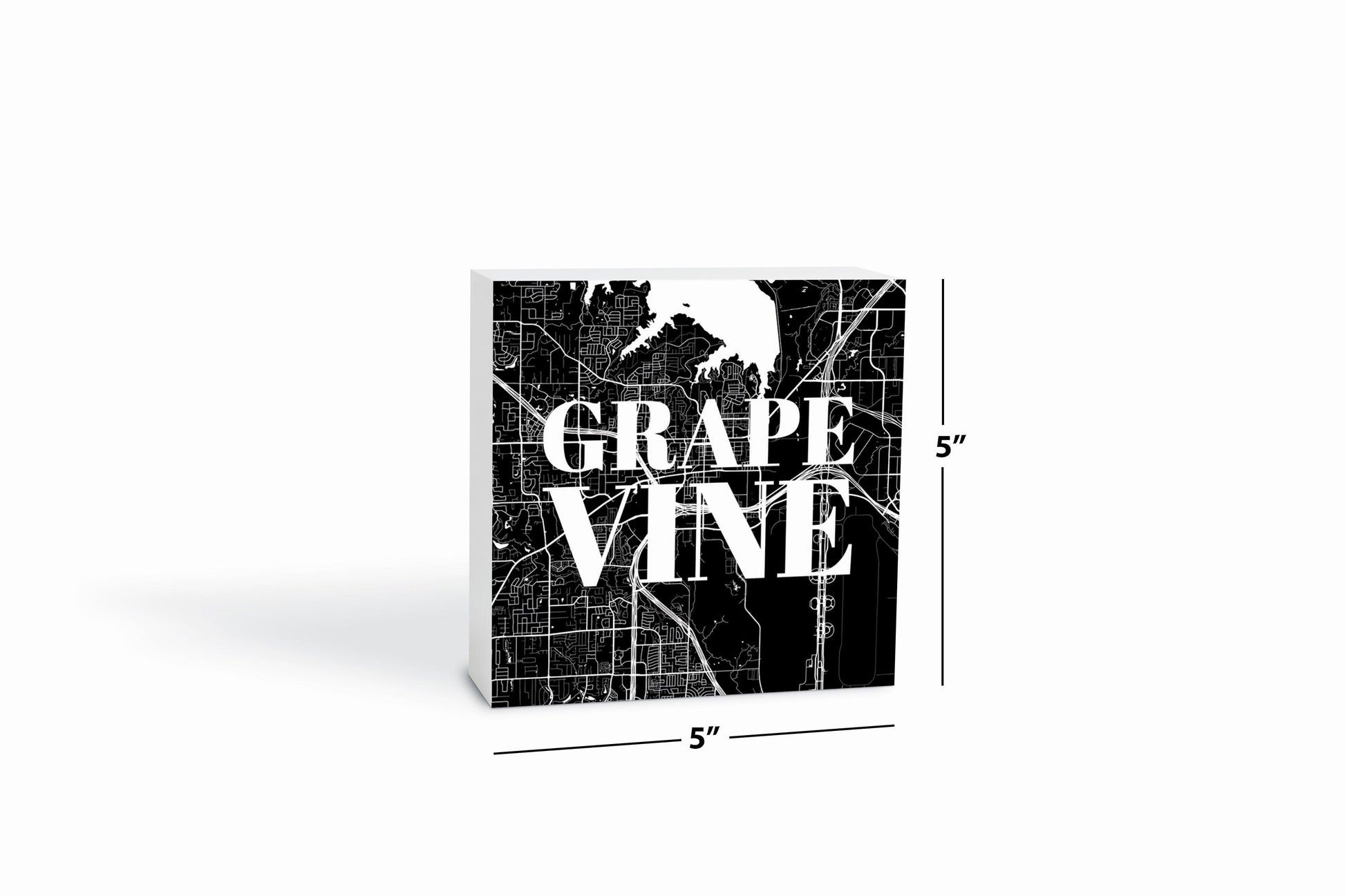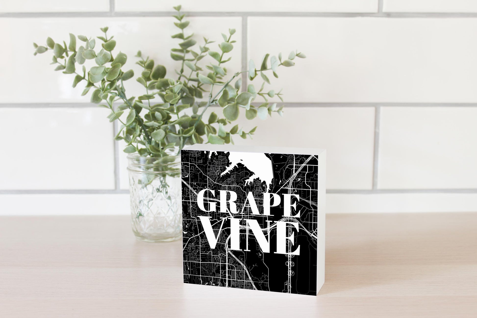 Minimalistic B&W Texas Grapevine Map | Wood Block | Eaches | Min 4