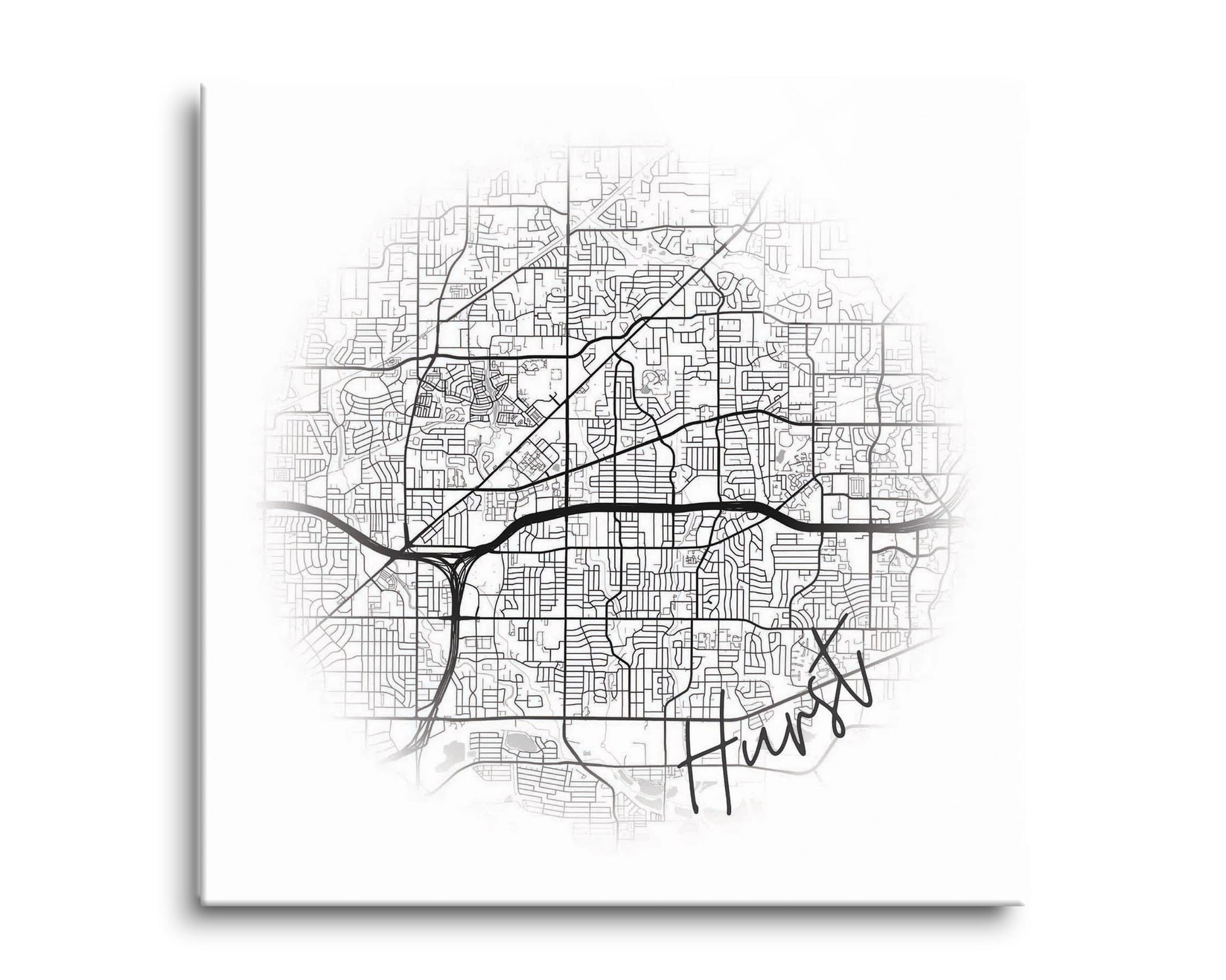 Minimalistic B&W Texas Hurst Circle Map | Hi-Def Glass Art | Eaches | Min 2