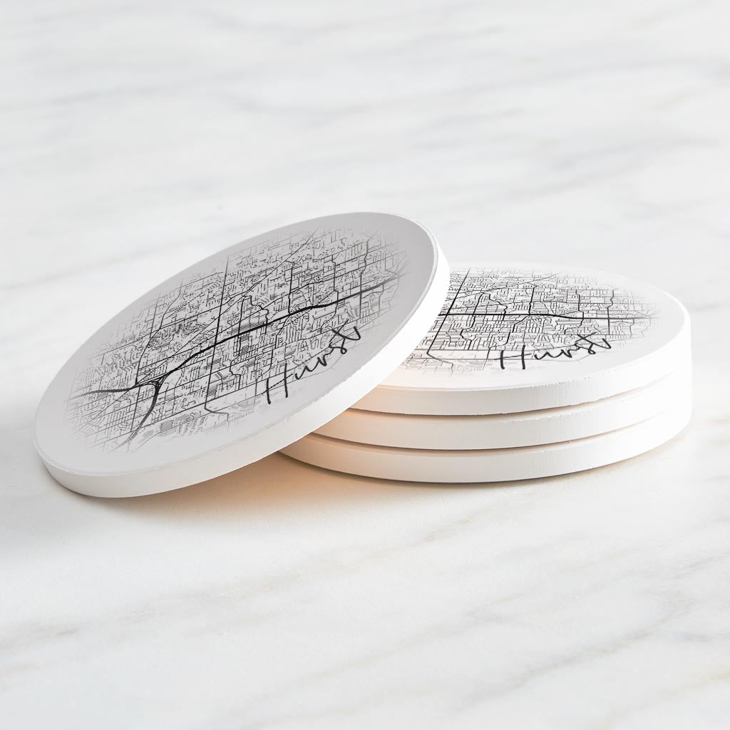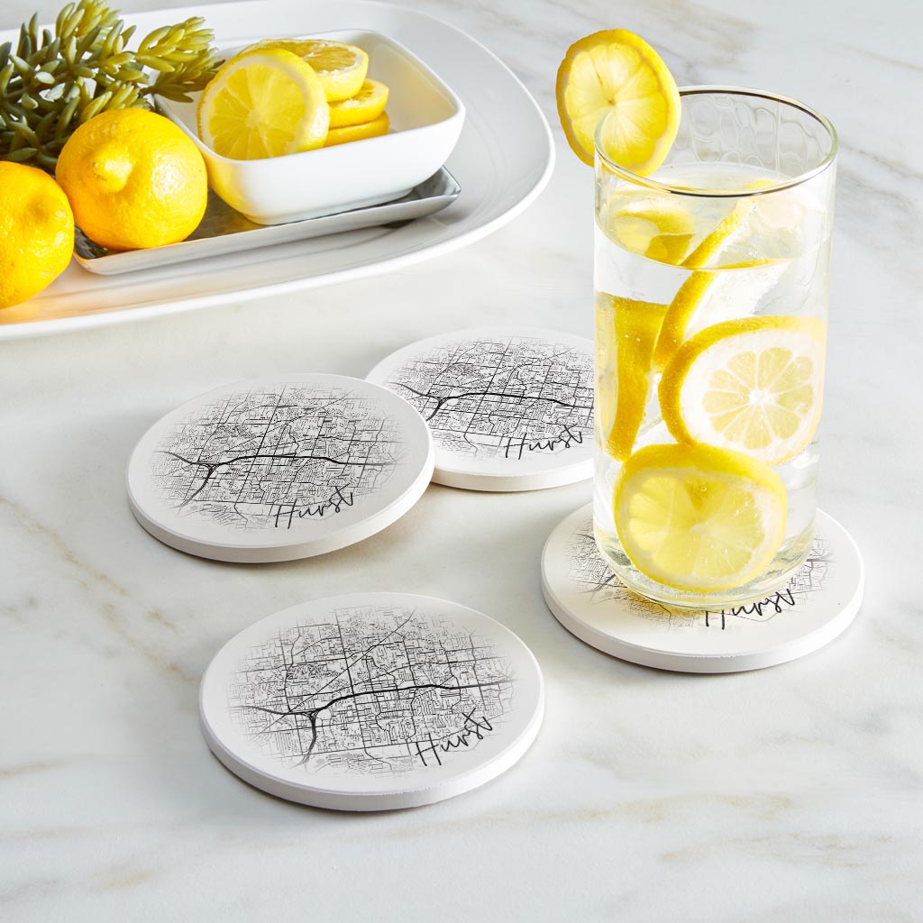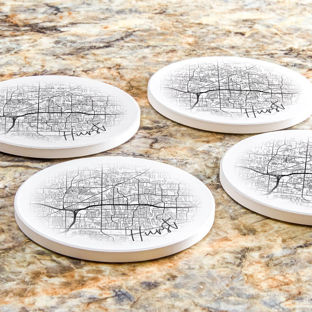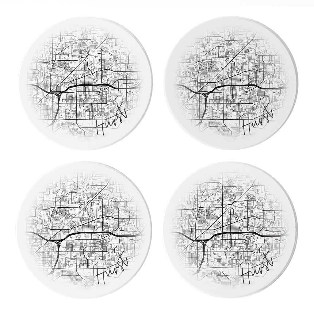 Minimalistic B&W Texas Hurst Circle Map | Absorbent Coasters | Set of 4 | Min 2