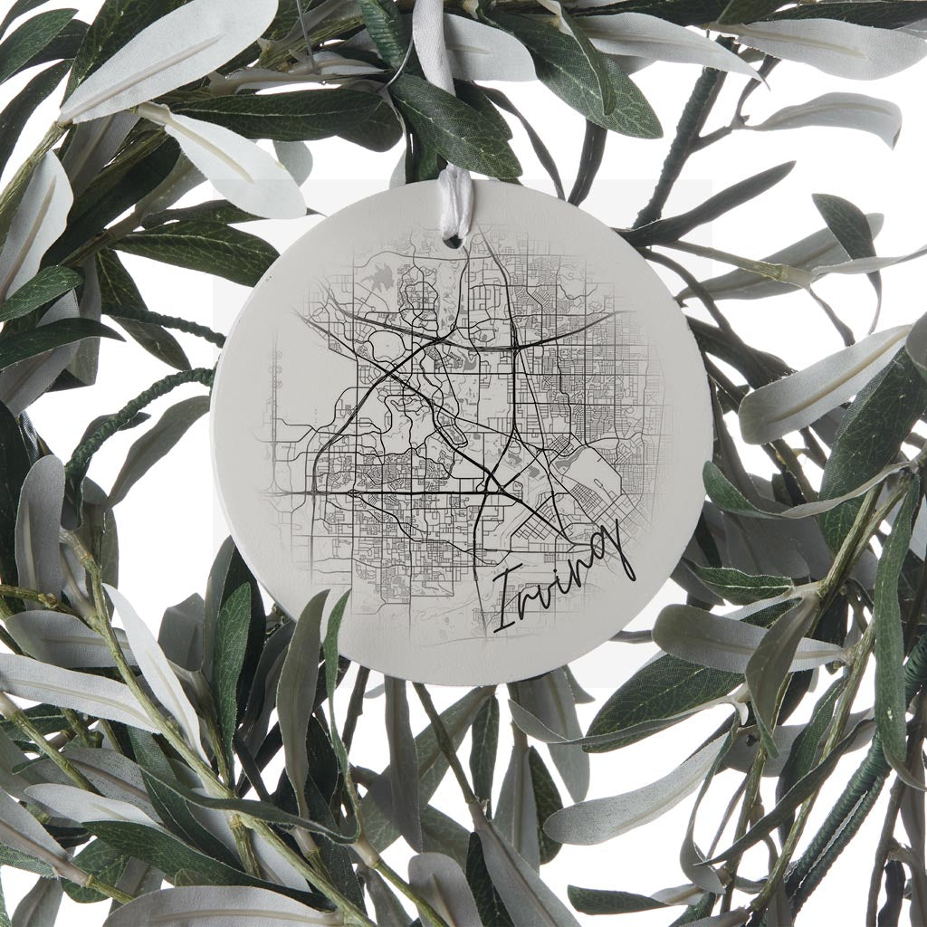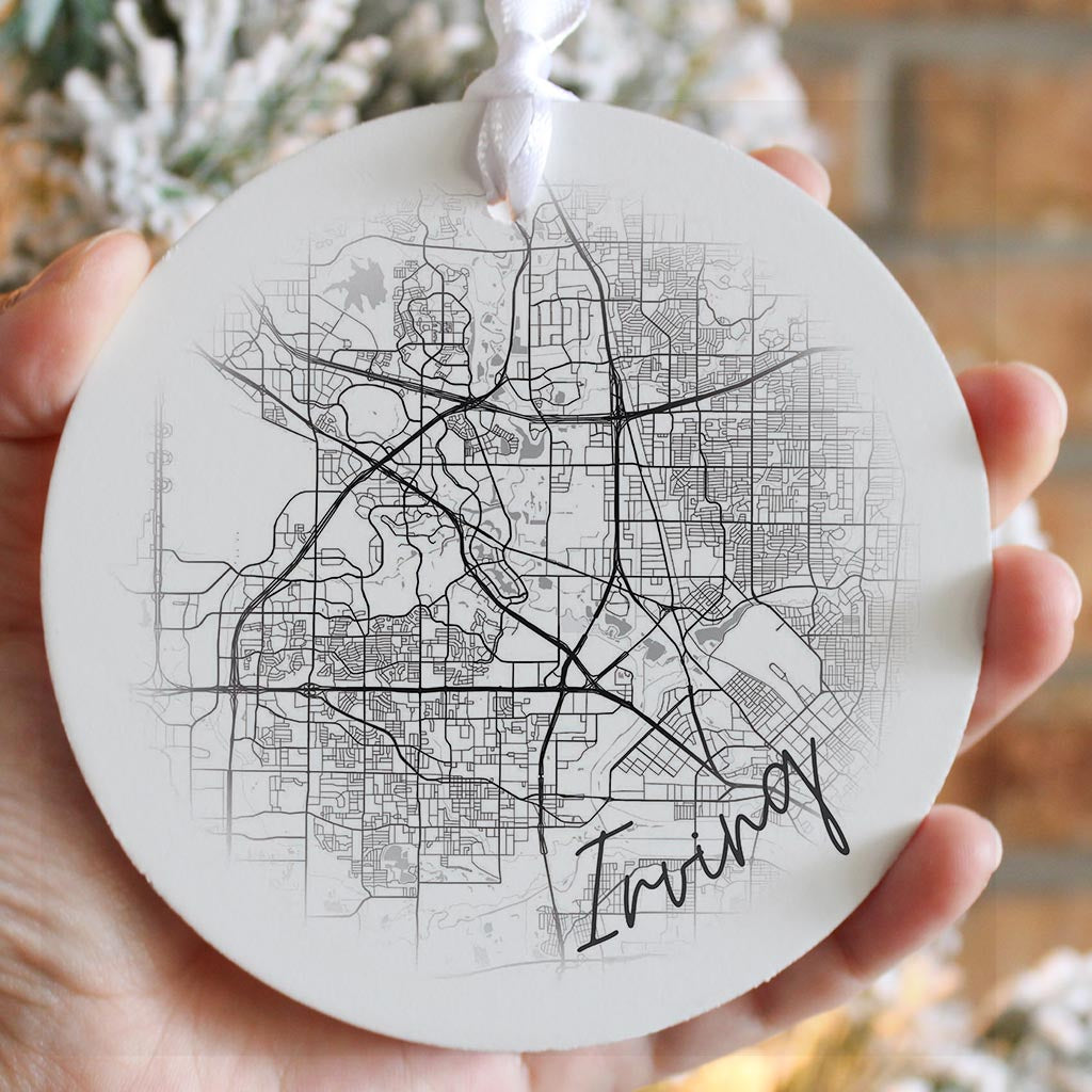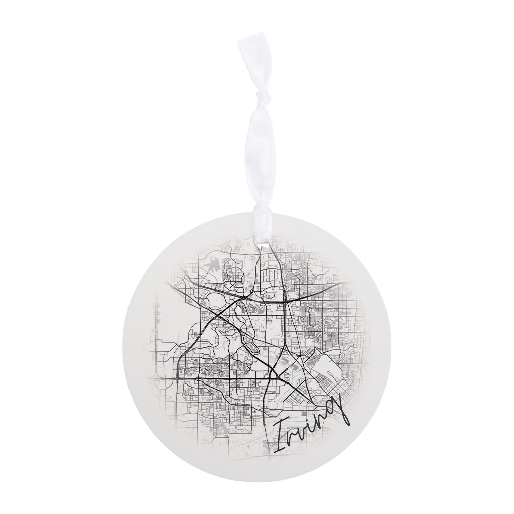 Minimalistic B&W Texas Irving Circle Map | Wood Ornament | Eaches | Min 6