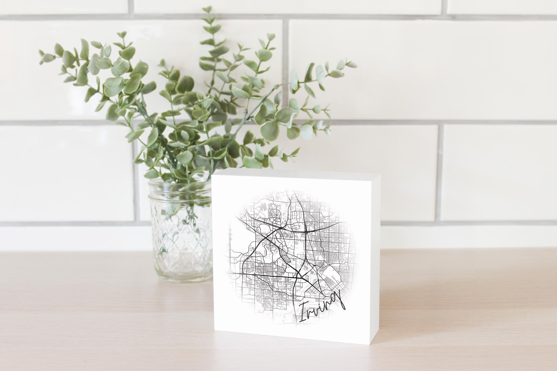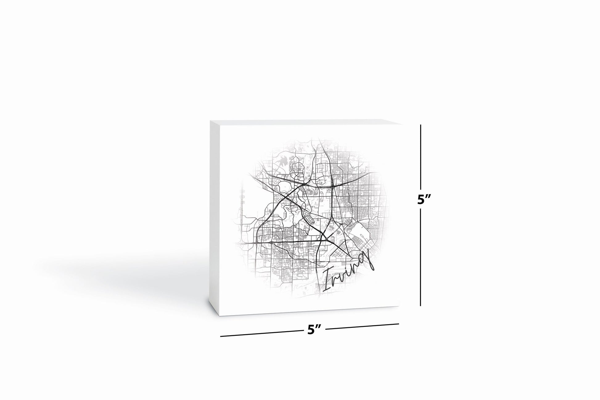 Minimalistic B&W Texas Irving Circle Map | Wood Block | Eaches | Min 4