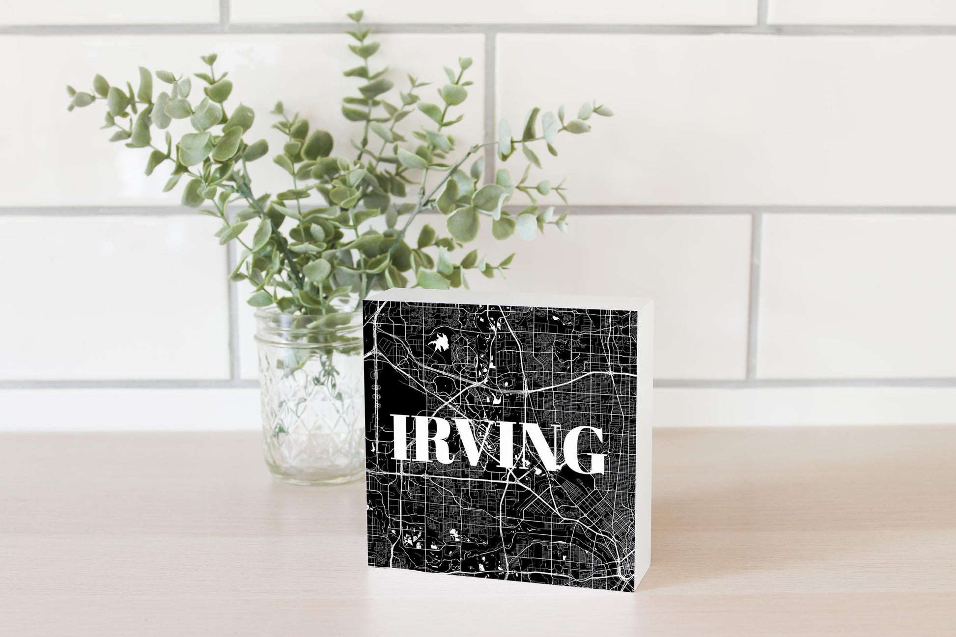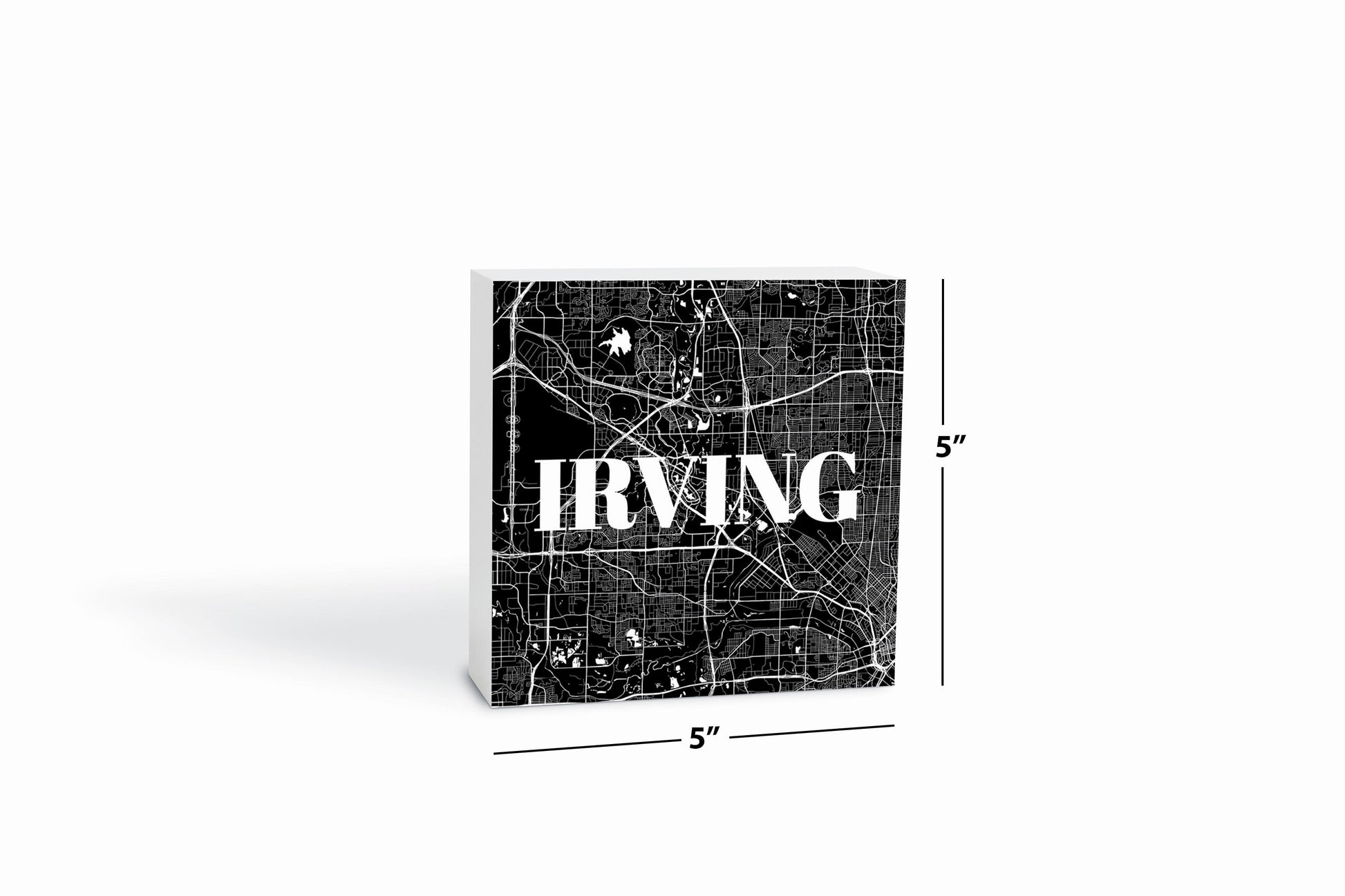 Minimalistic B&W Texas Irving Map| Wood Block | Eaches | Min 4