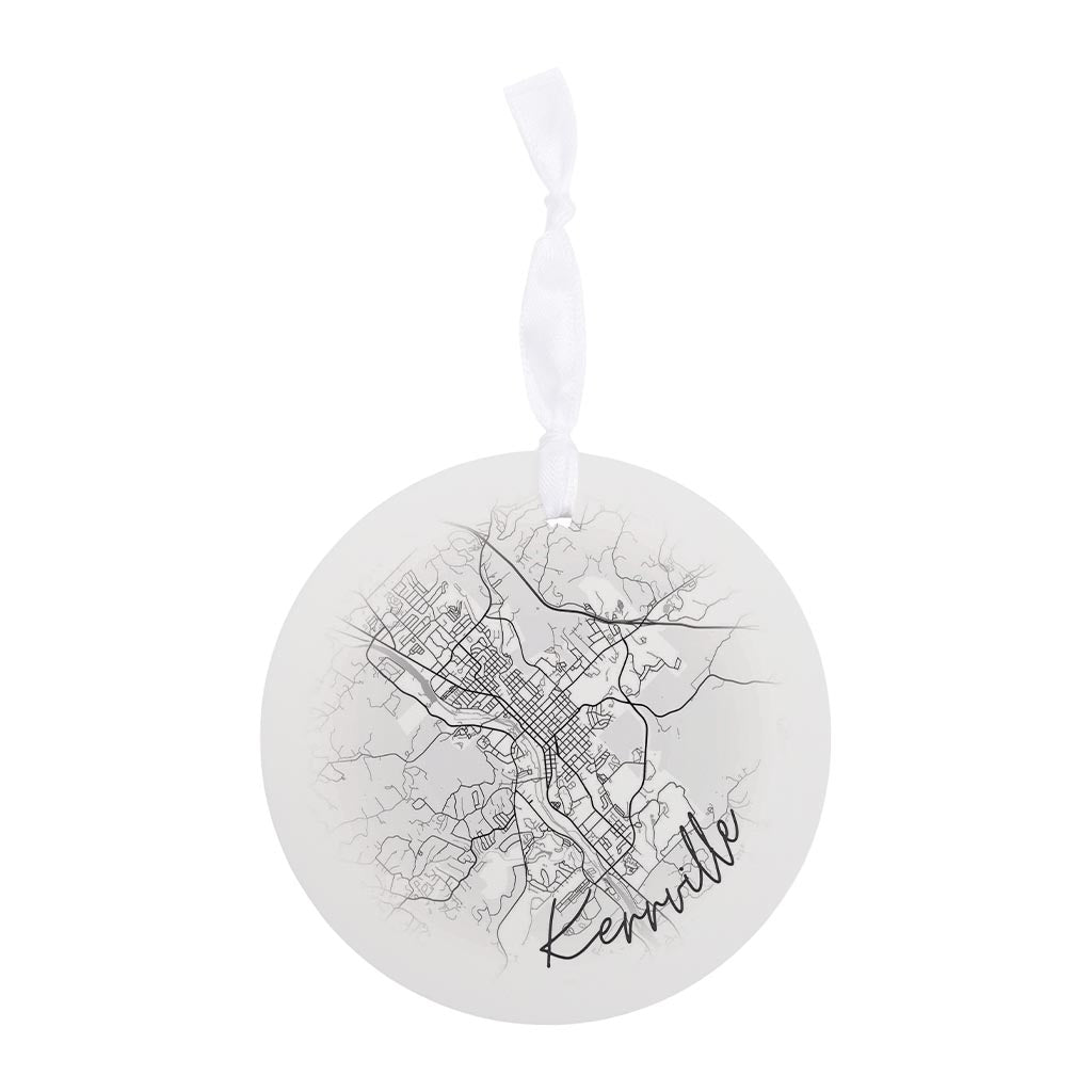 Minimalistic B&W Texas Kerrville Circle Map | Wood Ornament | Eaches | Min 6