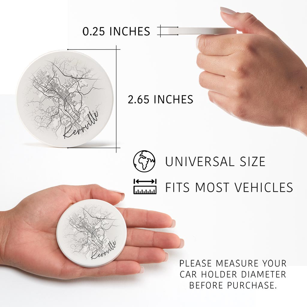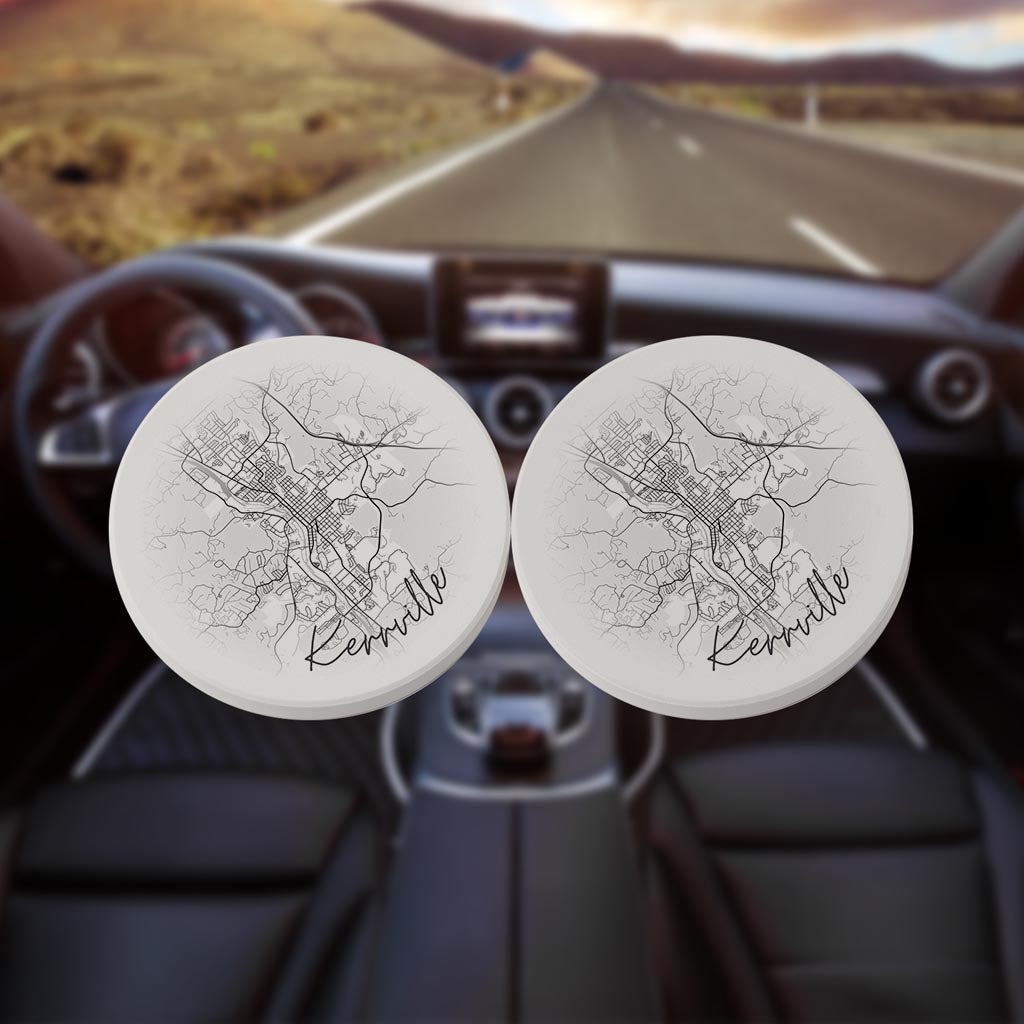 Minimalistic B&W Texas Kerrville Circle Map | Absorbent Car Coasters | Set of 2 | Min 4