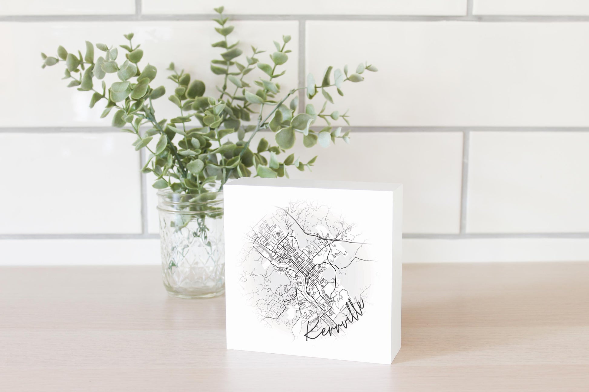 Minimalistic B&W Texas Kerrville Circle Map | Wood Block | Eaches | Min 4