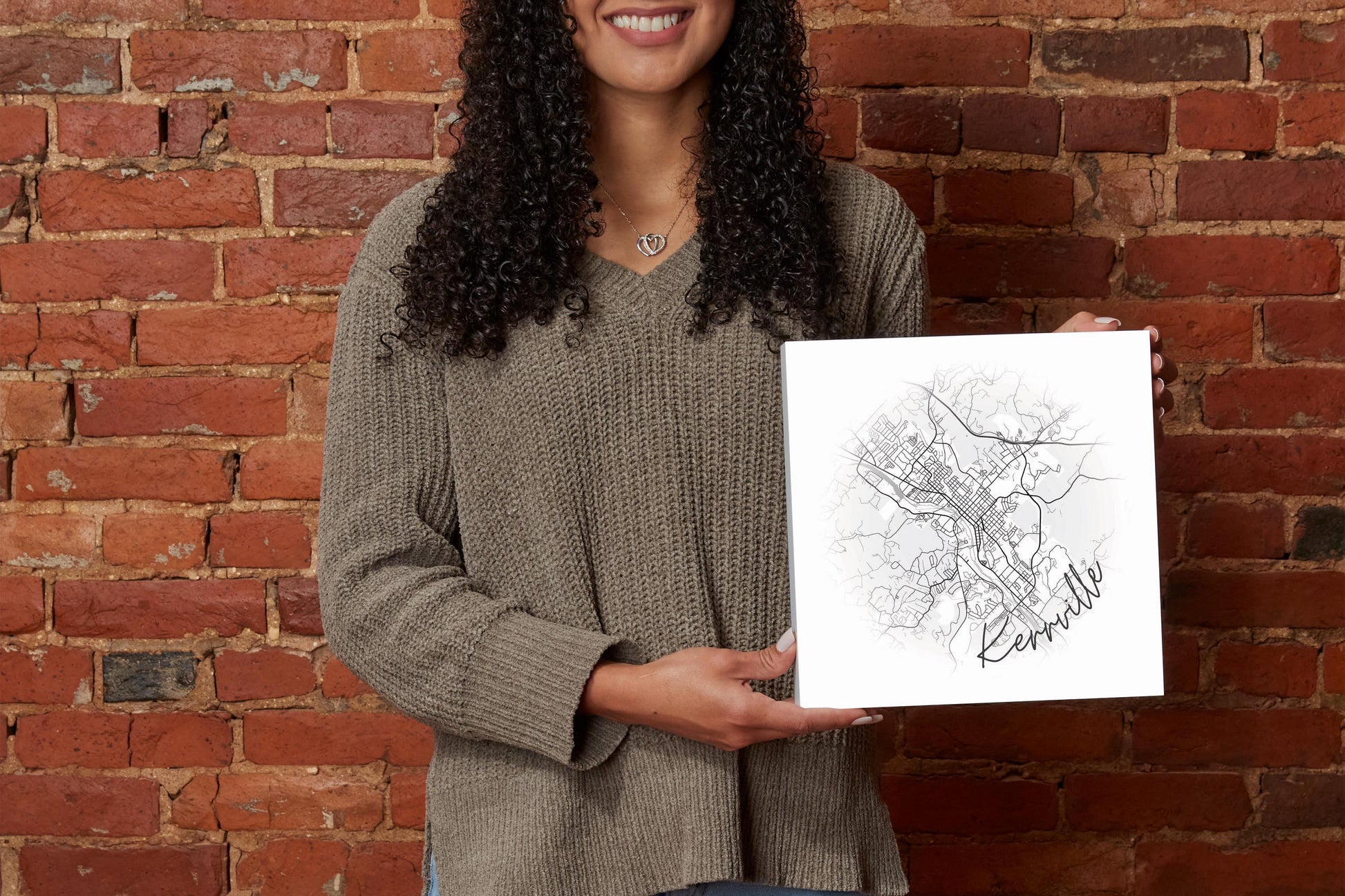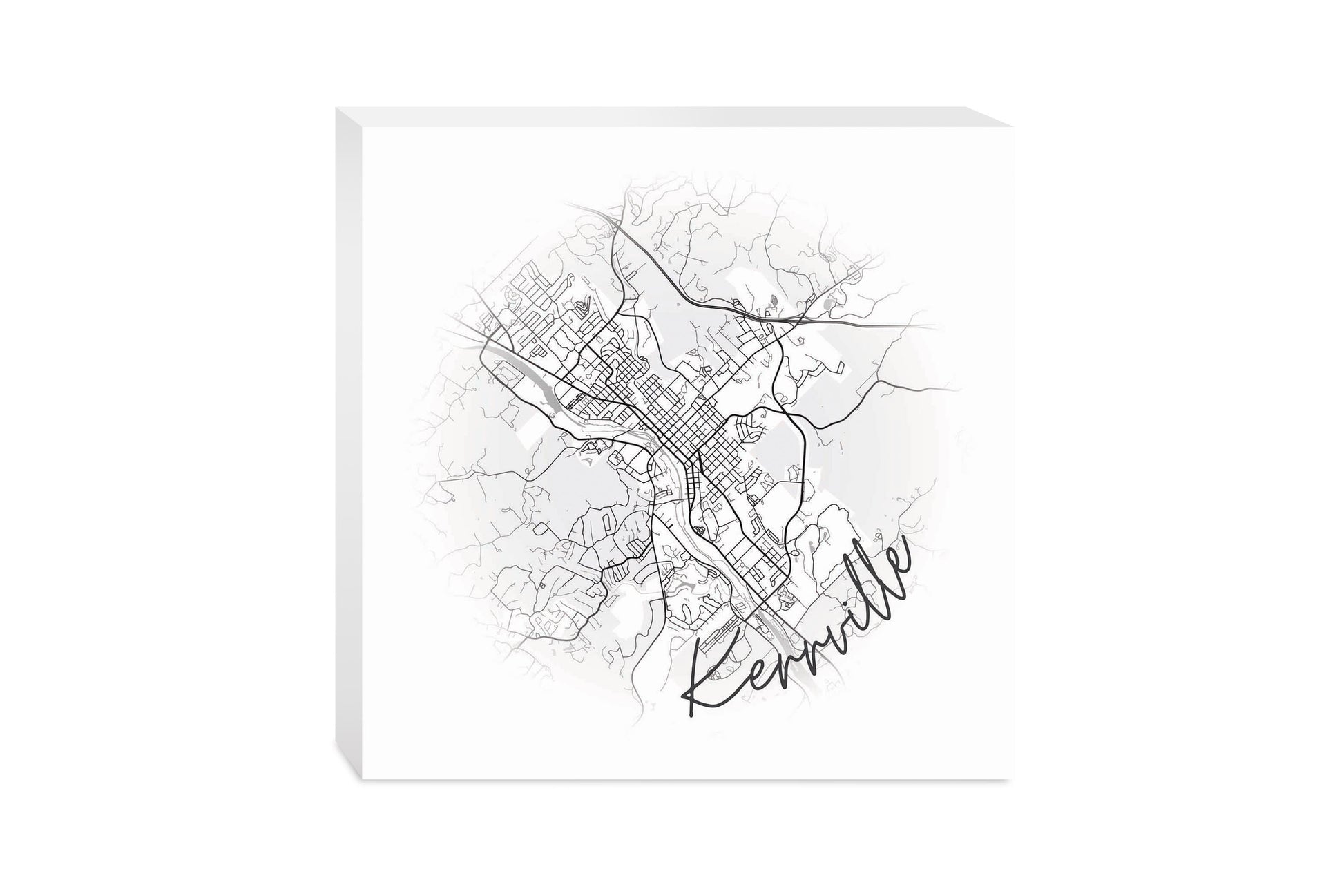 Minimalistic B&W Texas Kerrville Circle Map | Wood Block | Eaches | Min 2