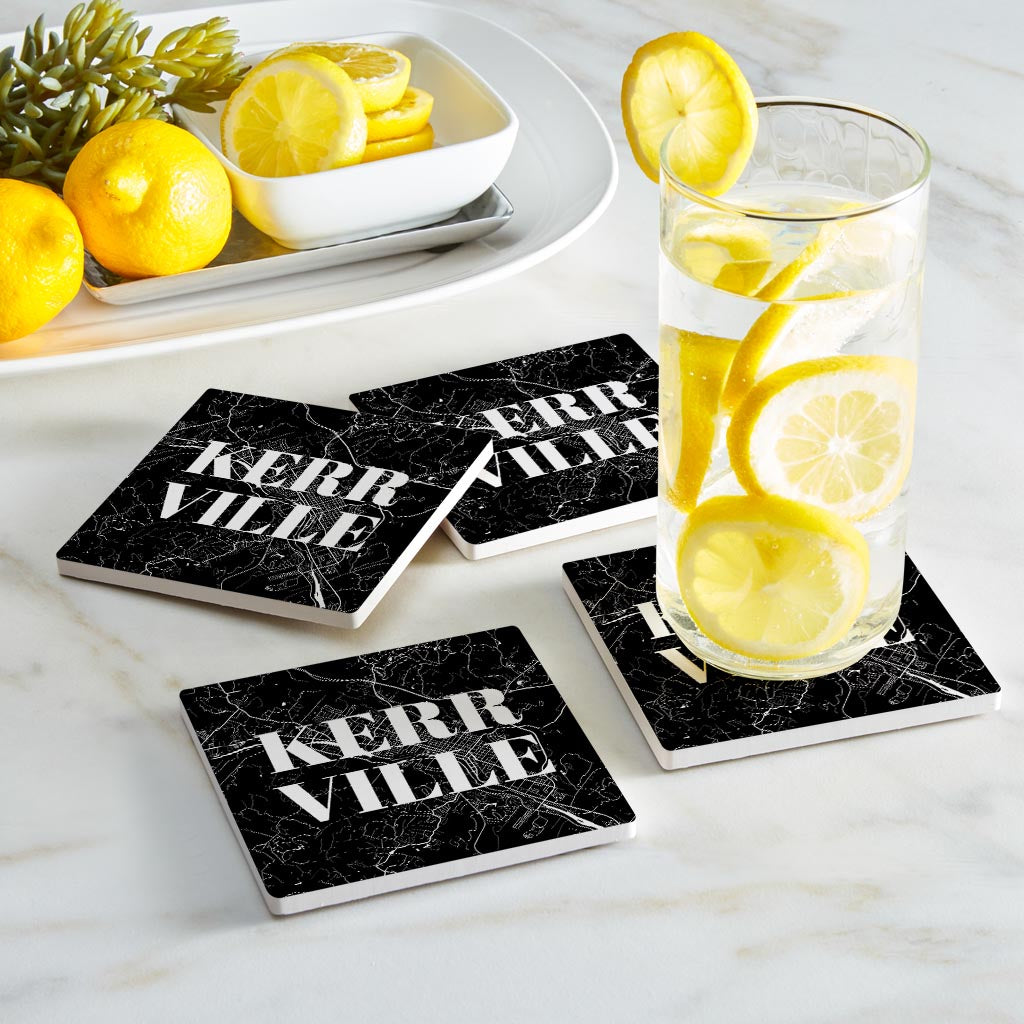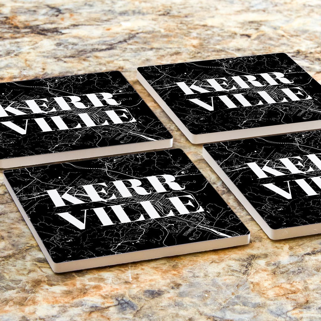 Minimalistic B&W Texas Kerrville Map| Absorbent Coasters | Set of 4 | Min 2