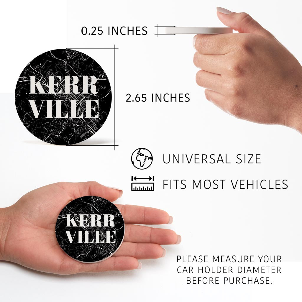 Minimalistic B&W Texas Kerrville Map | Absorbent Car Coasters | Set of 2 | Min 4