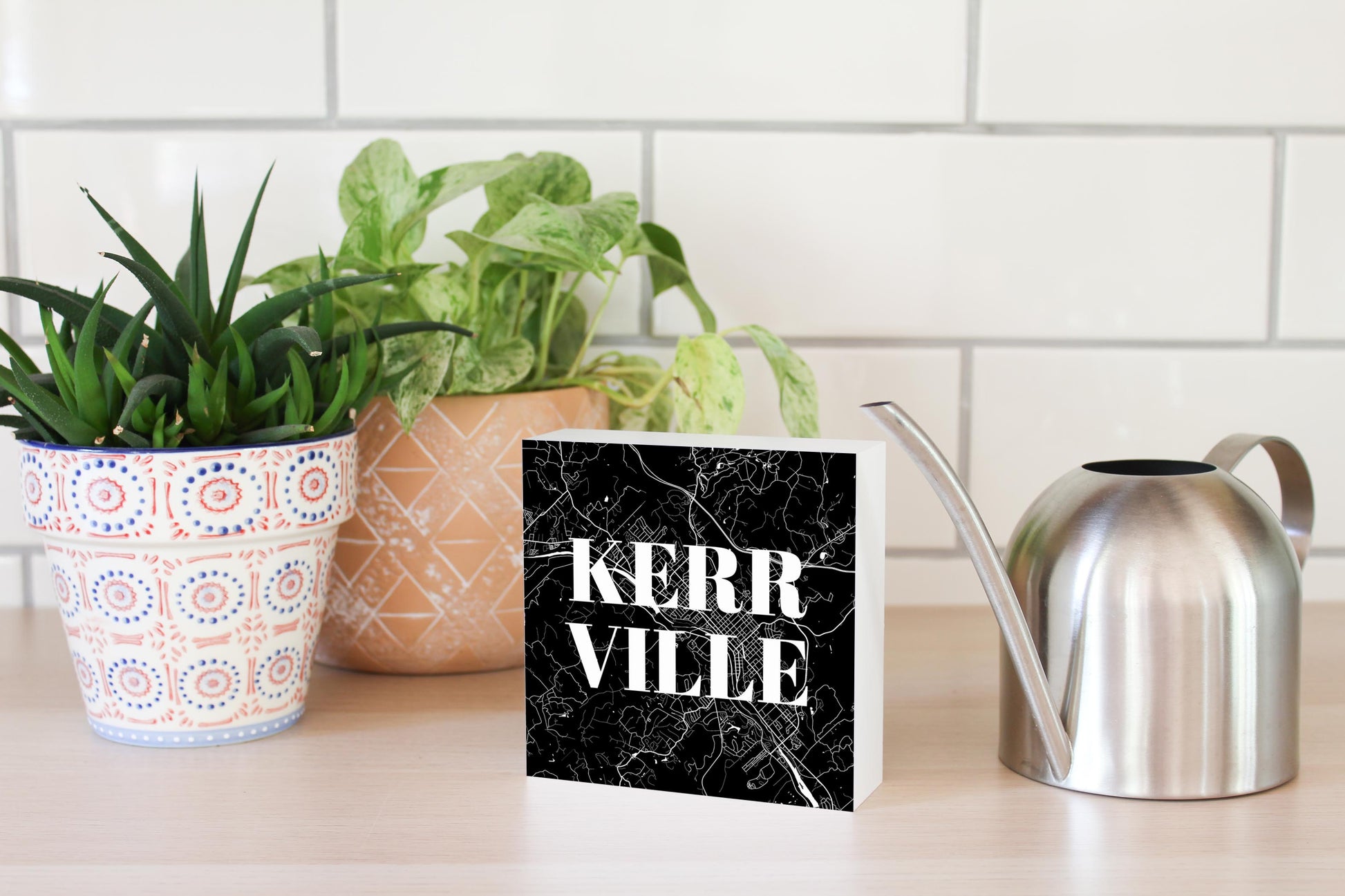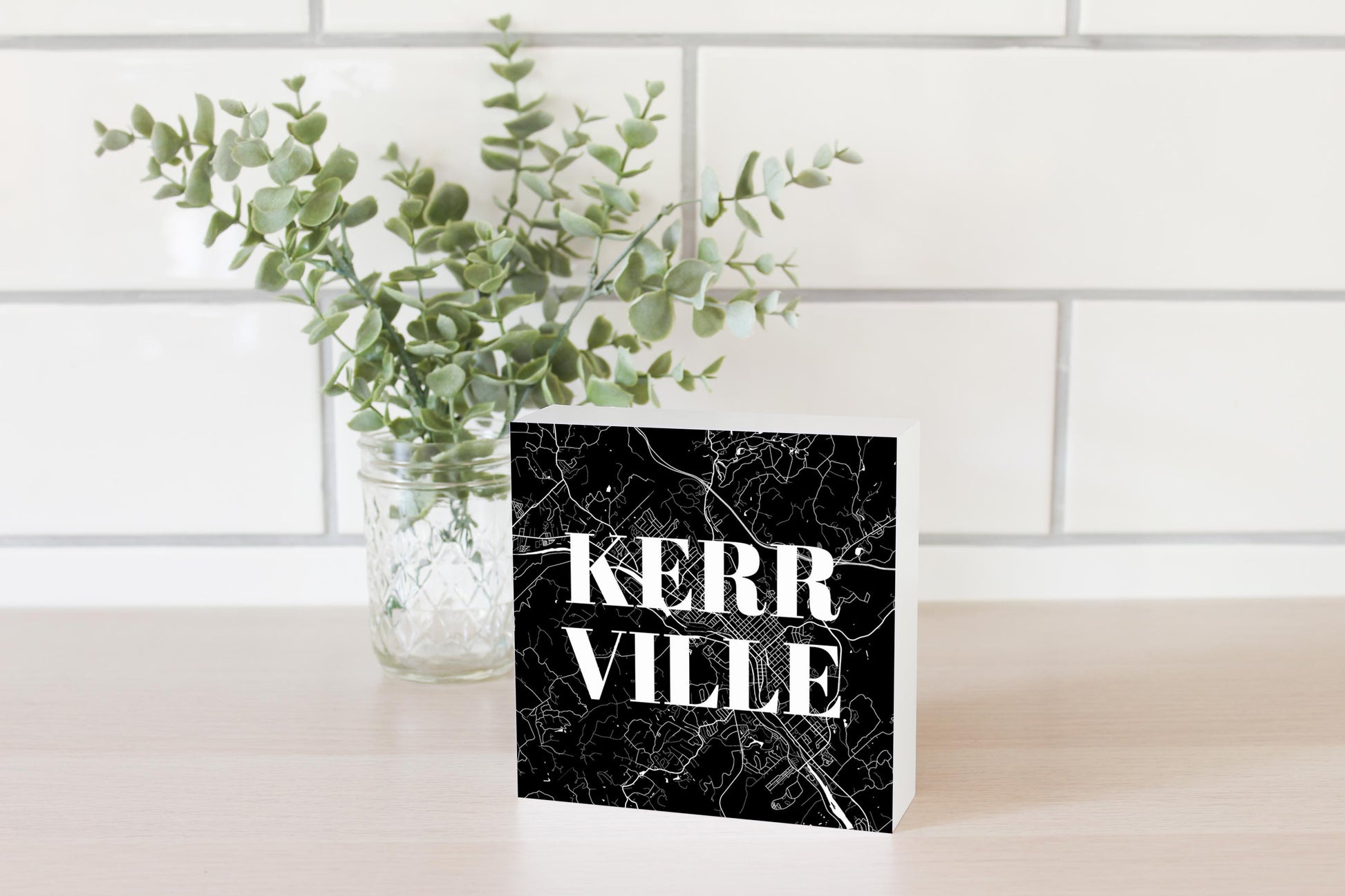 Minimalistic B&W Texas Kerrville Map | Wood Block | Eaches | Min 4