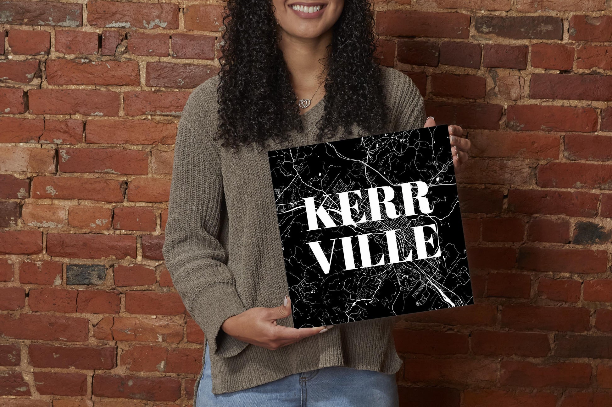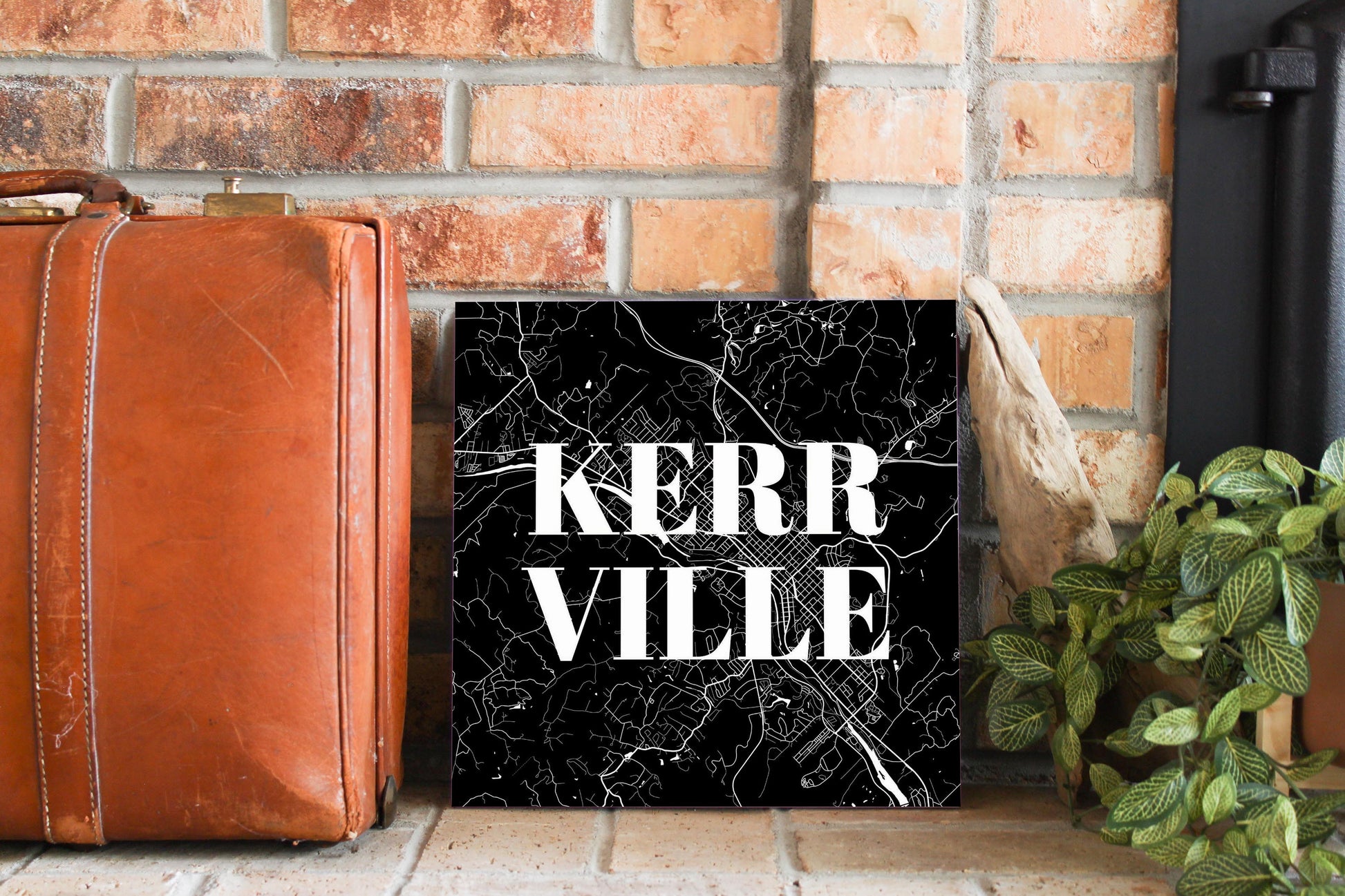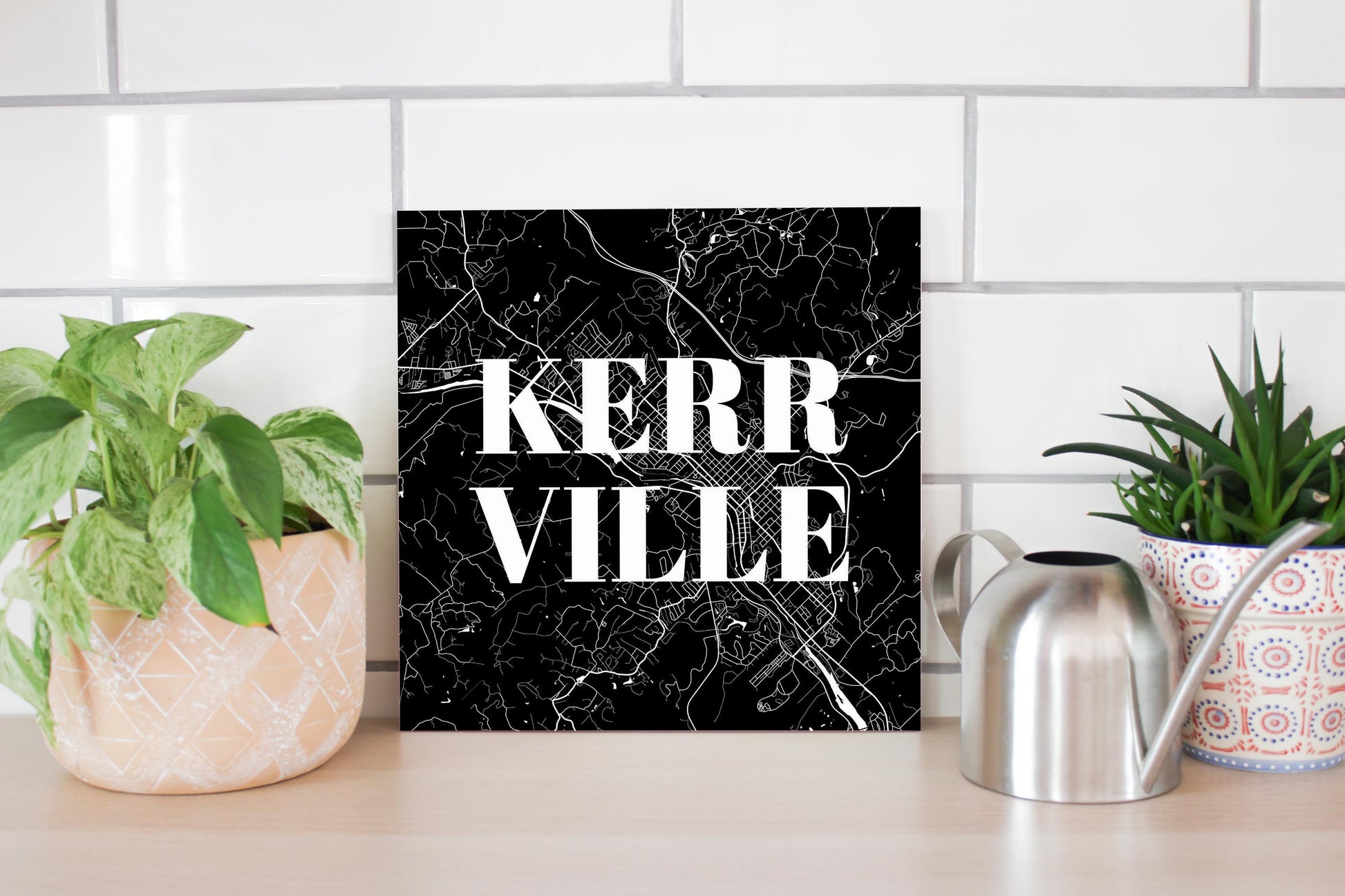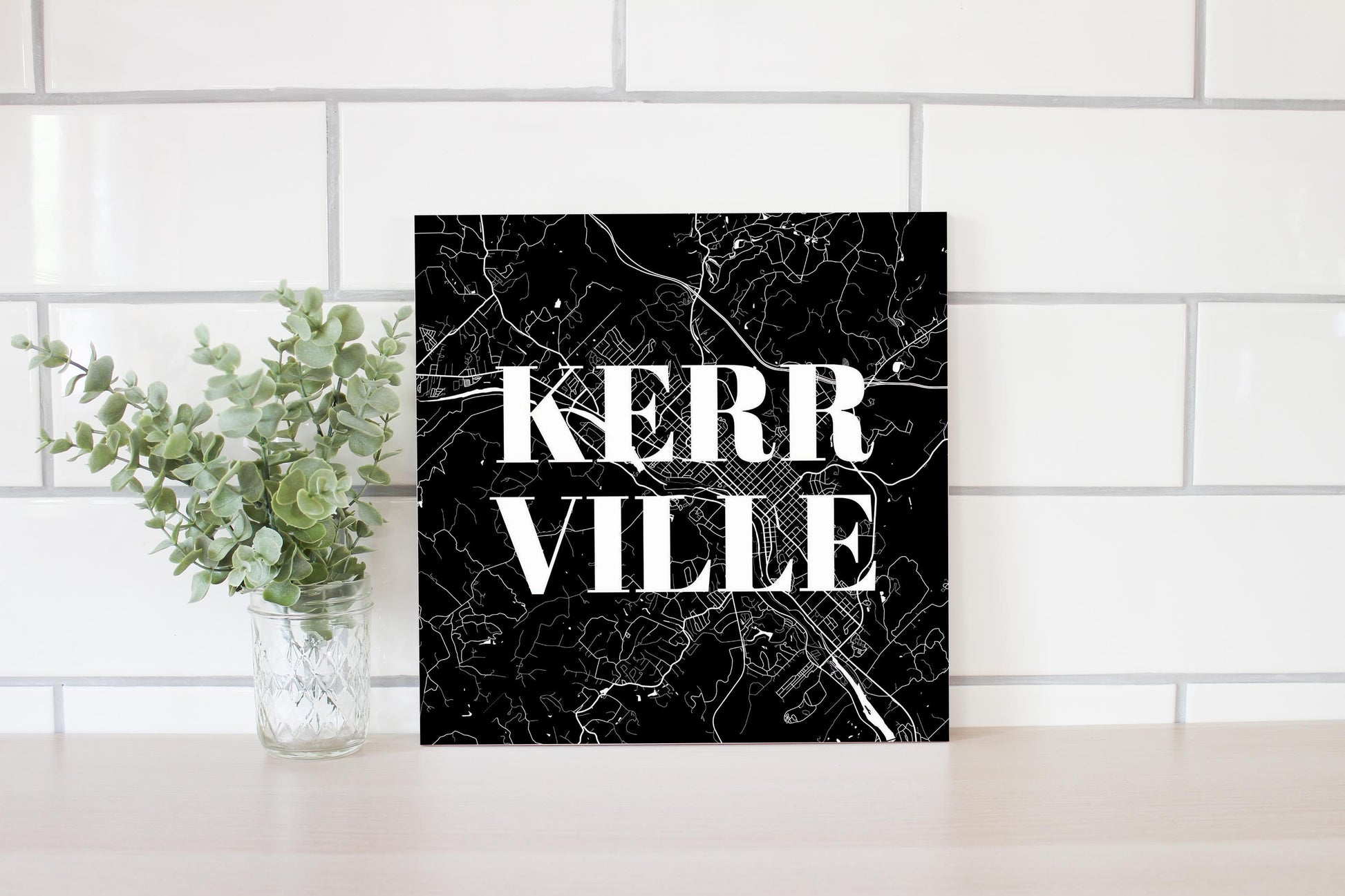 Minimalistic B&W Texas Kerrville Map | Wood Sign | Eaches | Min 2