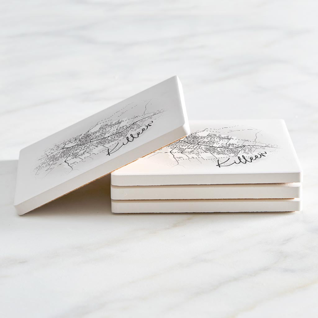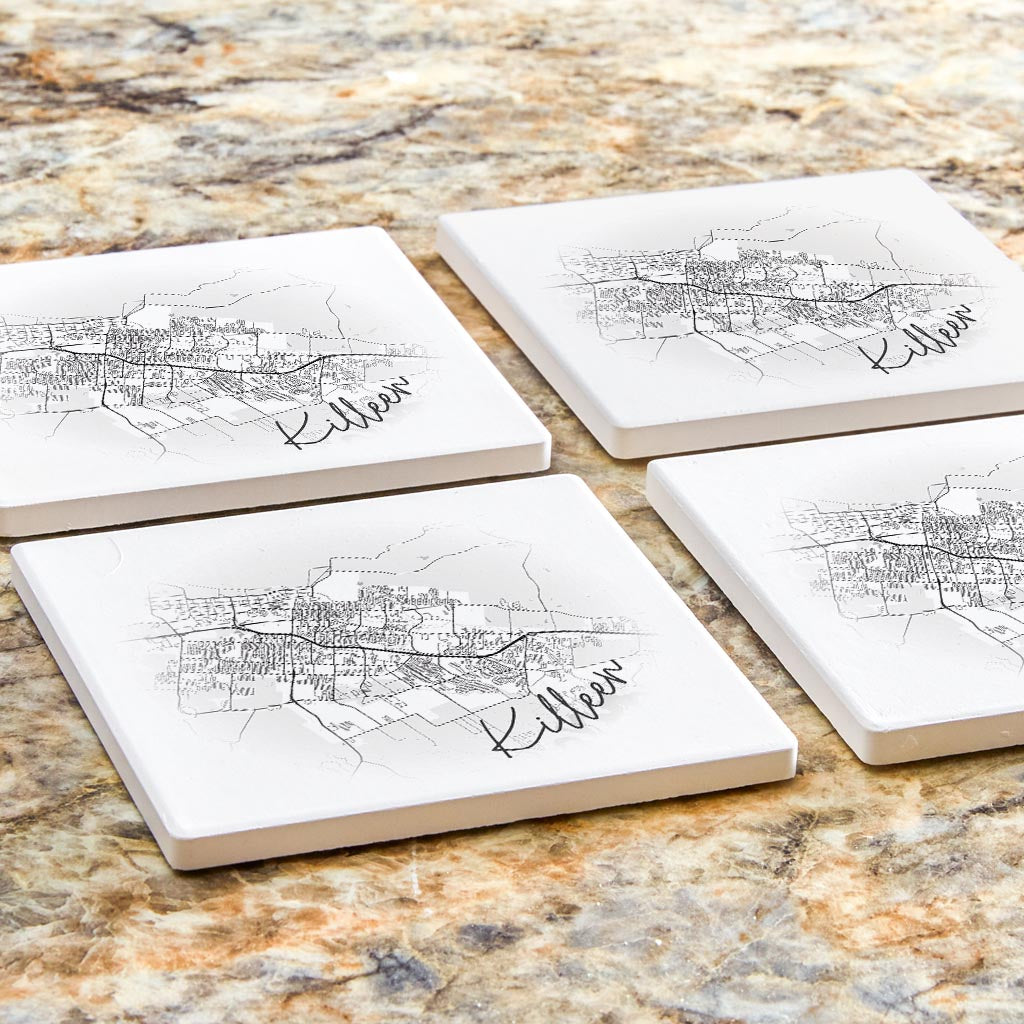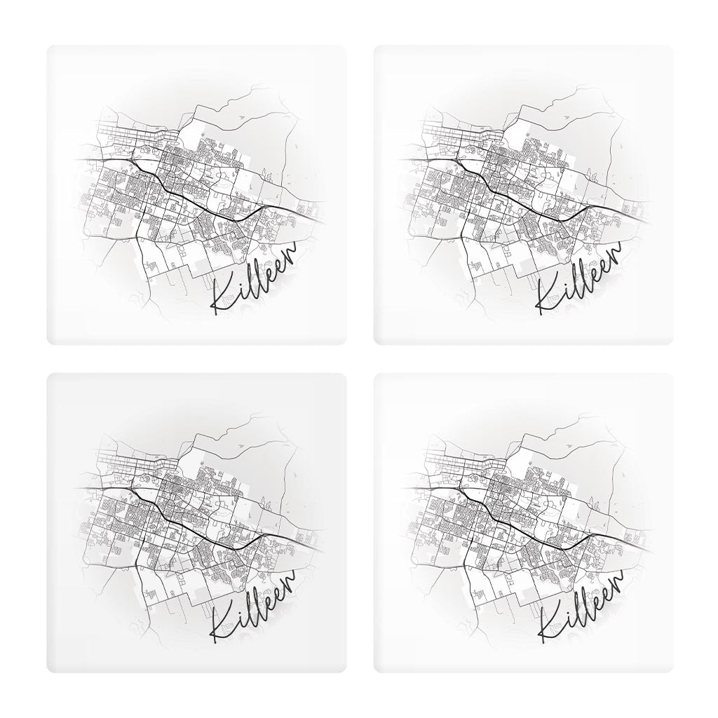 Minimalistic B&W Texas Killeen Circle Map | Absorbent Coasters | Set of 4 | Min 2