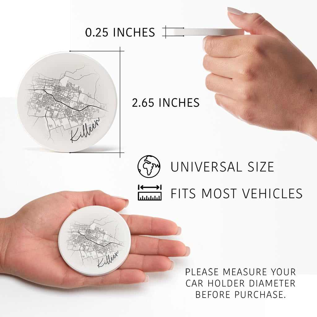 Minimalistic B&W Texas Killeen Circle Map | Absorbent Car Coasters | Set of 2 | Min 4