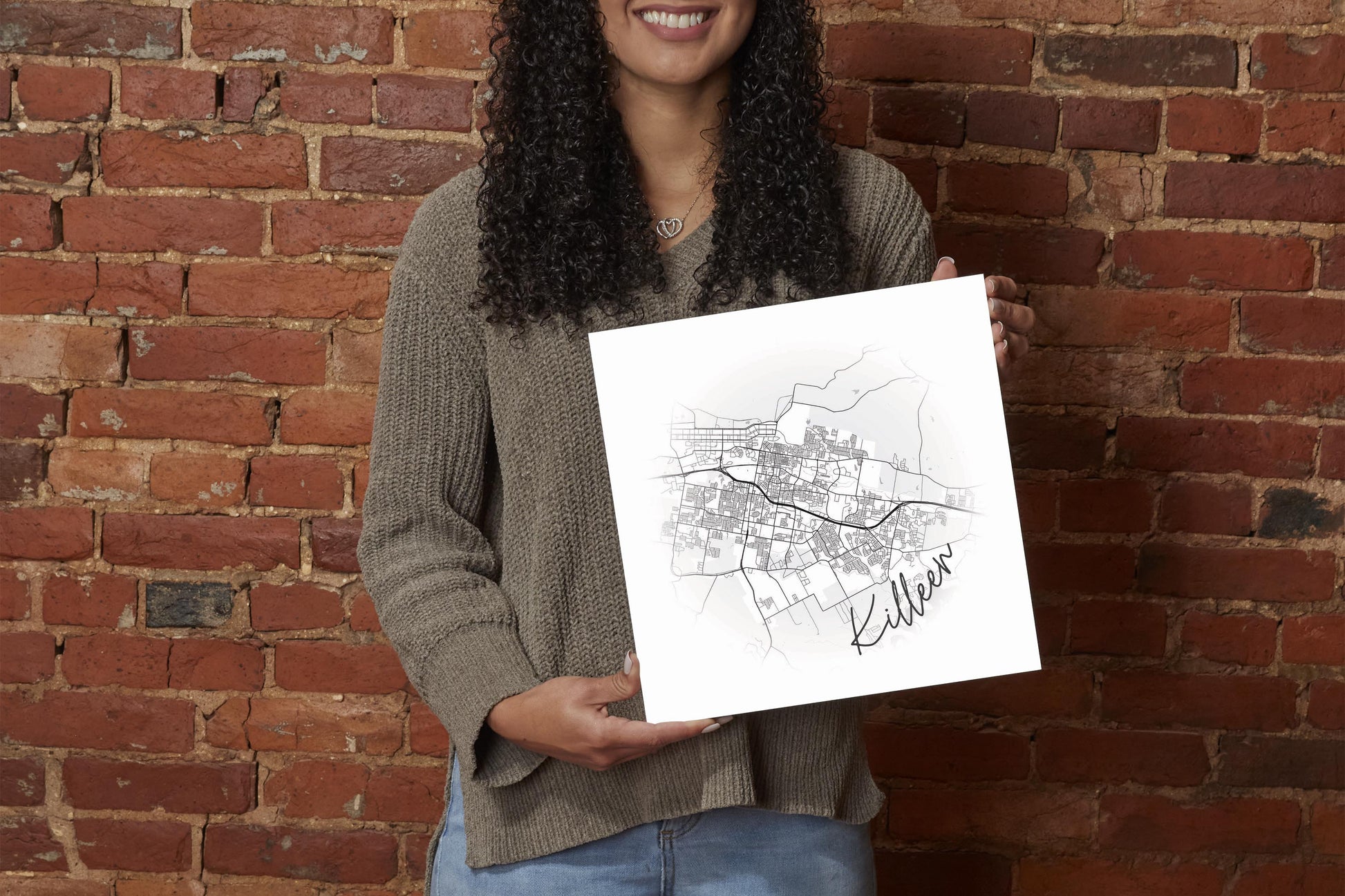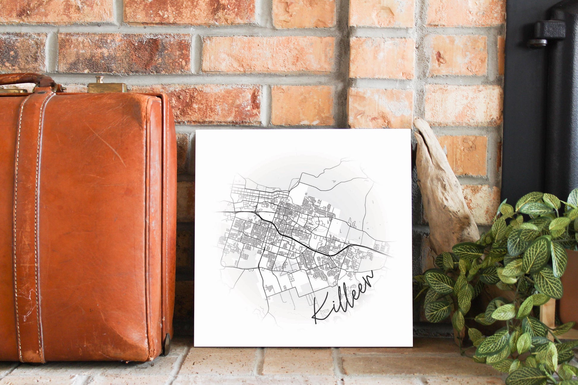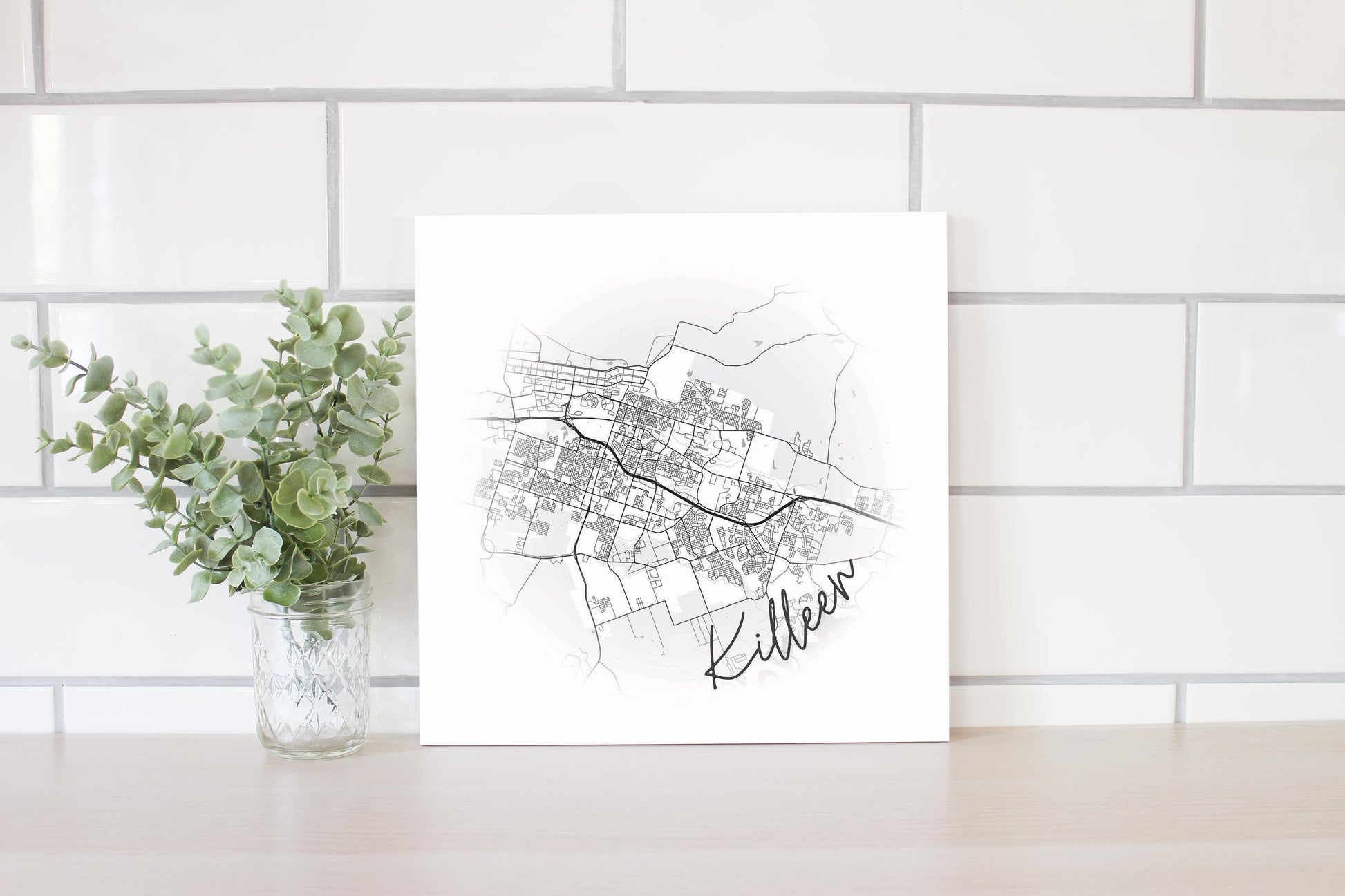 Minimalistic B&W Texas Killeen Circle Map | Wood Sign | Eaches | Min 2