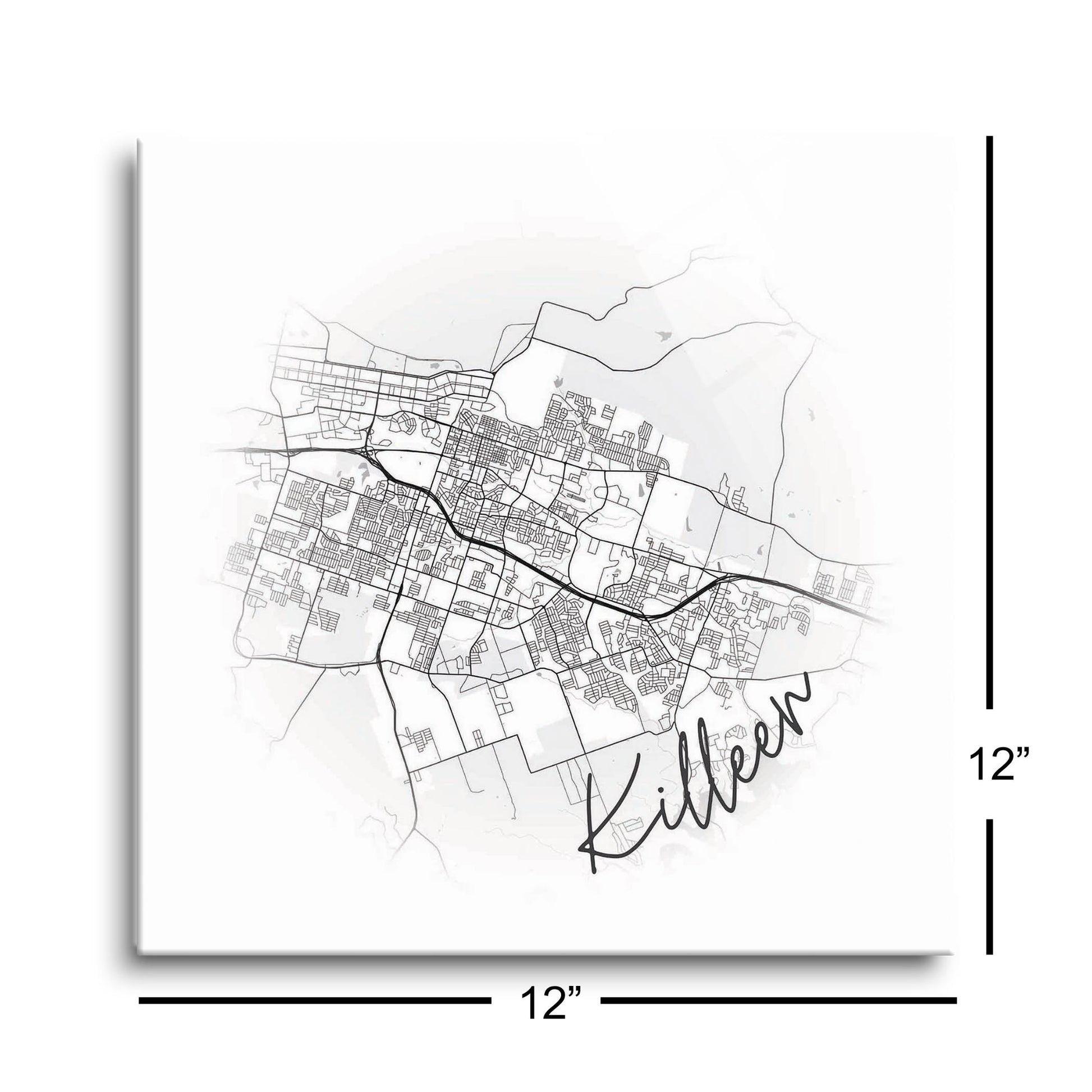 Minimalistic B&W Texas Killeen Circle Map | Hi-Def Glass Art | Eaches | Min 1