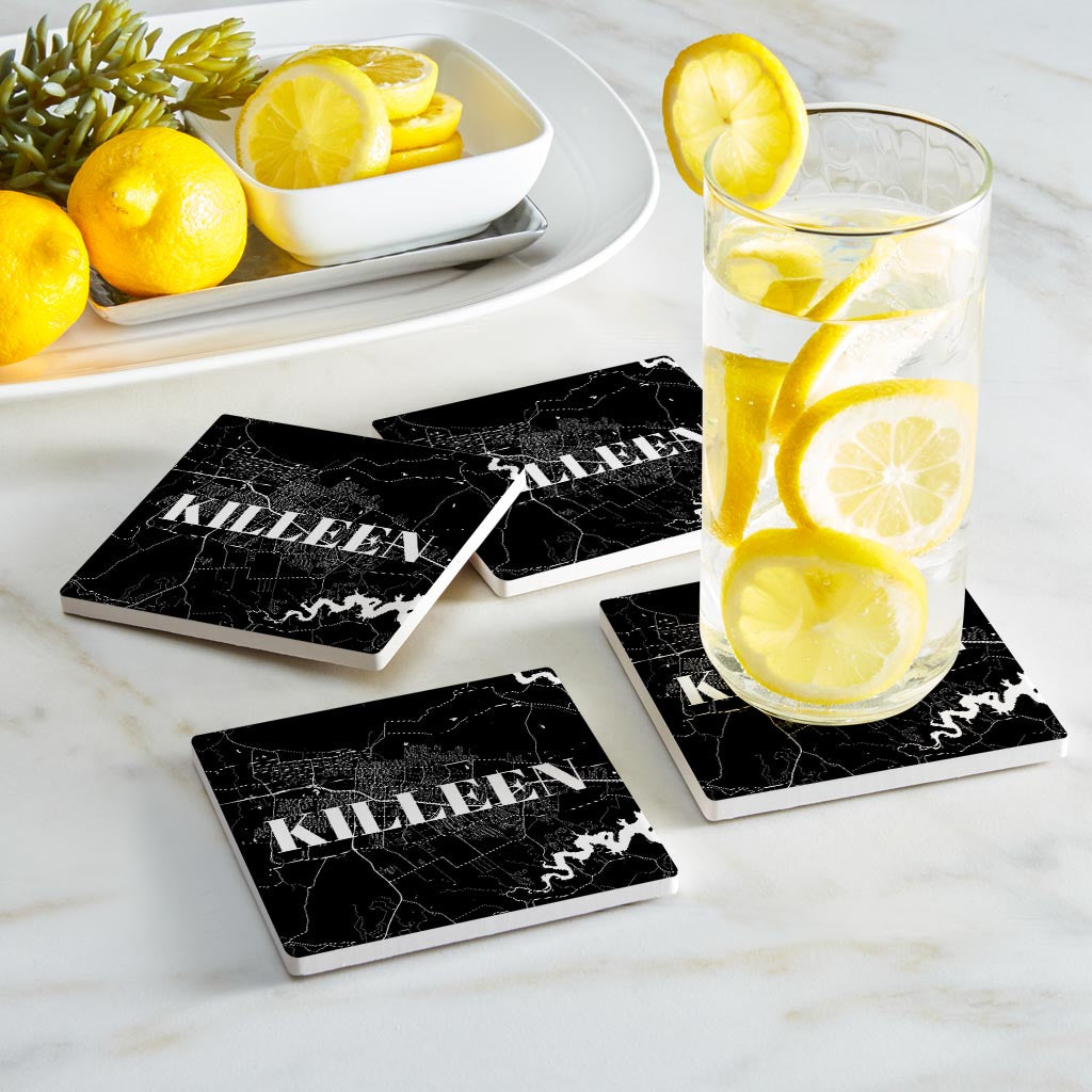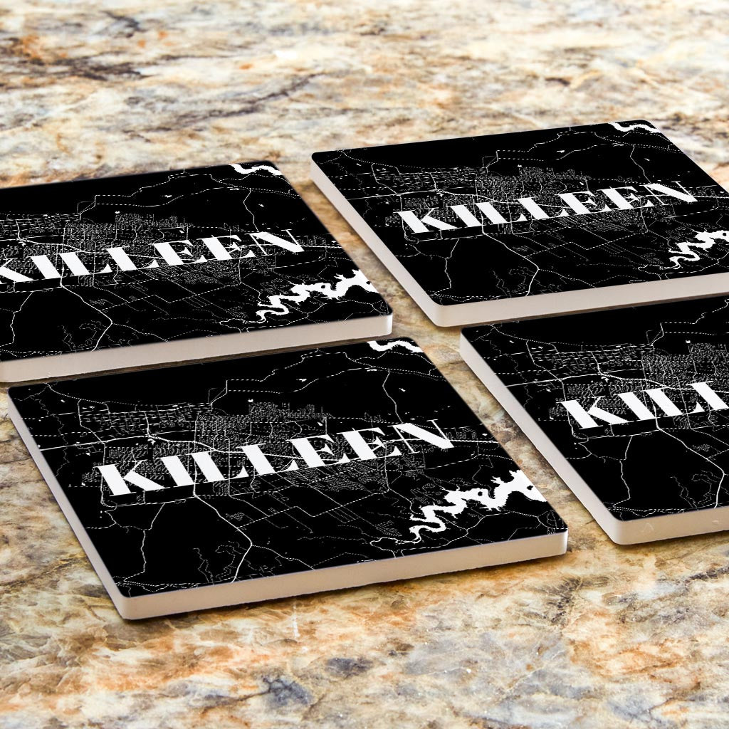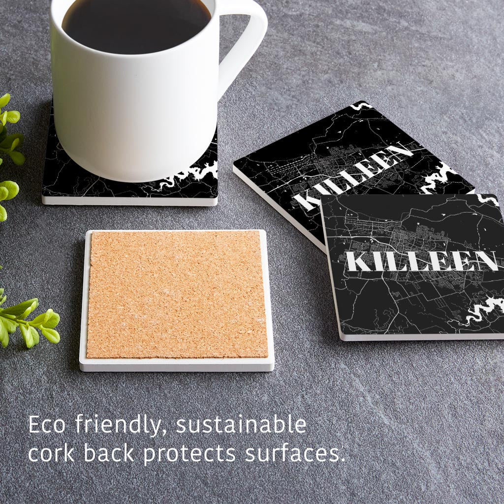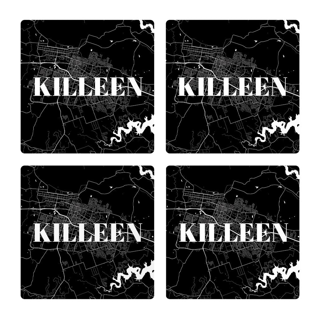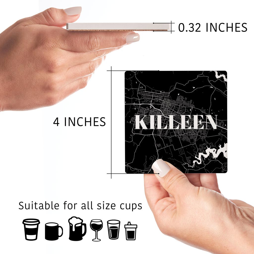 Minimalistic B&W Texas Killeen Map | Absorbent Coasters | Set of 4 | Min 2