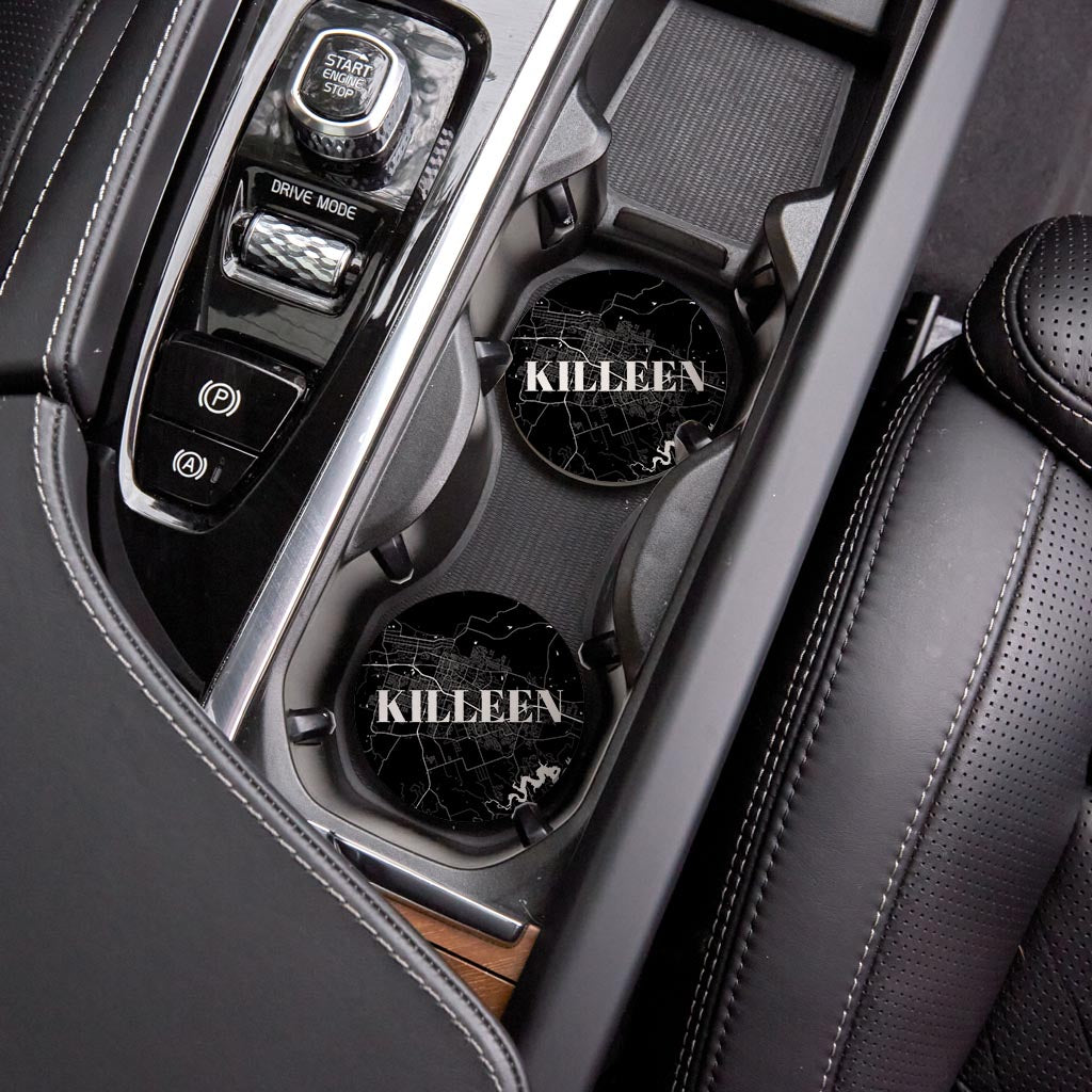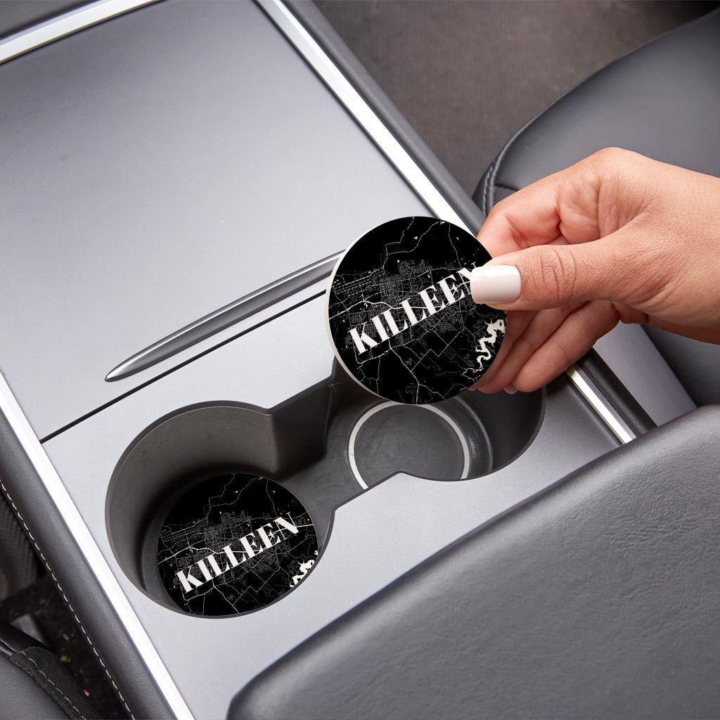 Minimalistic B&W Texas Killeen Map | Absorbent Car Coasters | Set of 2 | Min 4