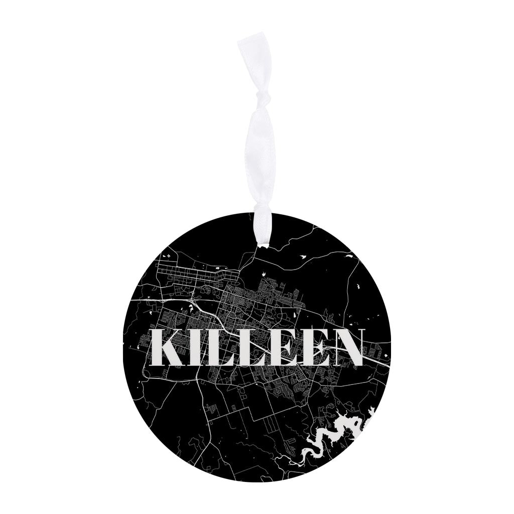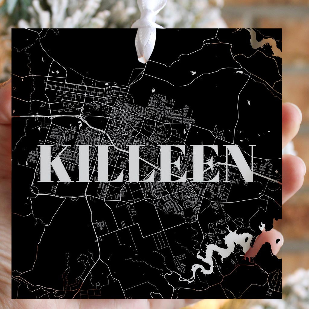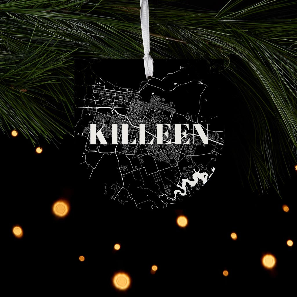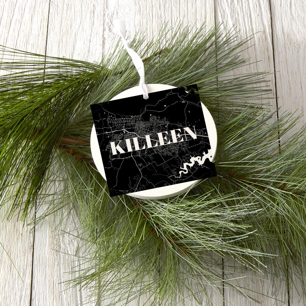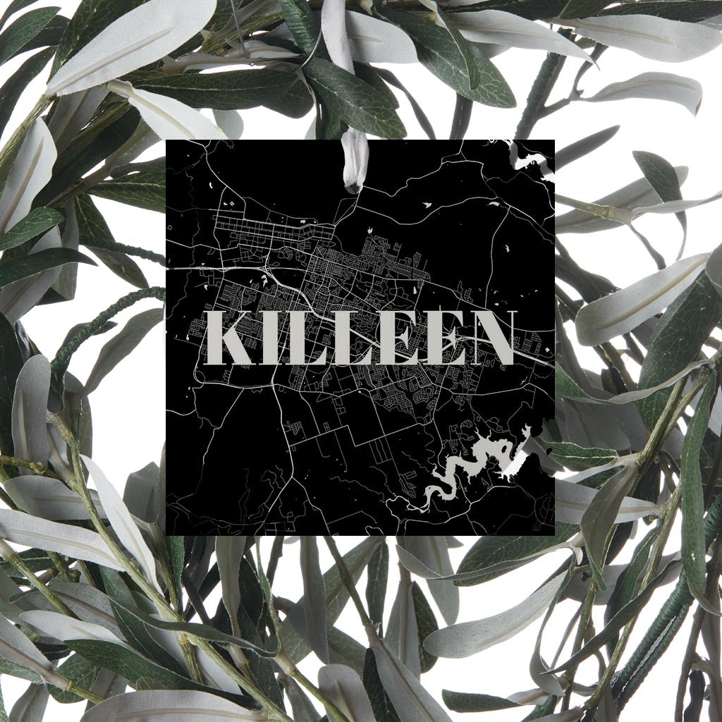 Minimalistic B&W Texas Killeen Map | Wood Ornament | Eaches | Min 6