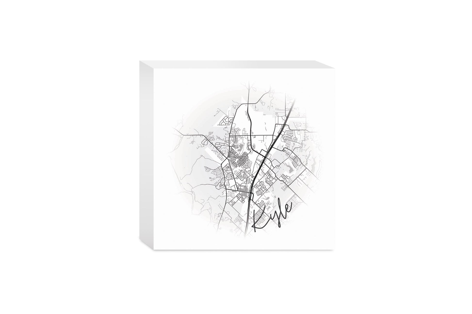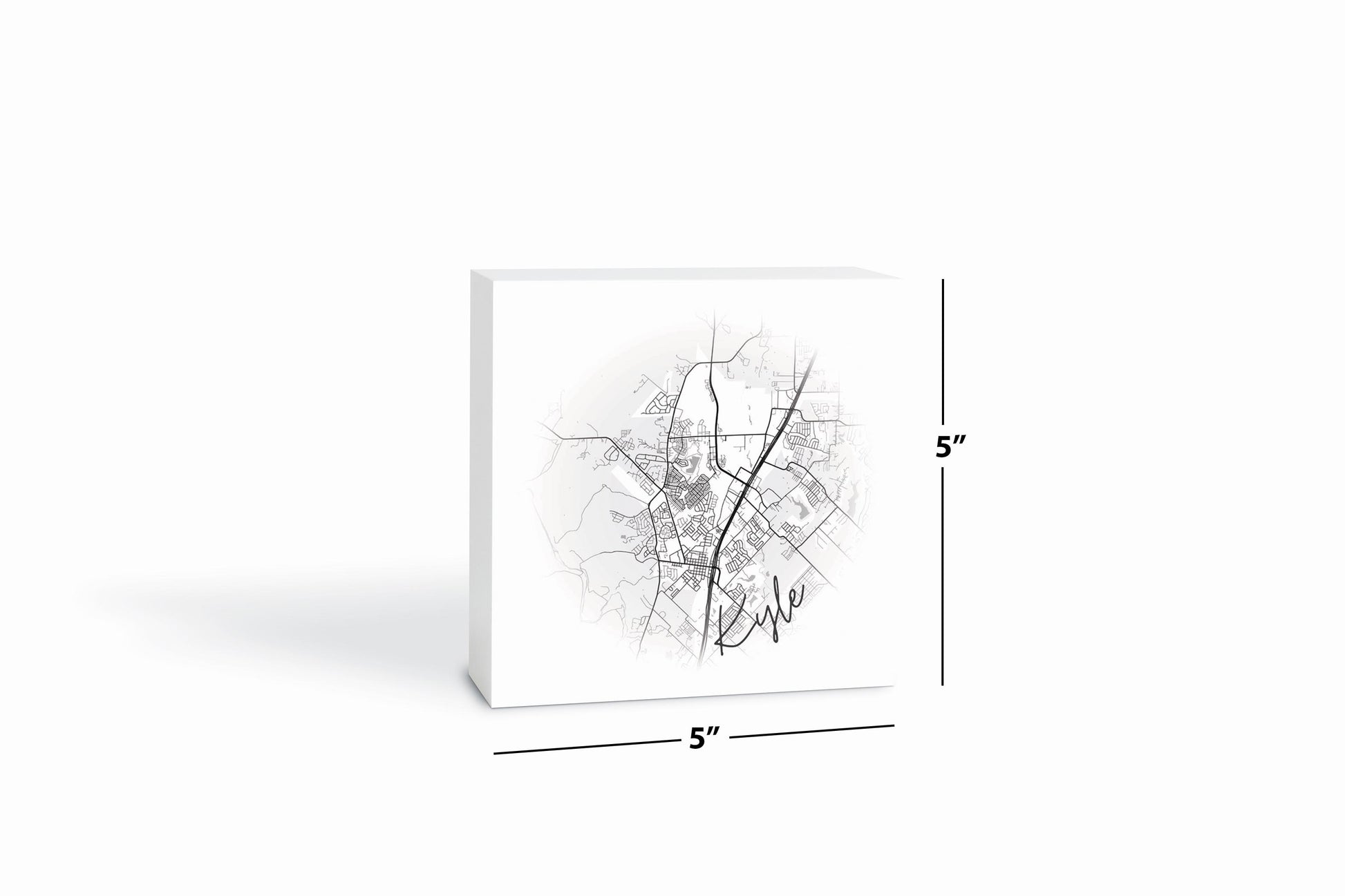 Minimalistic B&W Texas Kyle Circle Map| Wood Block | Eaches | Min 4