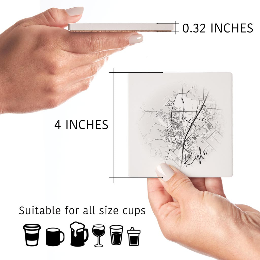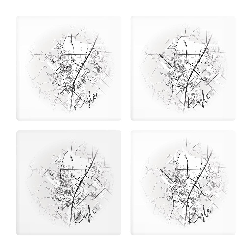 Minimalistic B&W Texas Kyle Circle Map | Absorbent Coasters | Set of 4 | Min 2