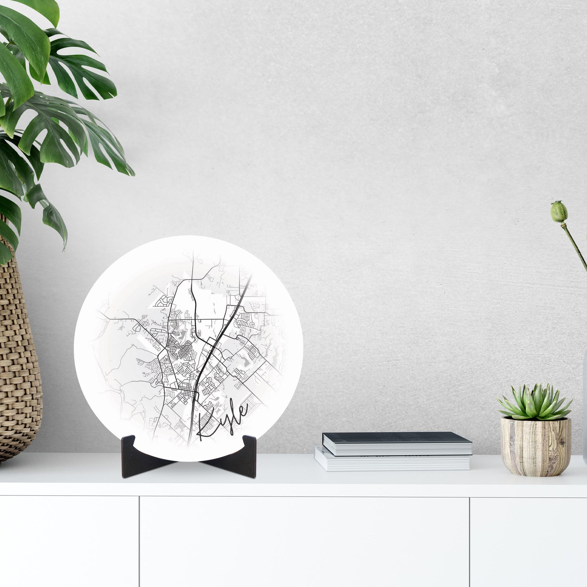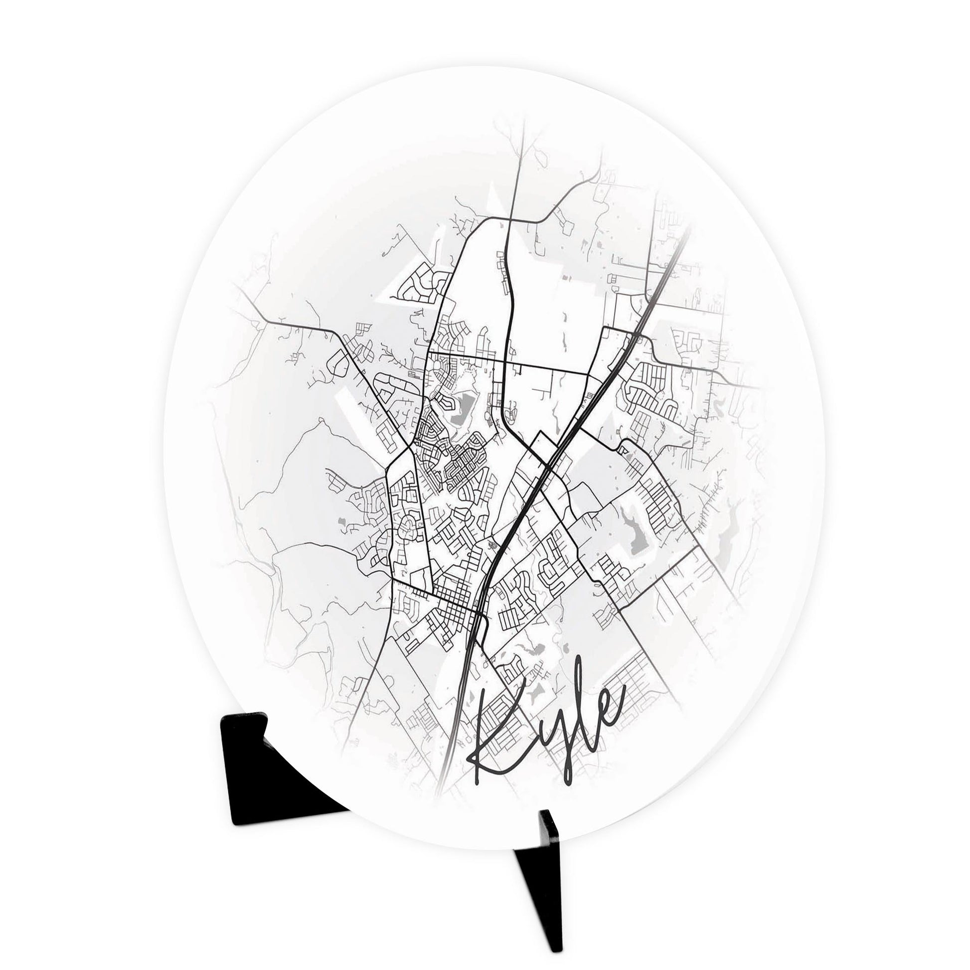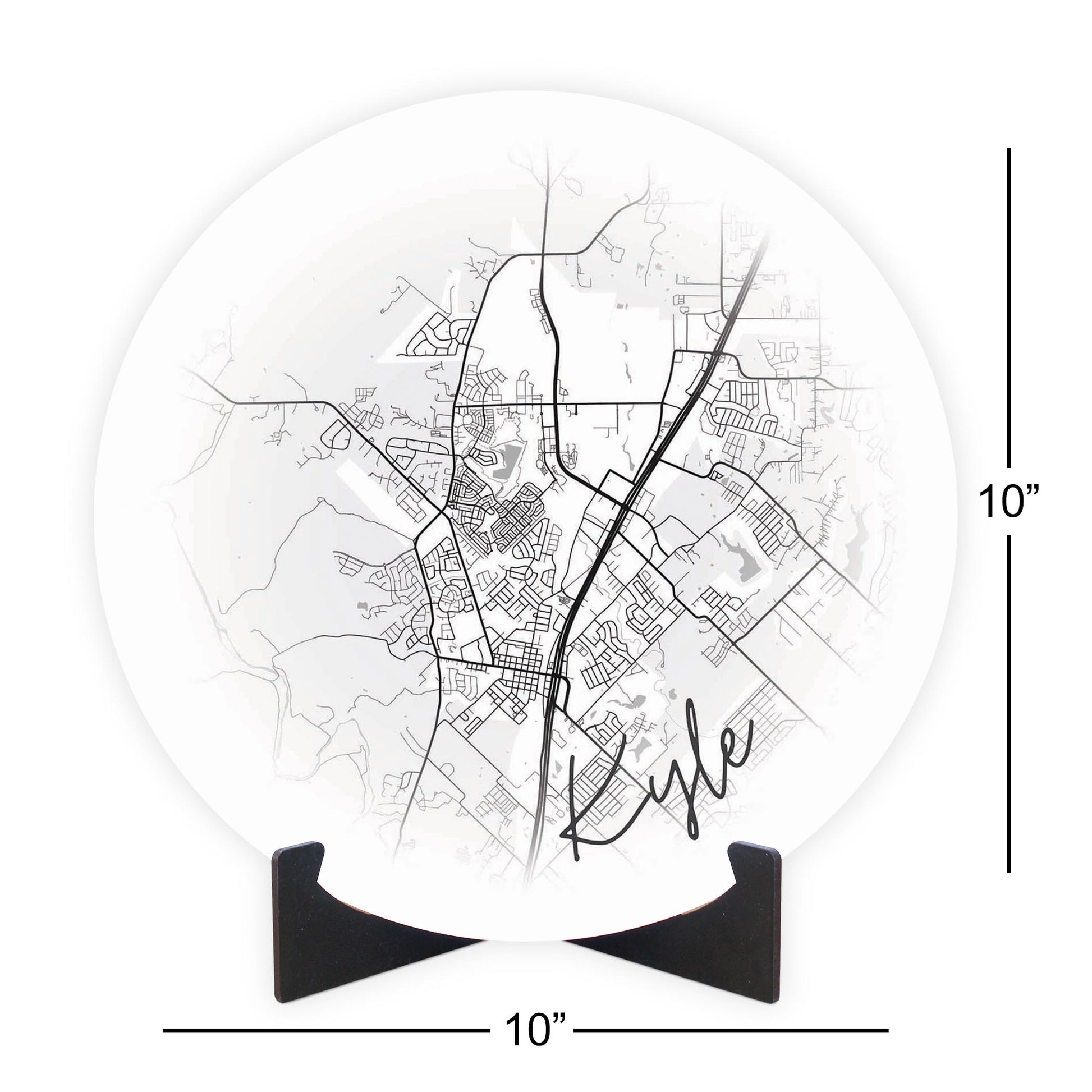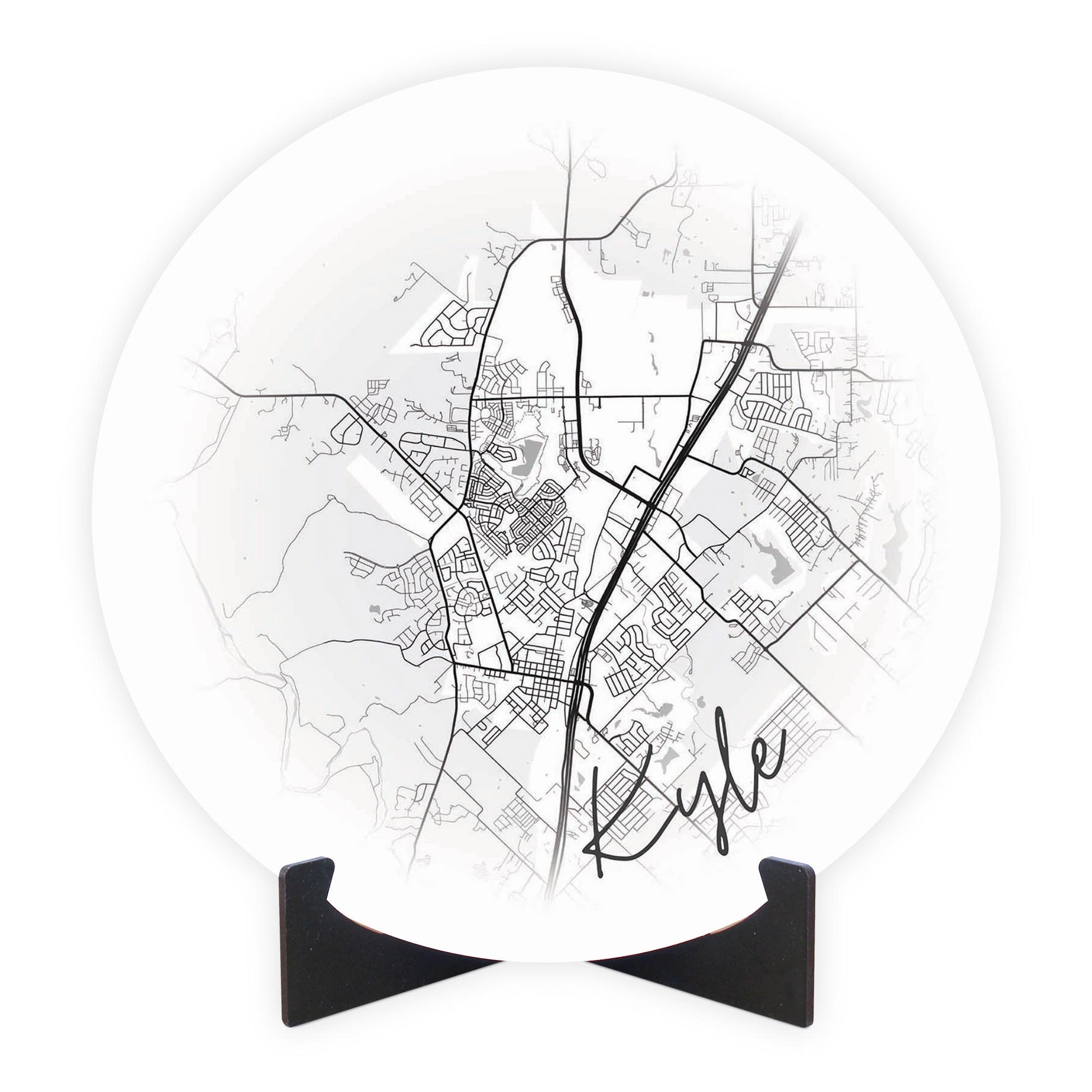 Minimalistic B&W Texas Kyle Circle Map | Wood Sign | Eaches | Min 1