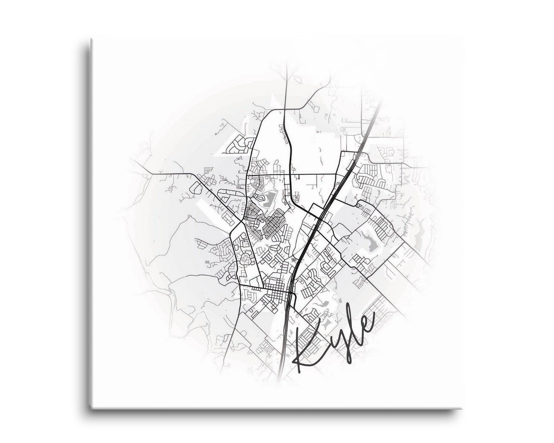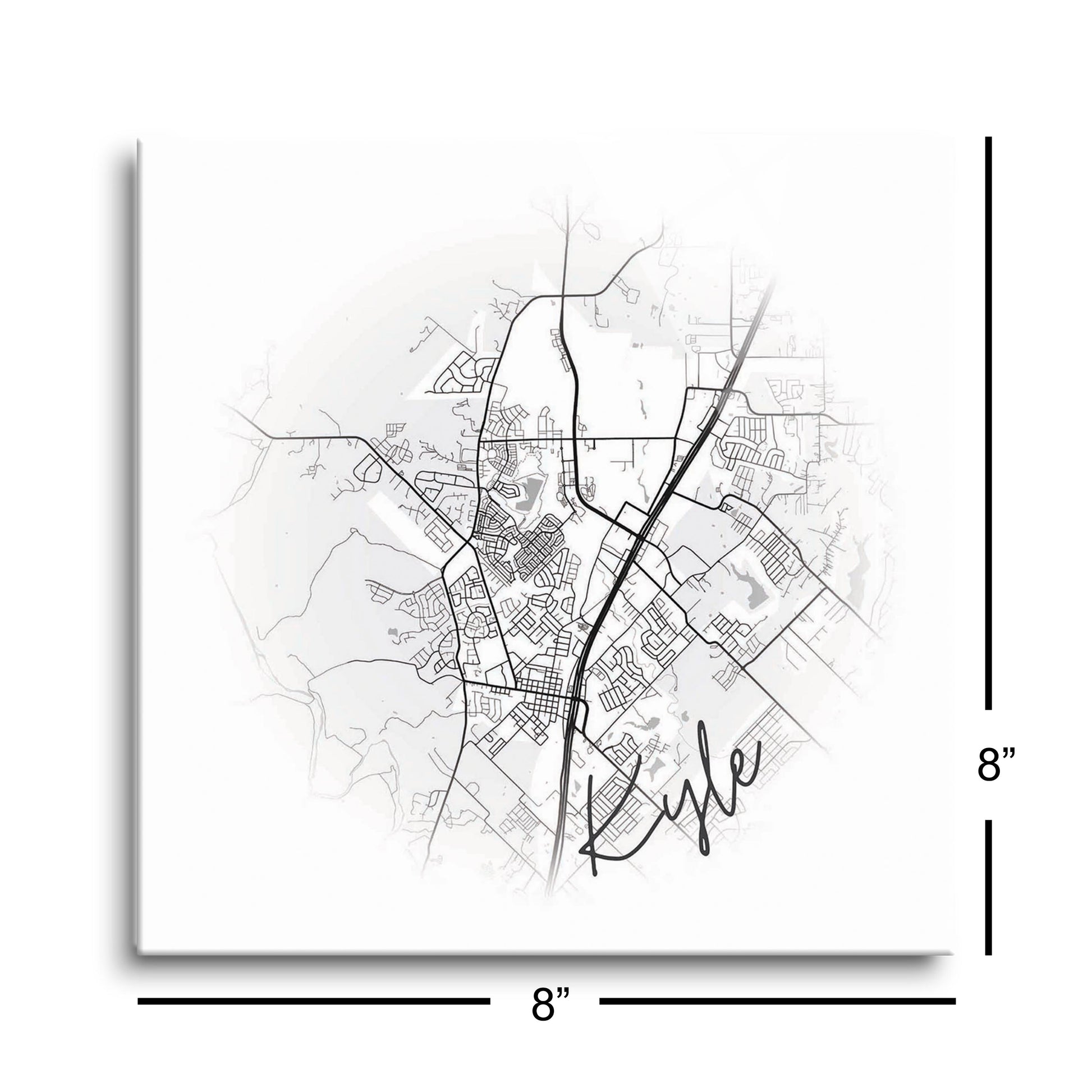 Minimalistic B&W Texas Kyle Circle Map | Hi-Def Glass Art | Eaches | Min 2