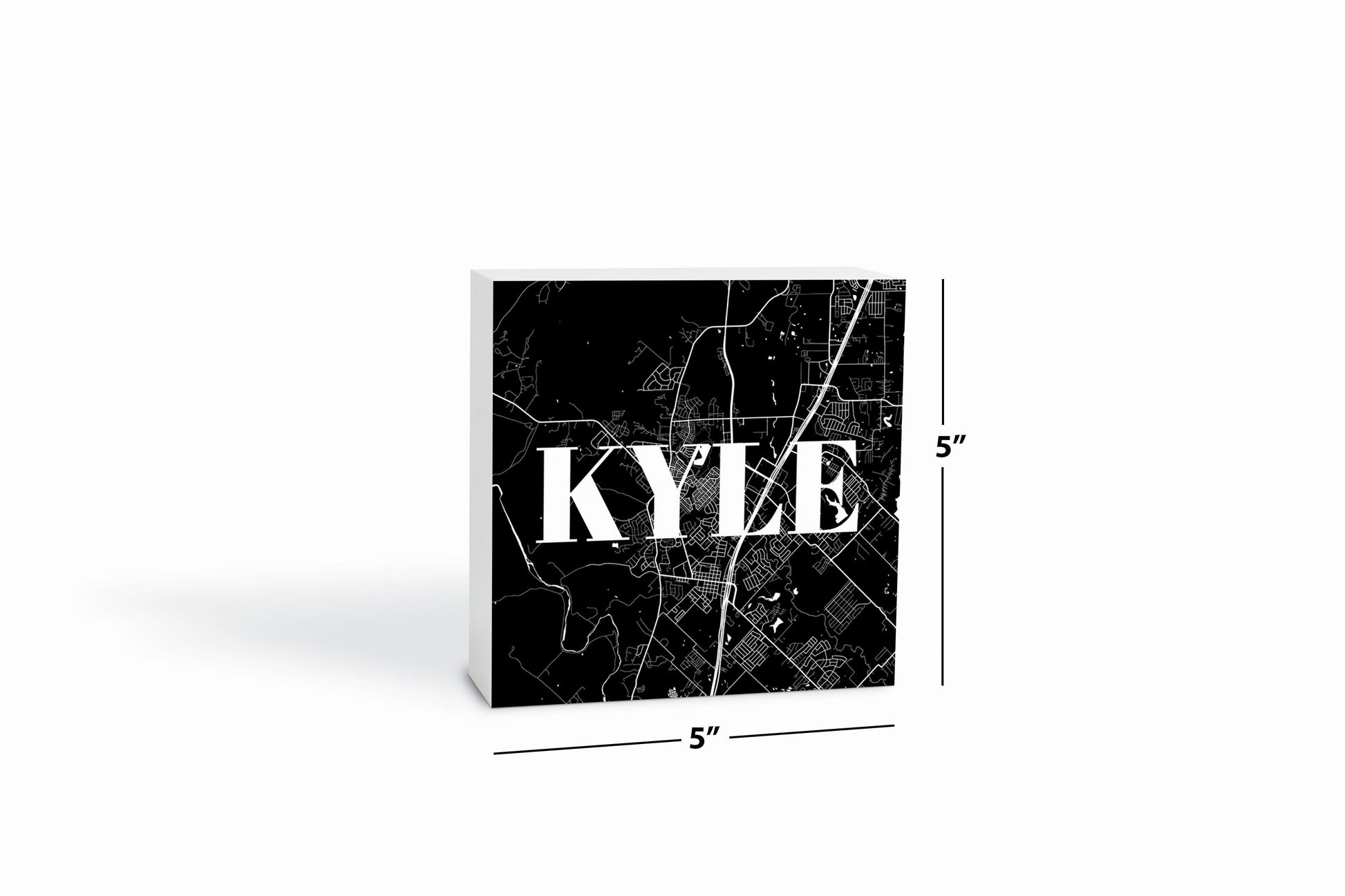 Minimalistic B&W Texas Kyle Map| Wood Block | Eaches | Min 4
