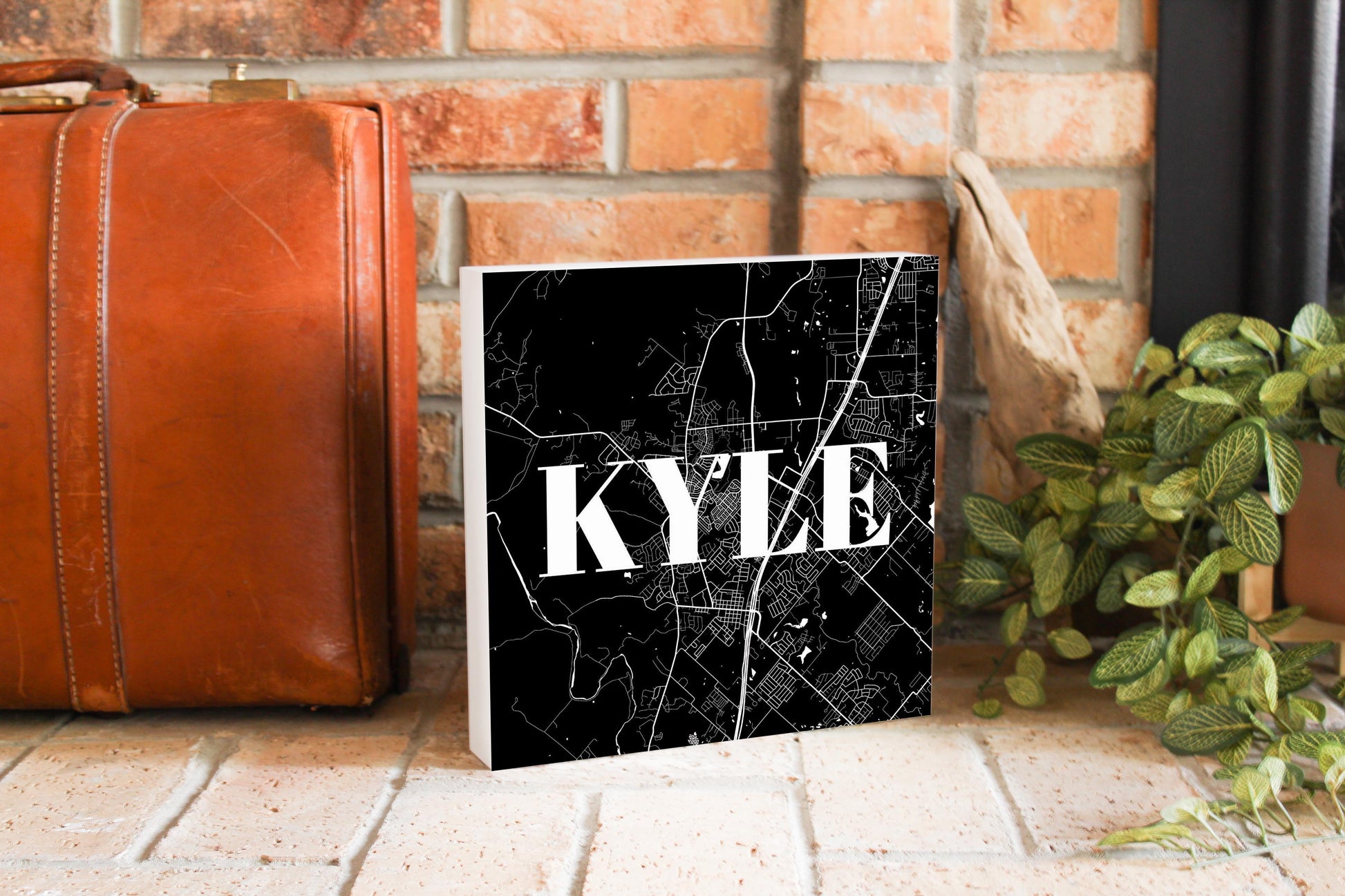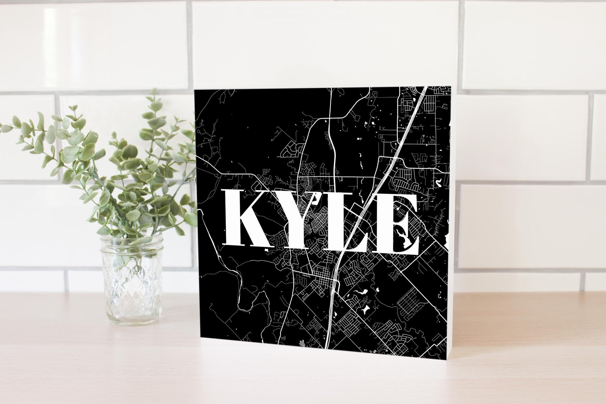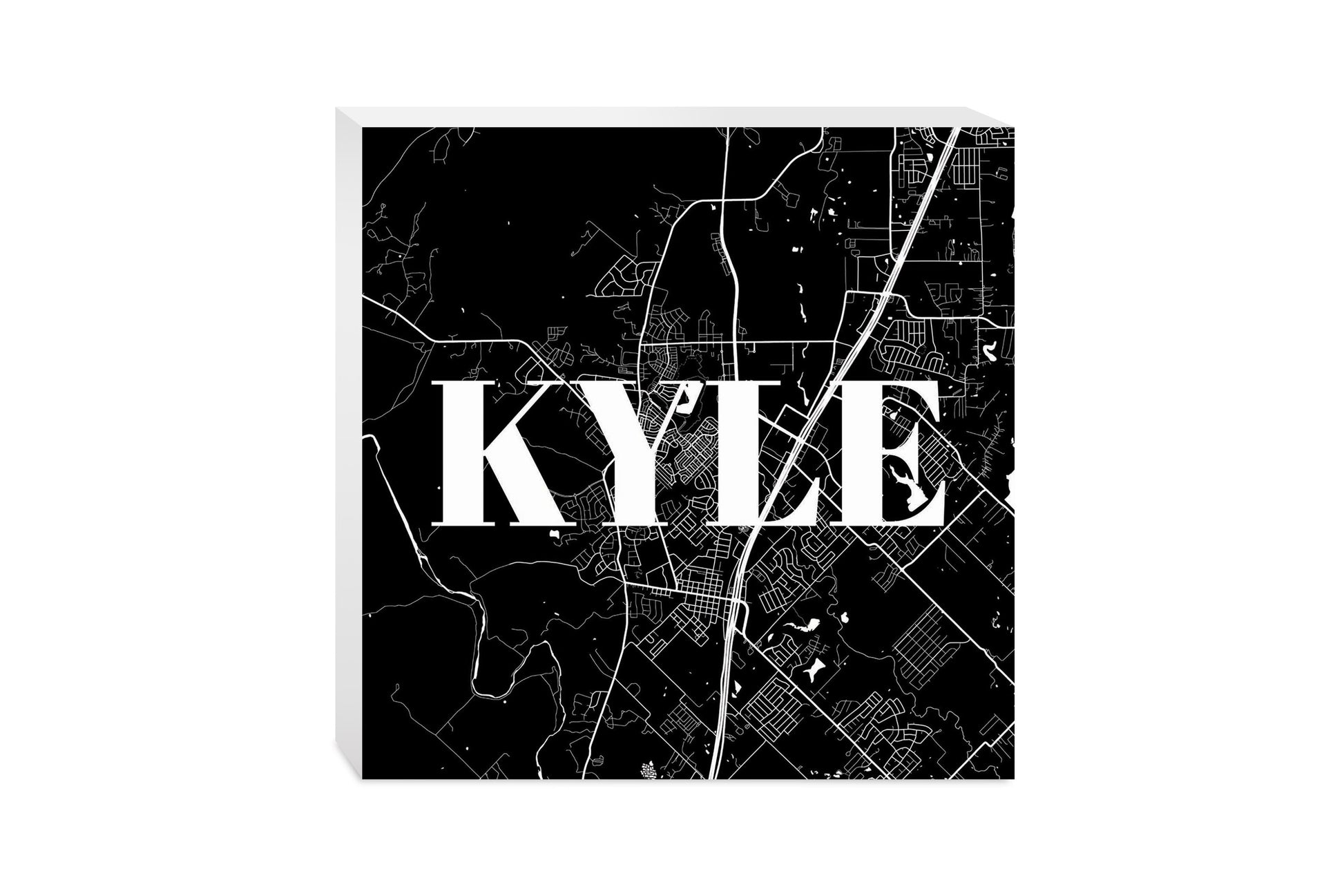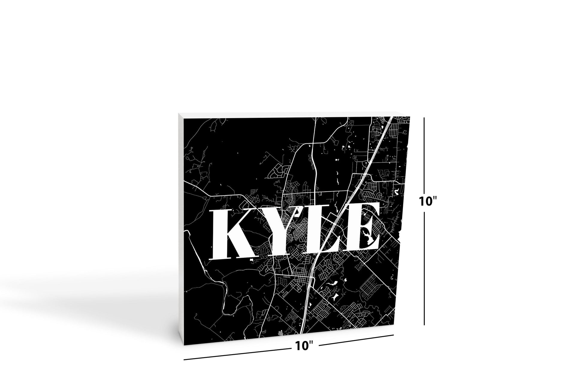 Minimalistic B&W Texas Kyle Map | Wood Block | Eaches | Min 2