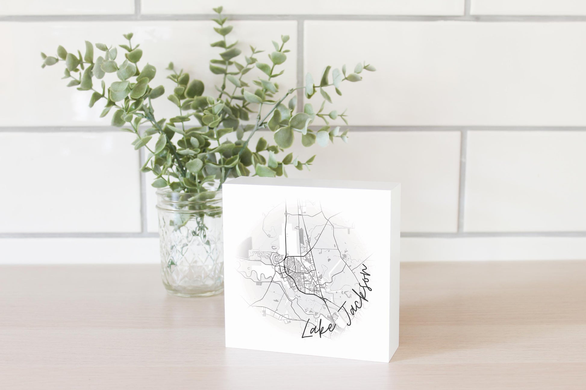 Minimalistic B&W Texas Lake Jackson Circle Map| Wood Block | Eaches | Min 4