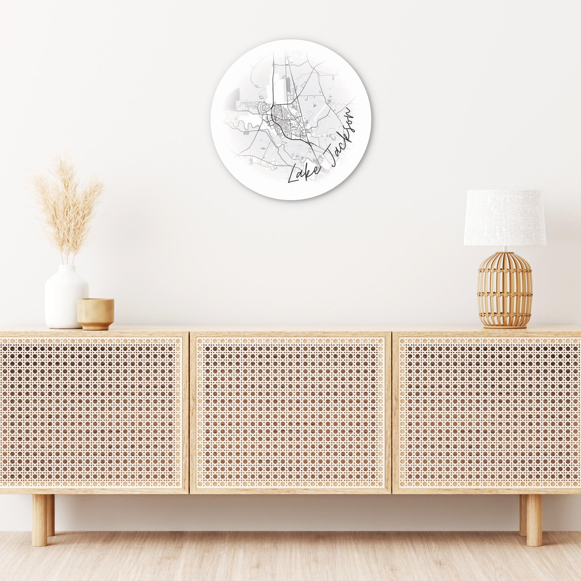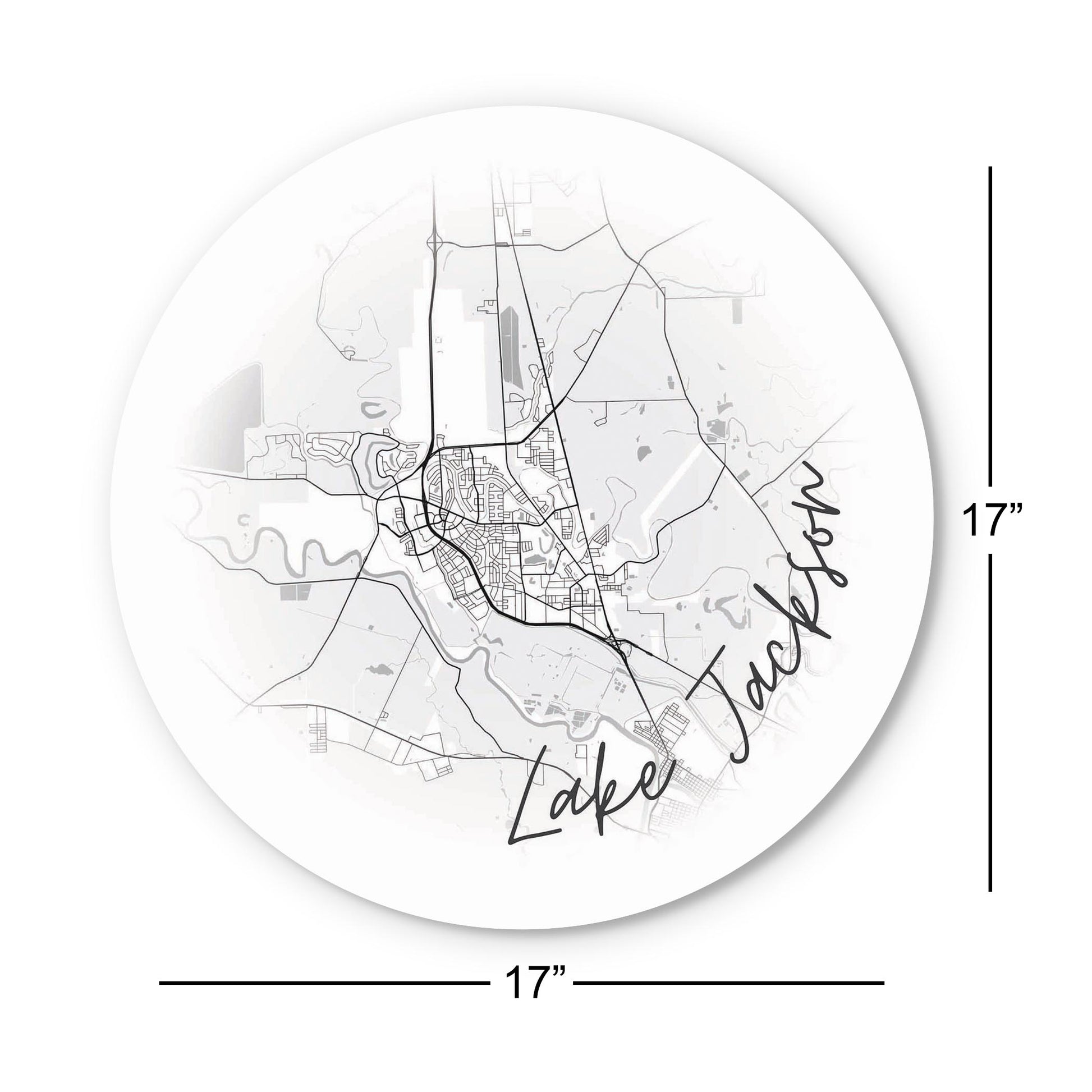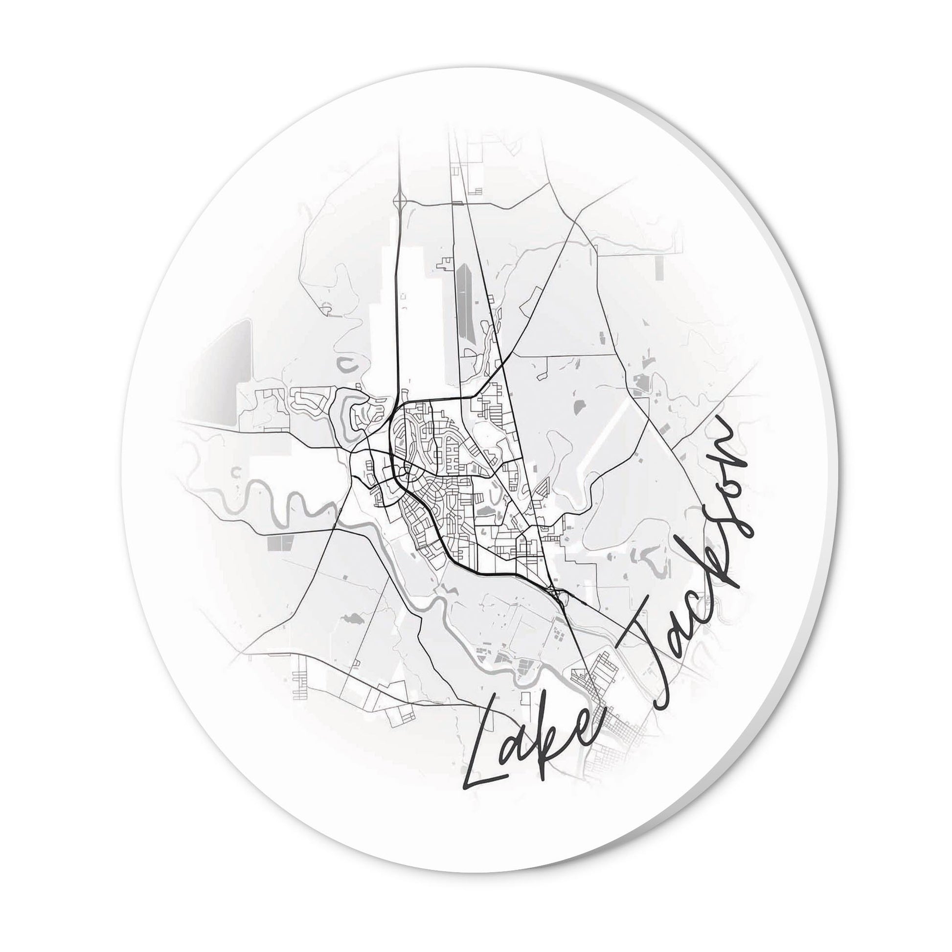 Minimalistic B&W Texas Lake Jackson Circle Map | Wood Sign | Eaches | Min 1