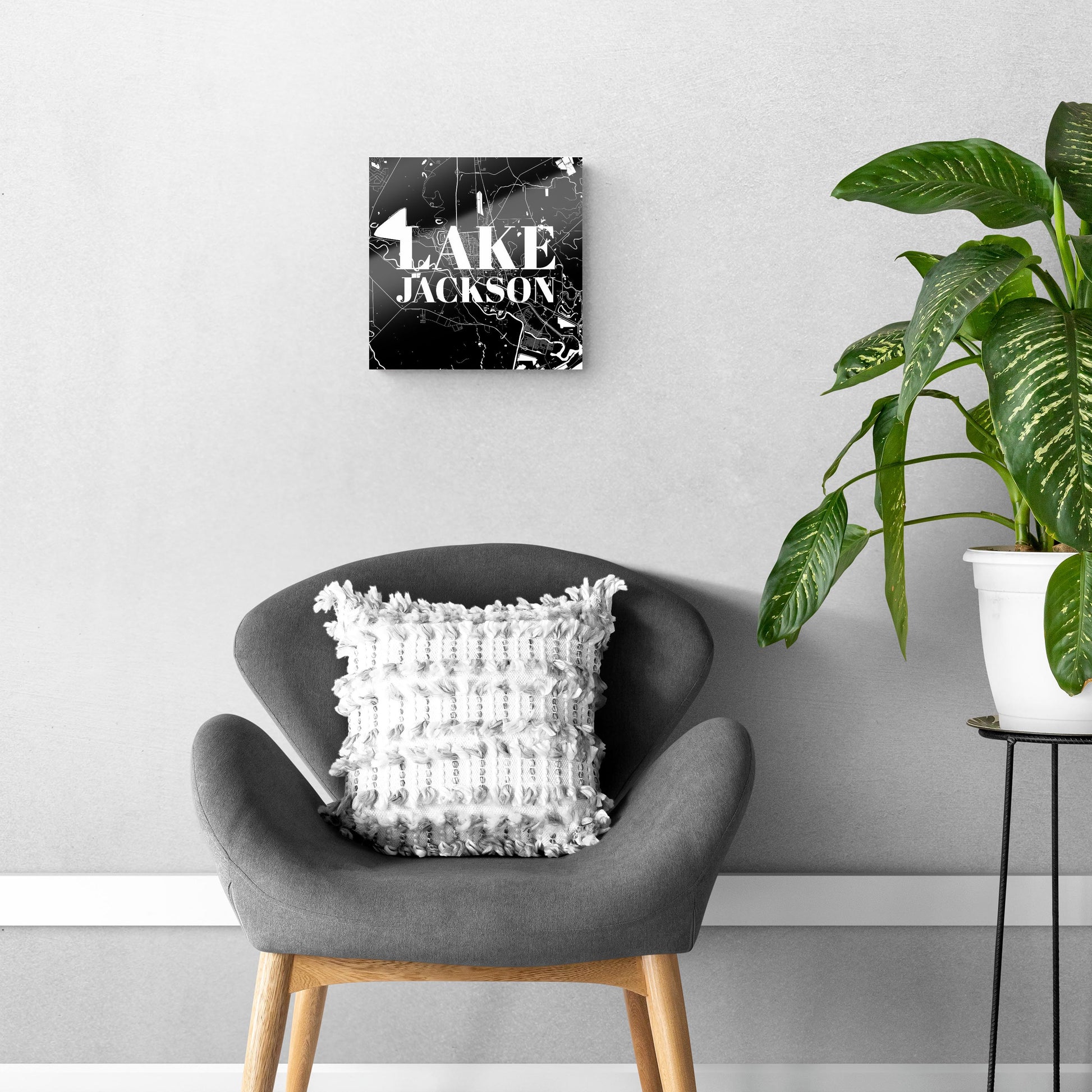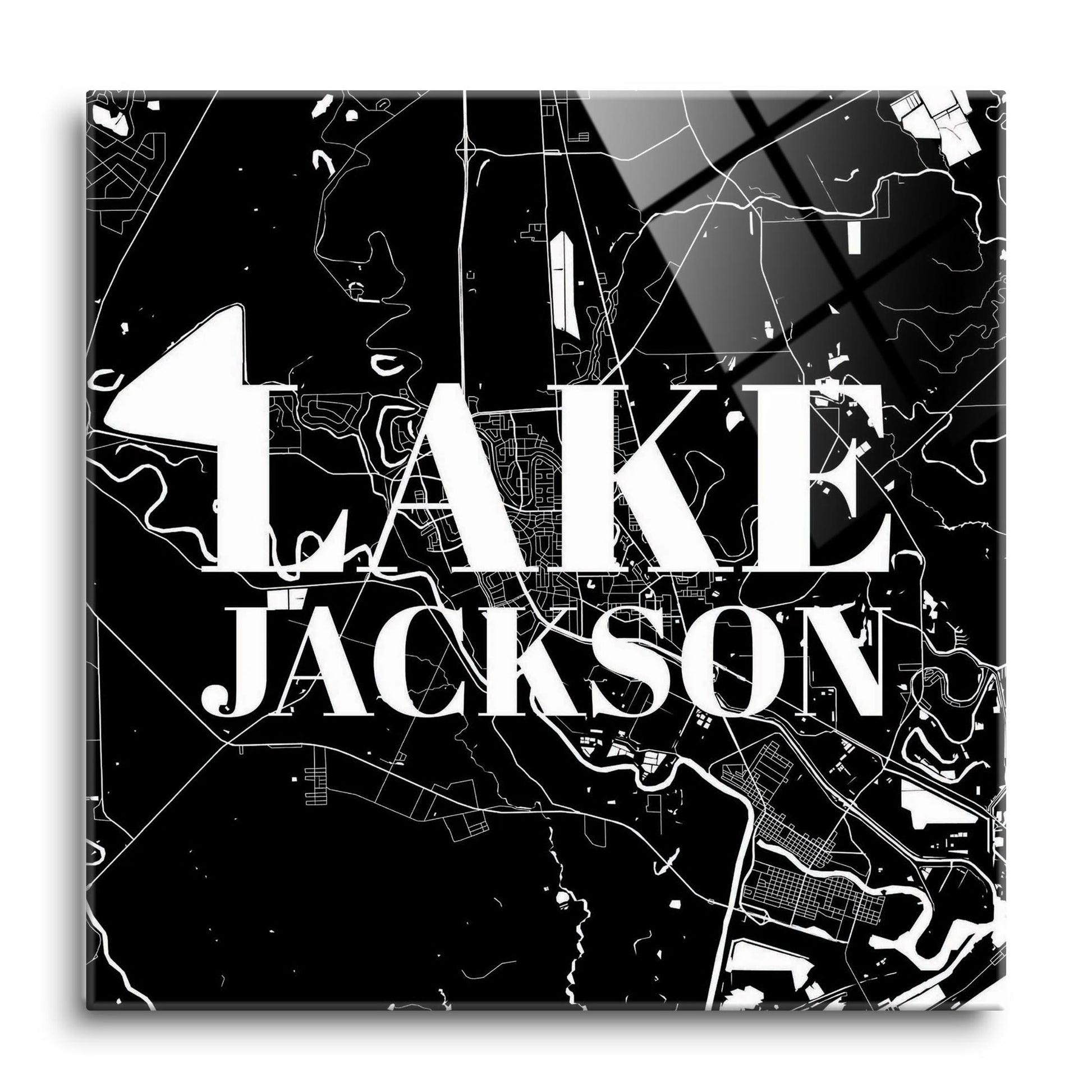 Minimalistic B&W Texas Lake Jackson Map | Hi-Def Glass Art | Eaches | Min 1