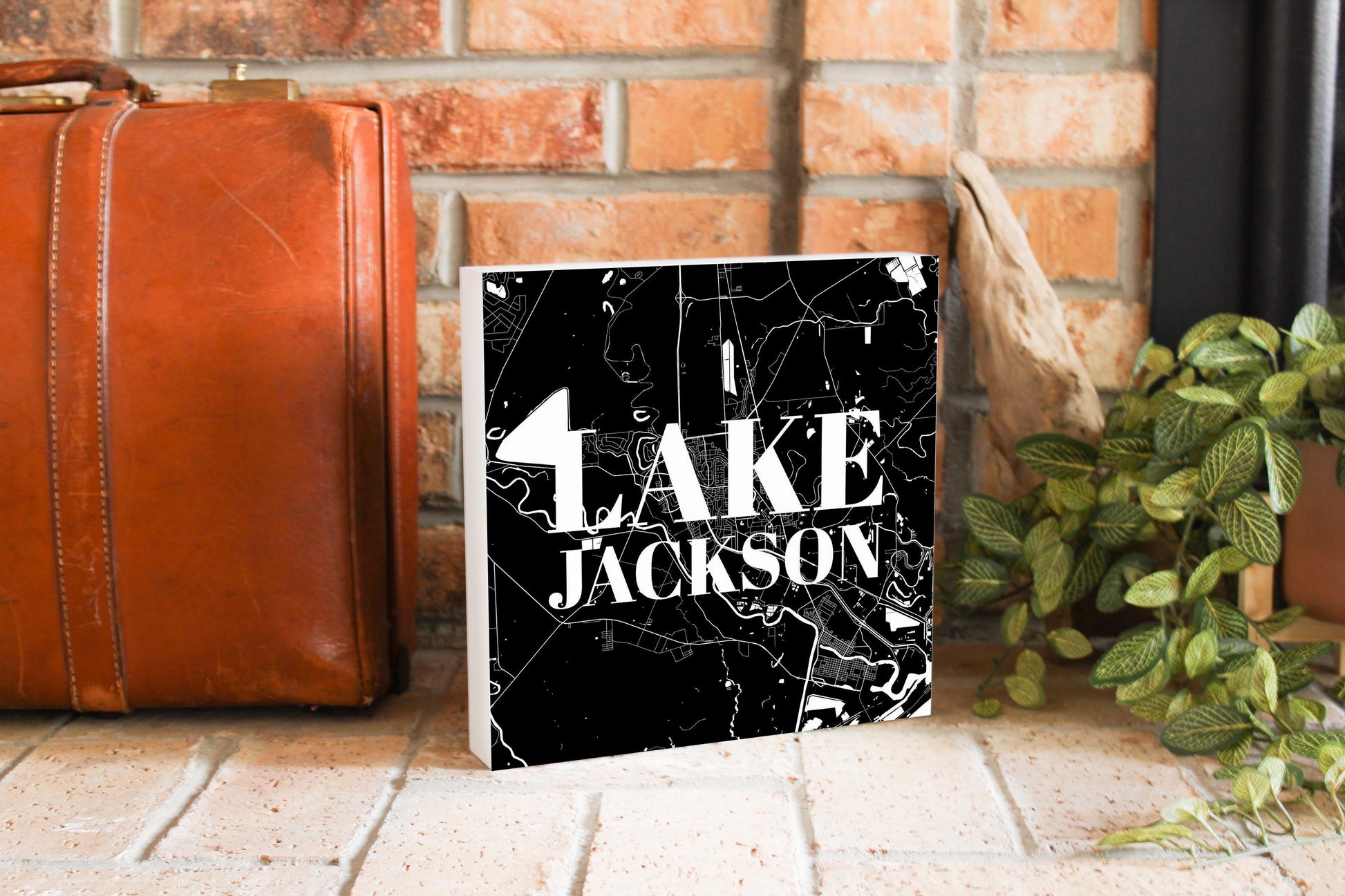 Minimalistic B&W Texas Lake Jackson Map | Wood Block | Eaches | Min 2