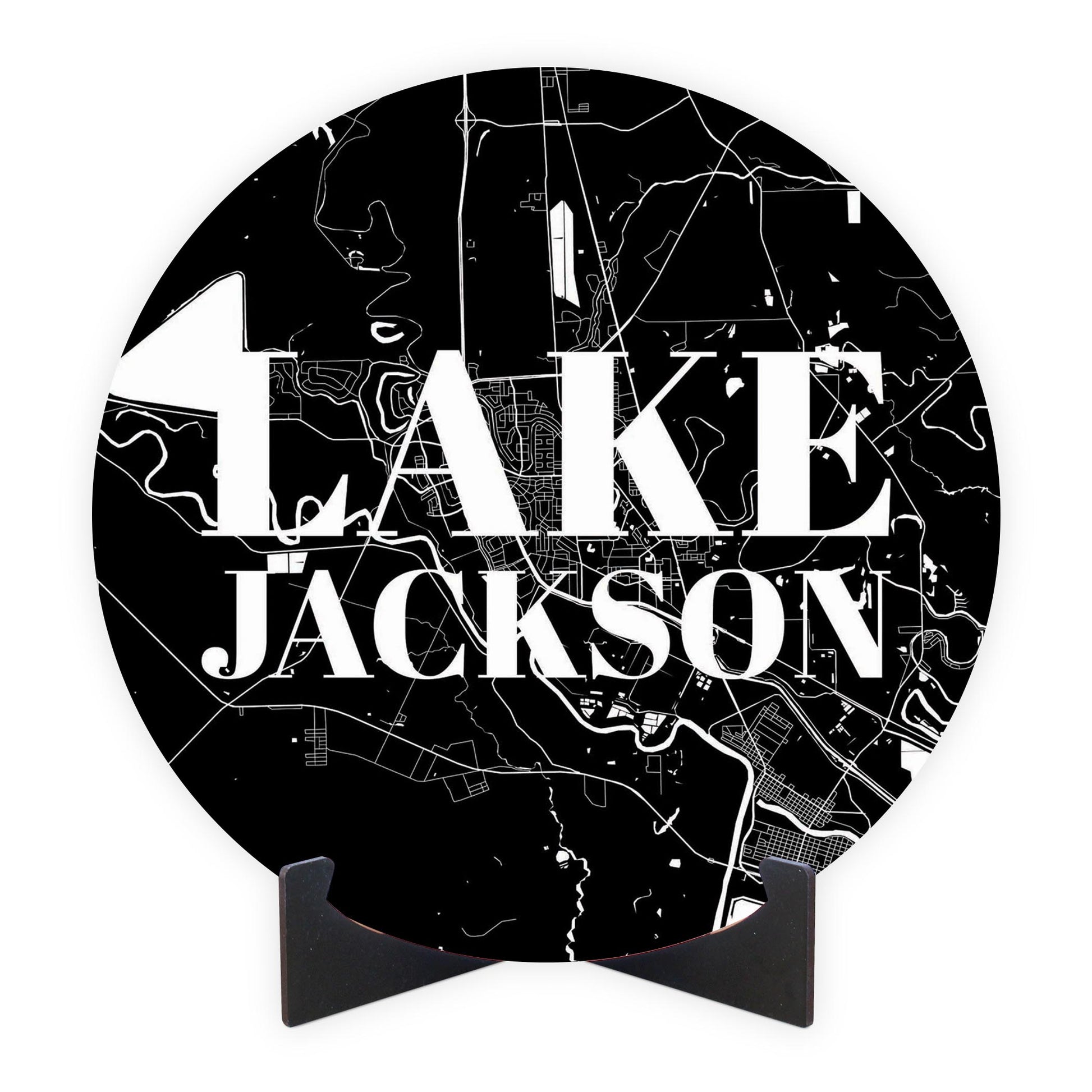 Minimalistic B&W Texas Lake Jackson Map | Wood Sign | Eaches | Min 1