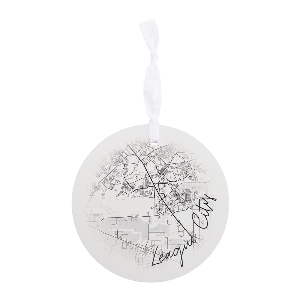 Minimalistic B&W Texas League City Circle Map| Wood Ornament | Eaches | Min 6