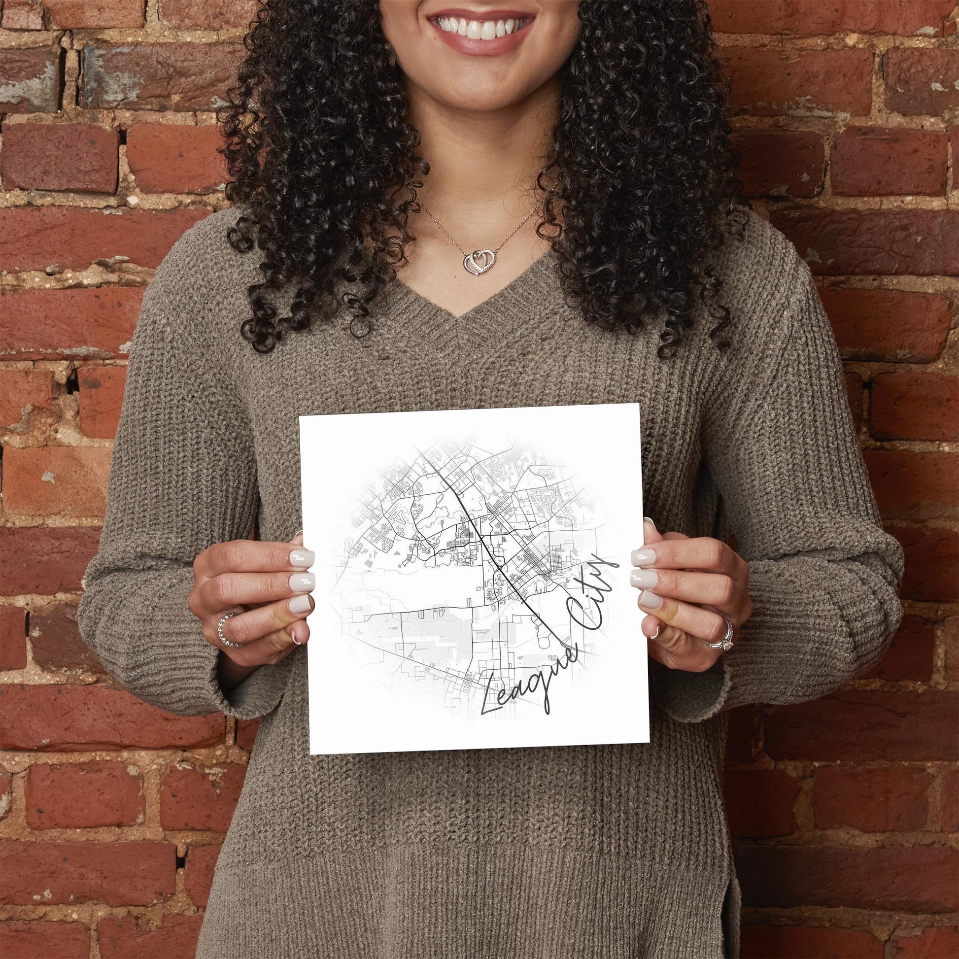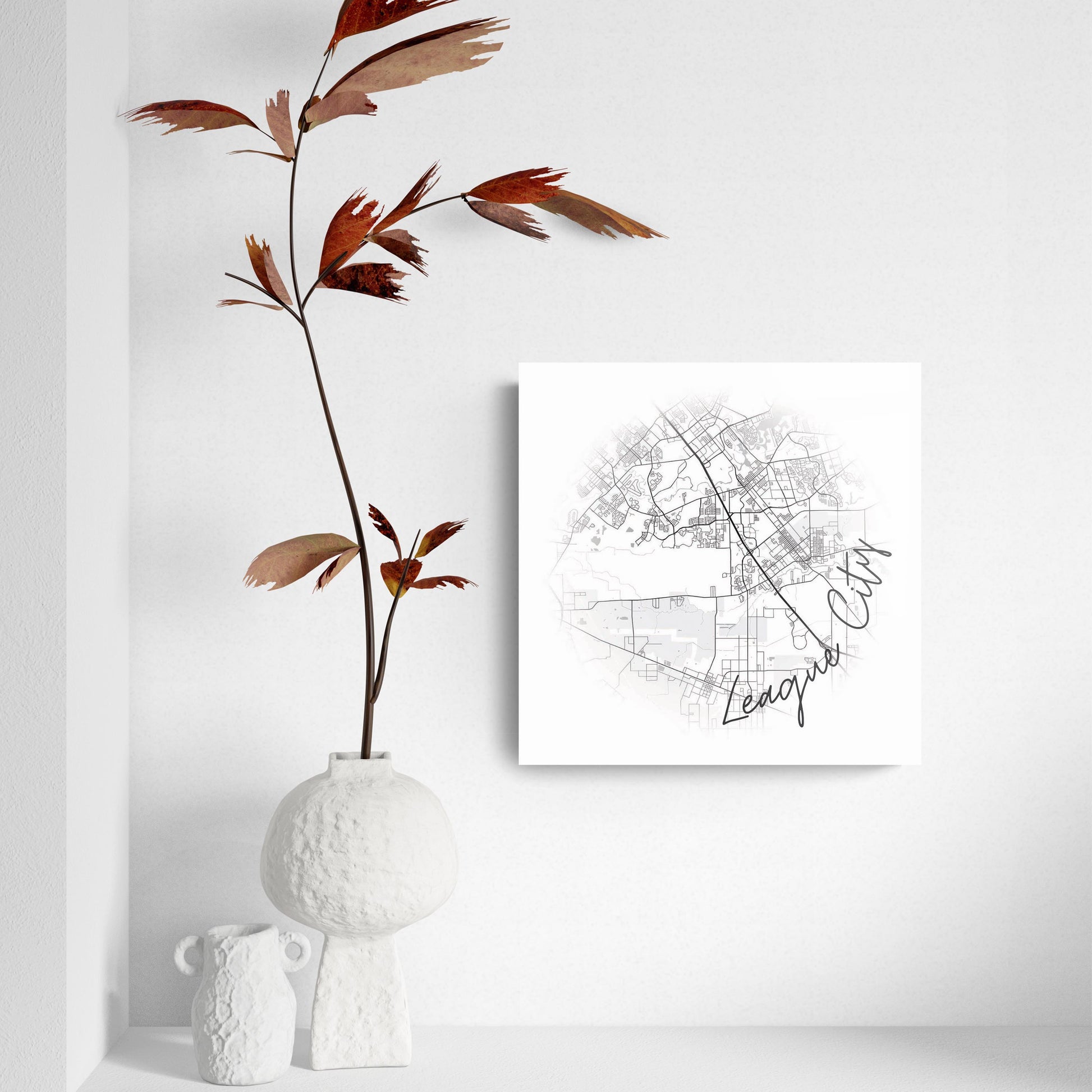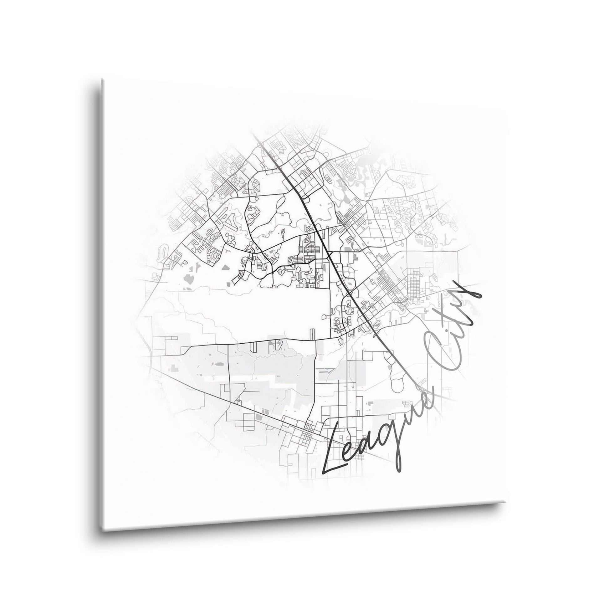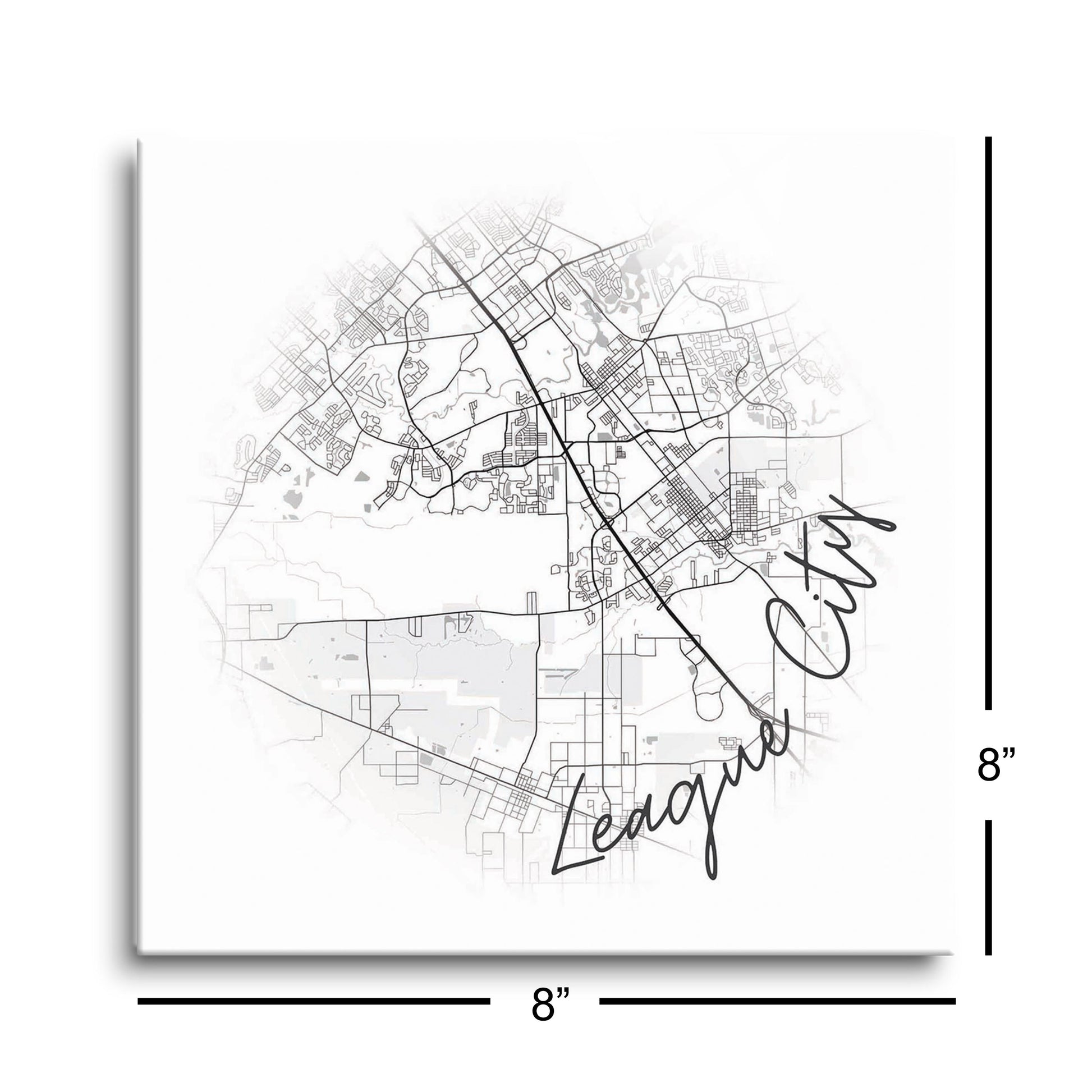 Minimalistic B&W Texas League City Circle Map | Hi-Def Glass Art | Eaches | Min 2