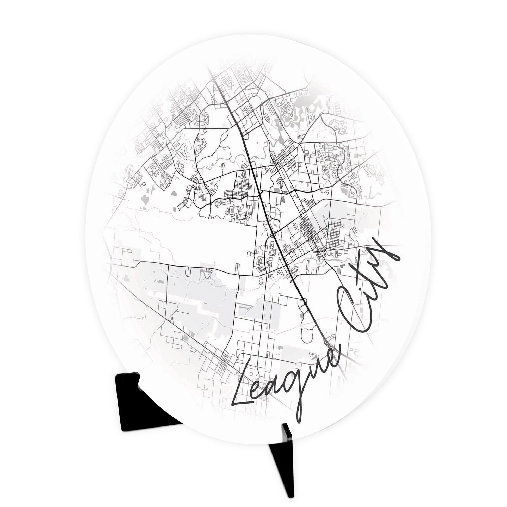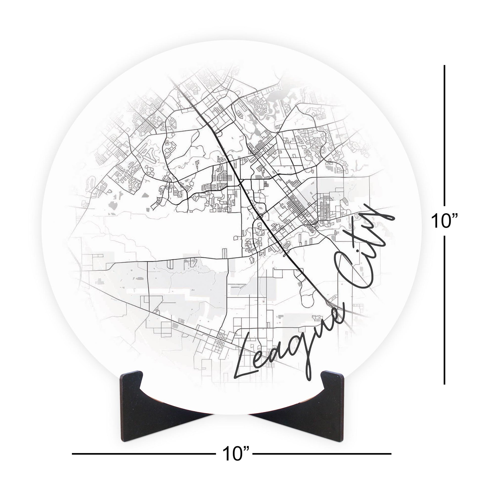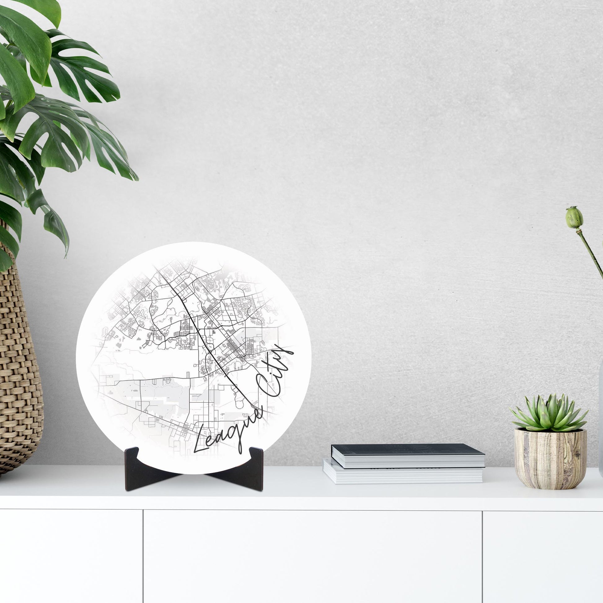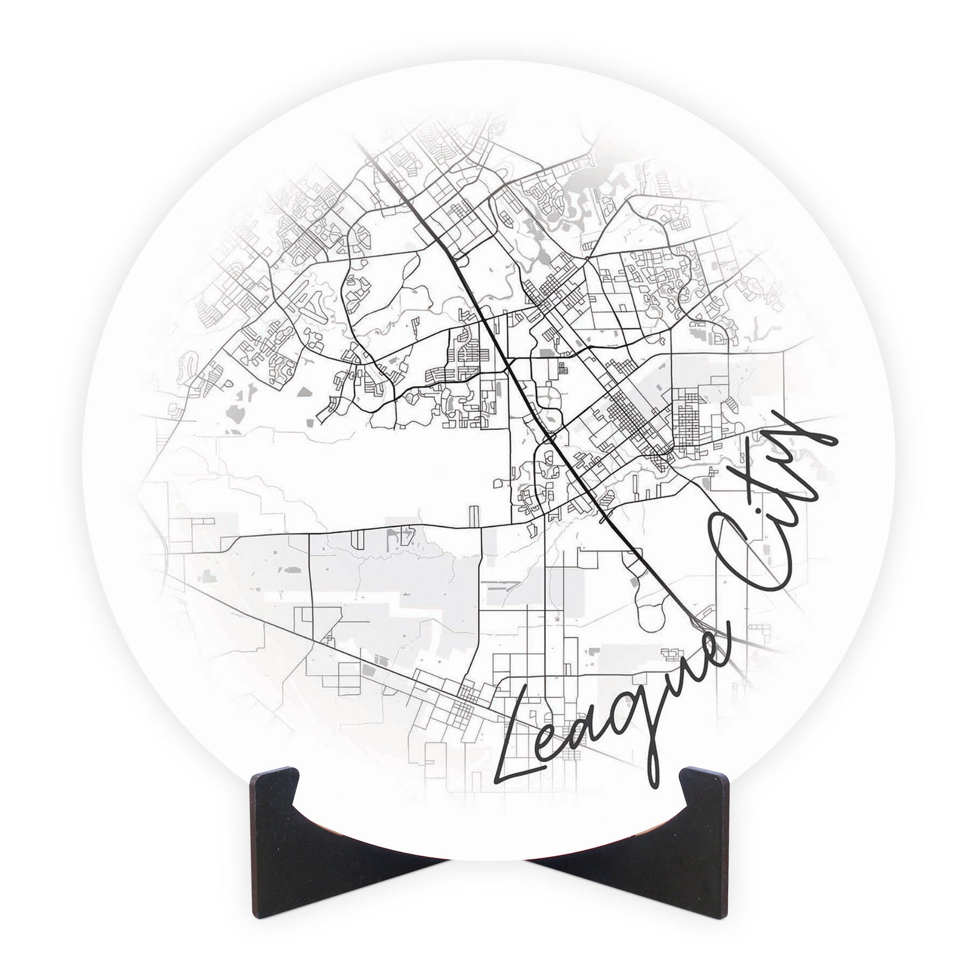 Minimalistic B&W Texas League City Circle Map | Wood Sign | Eaches | Min 1