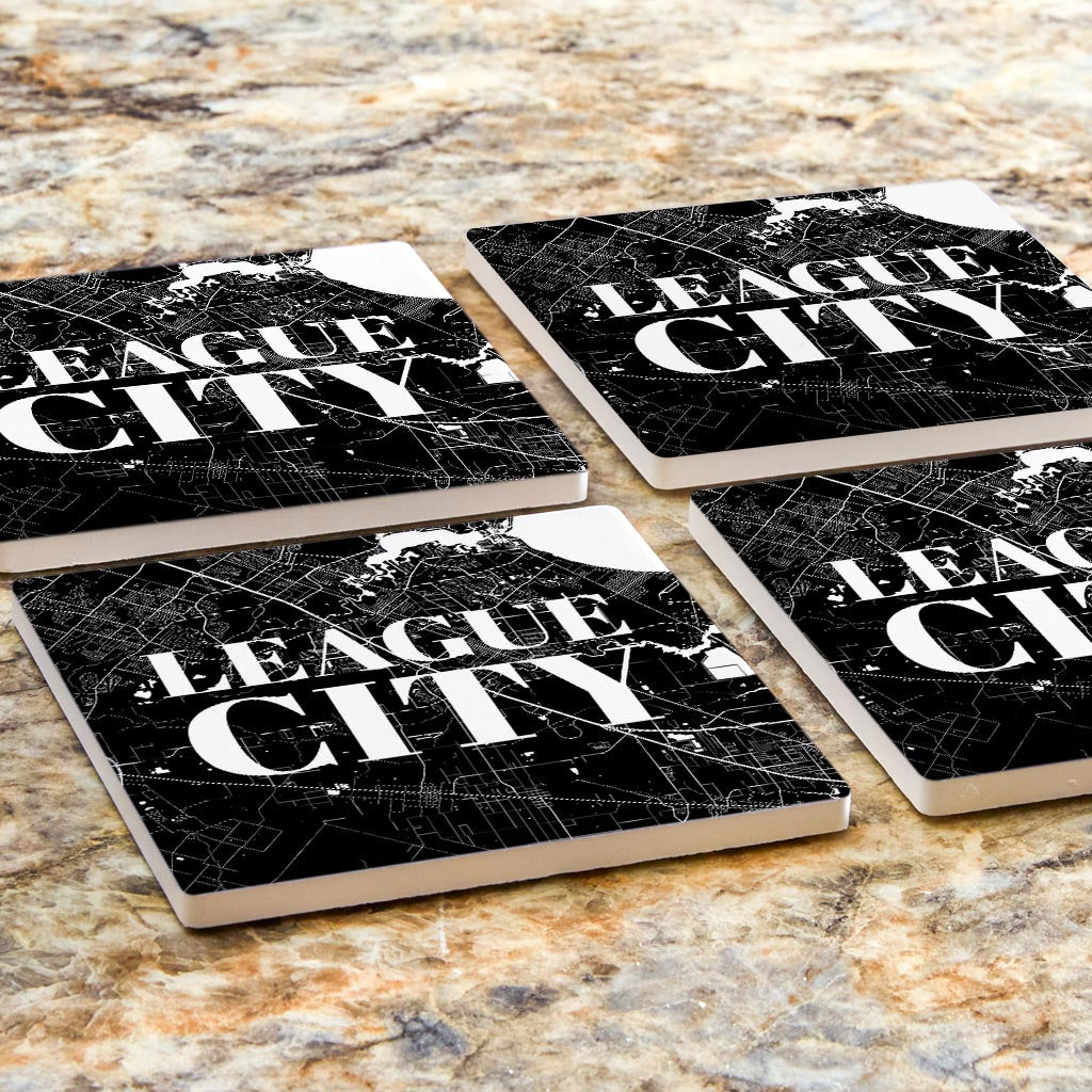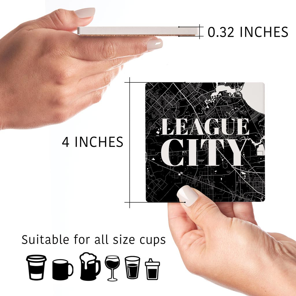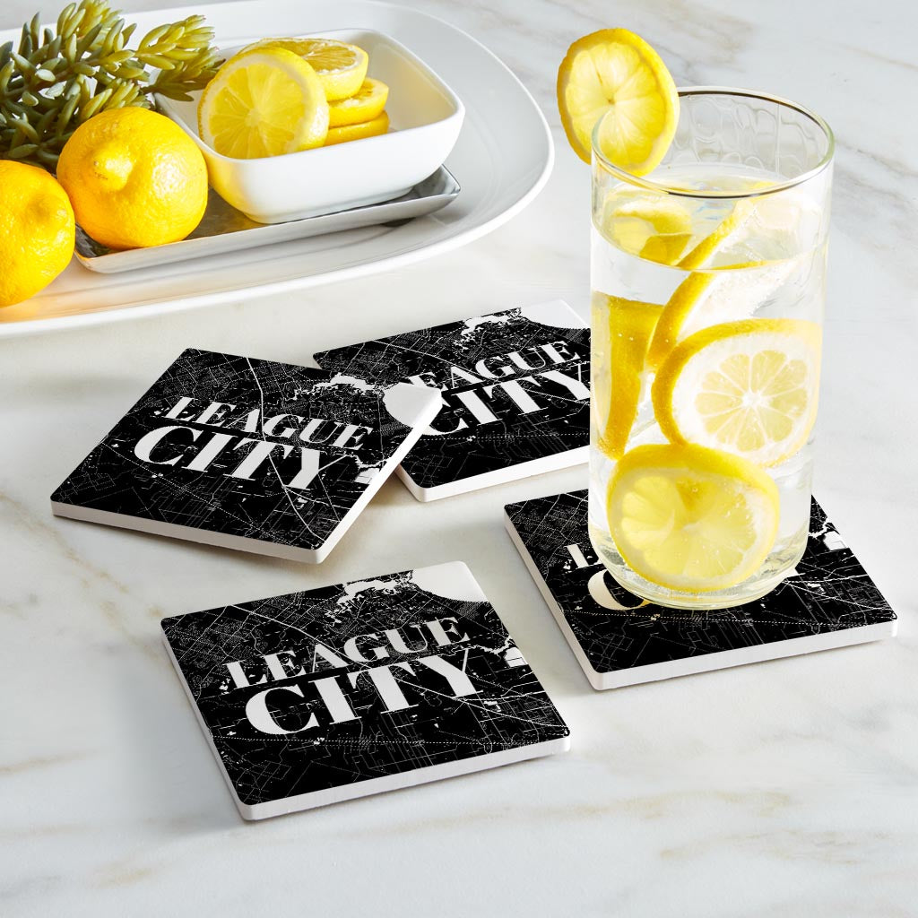 Minimalistic B&W Texas League City Map | Absorbent Coasters | Set of 4 | Min 2