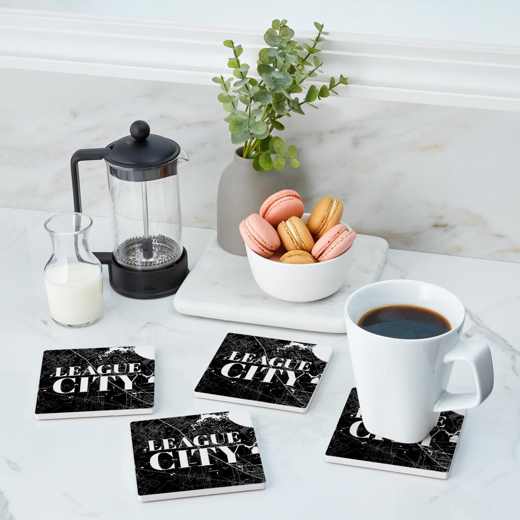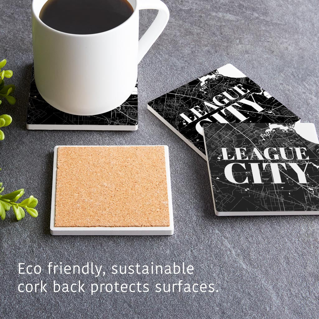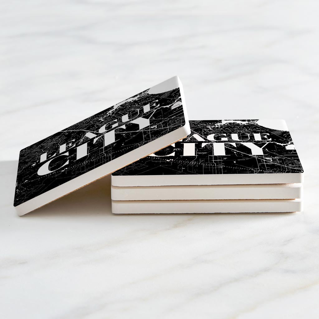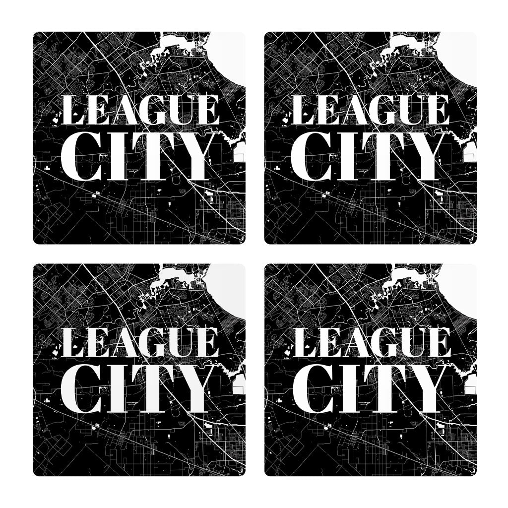 Minimalistic B&W Texas League City Map | Absorbent Coasters | Set of 4 | Min 2