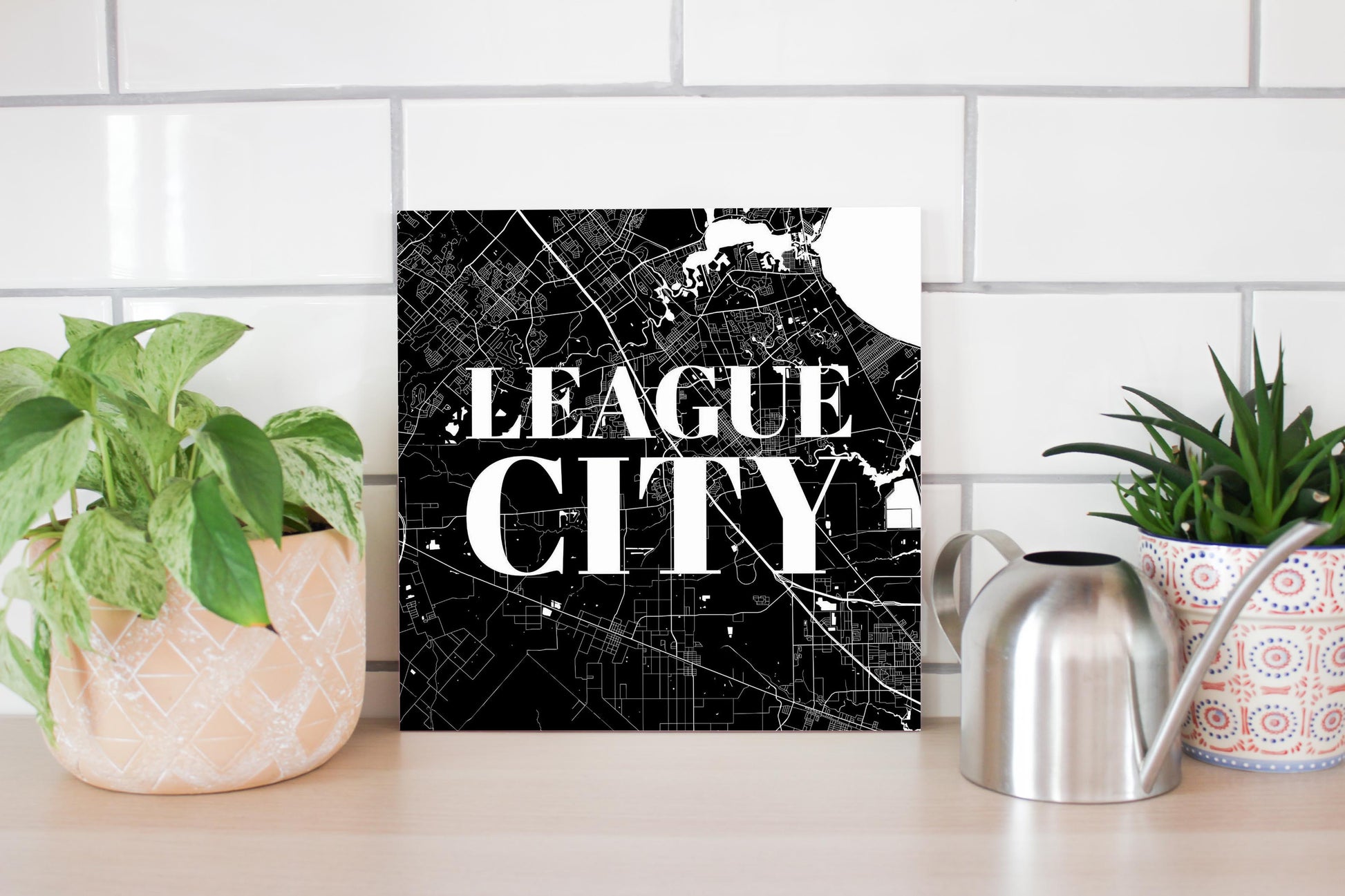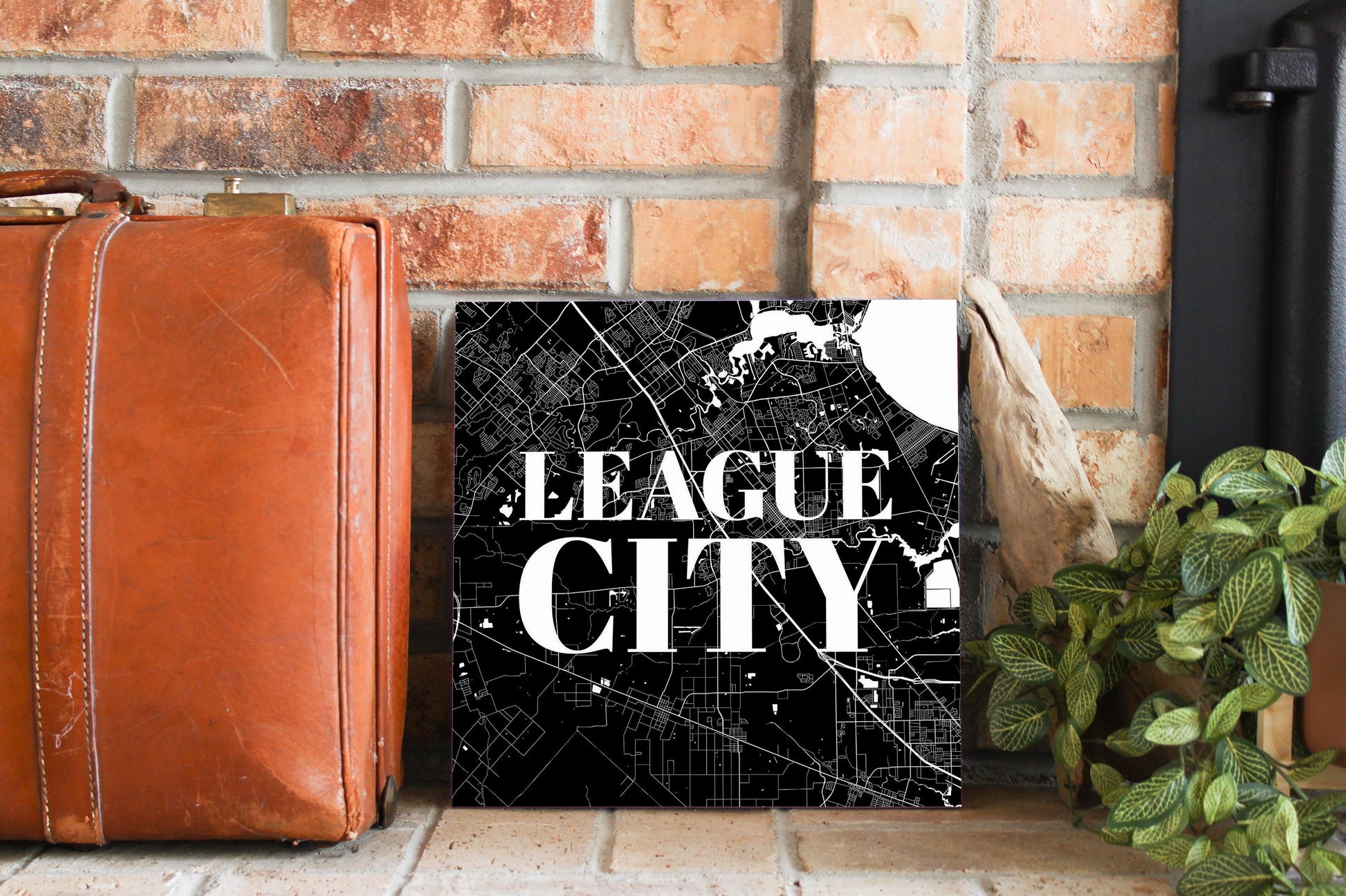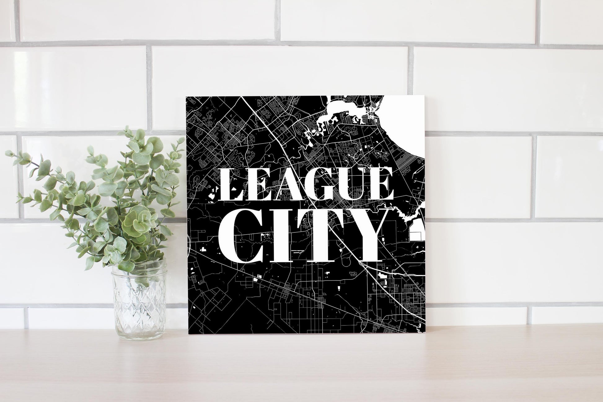 Minimalistic B&W Texas League City Map | Wood Sign | Eaches | Min 2